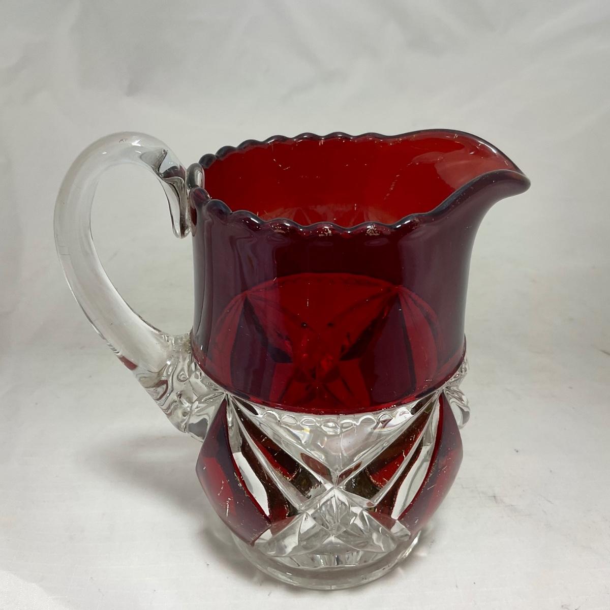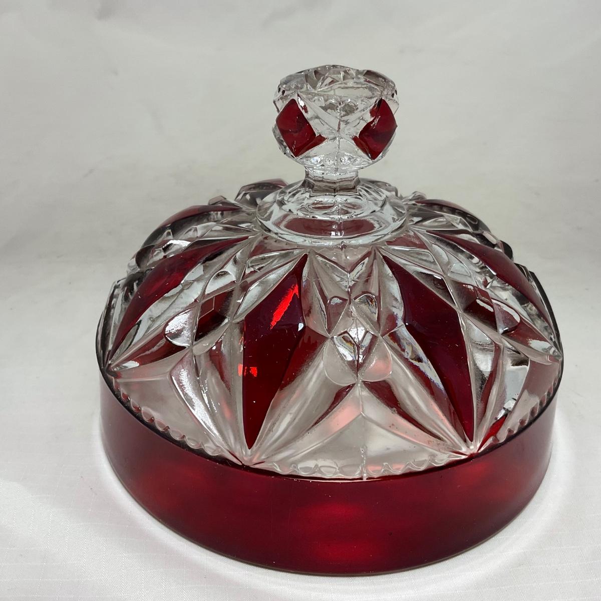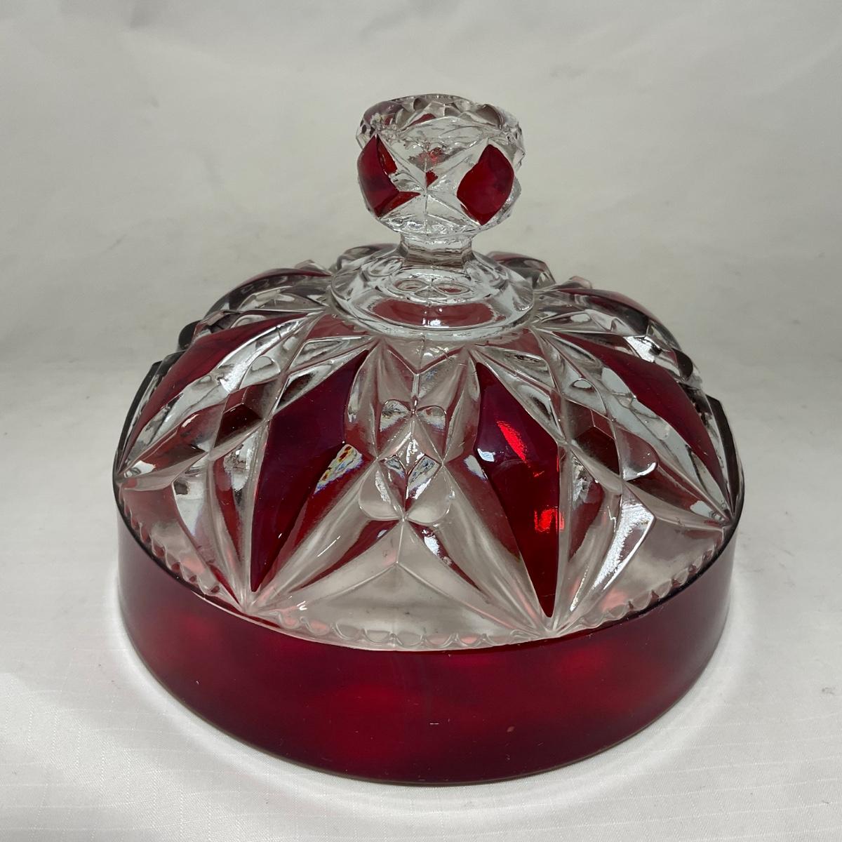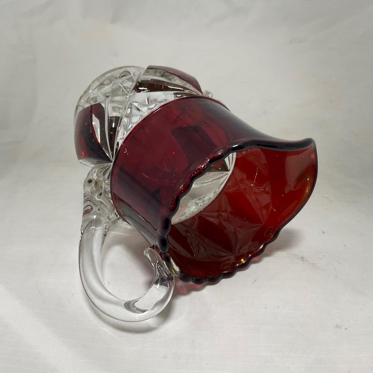 -97- Heavy Ruby Red & Clear Glass | Creamer & Sugar, Butter Dish Lid