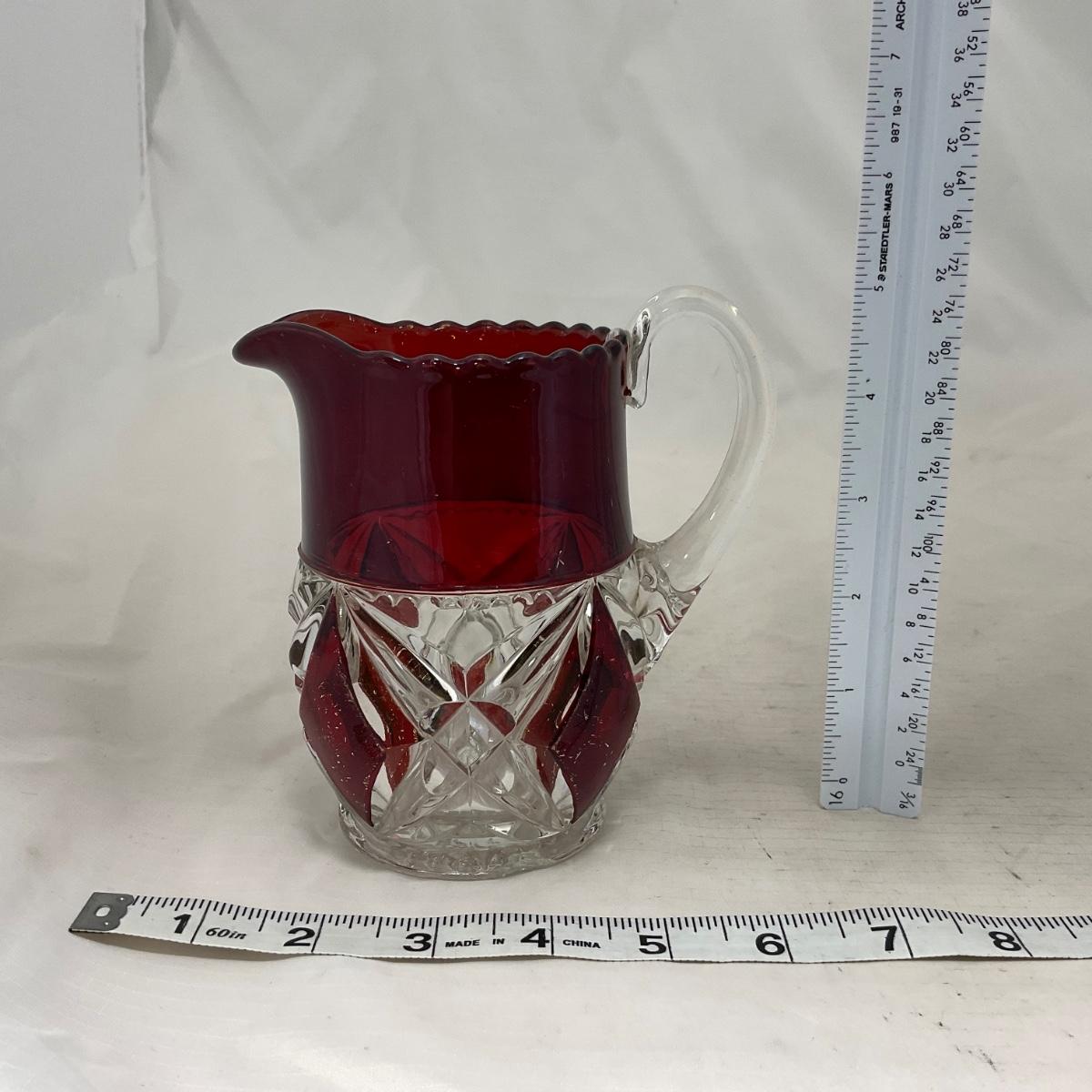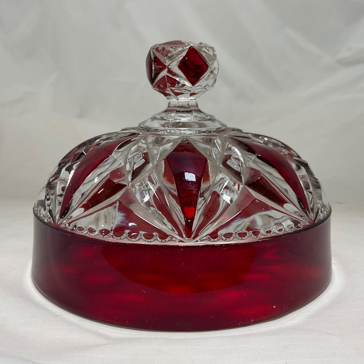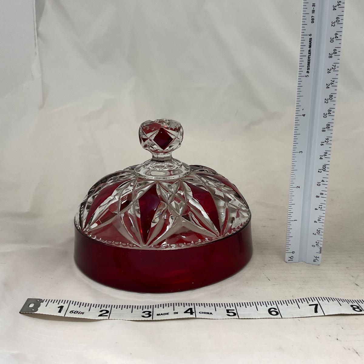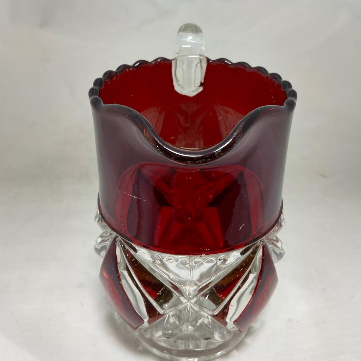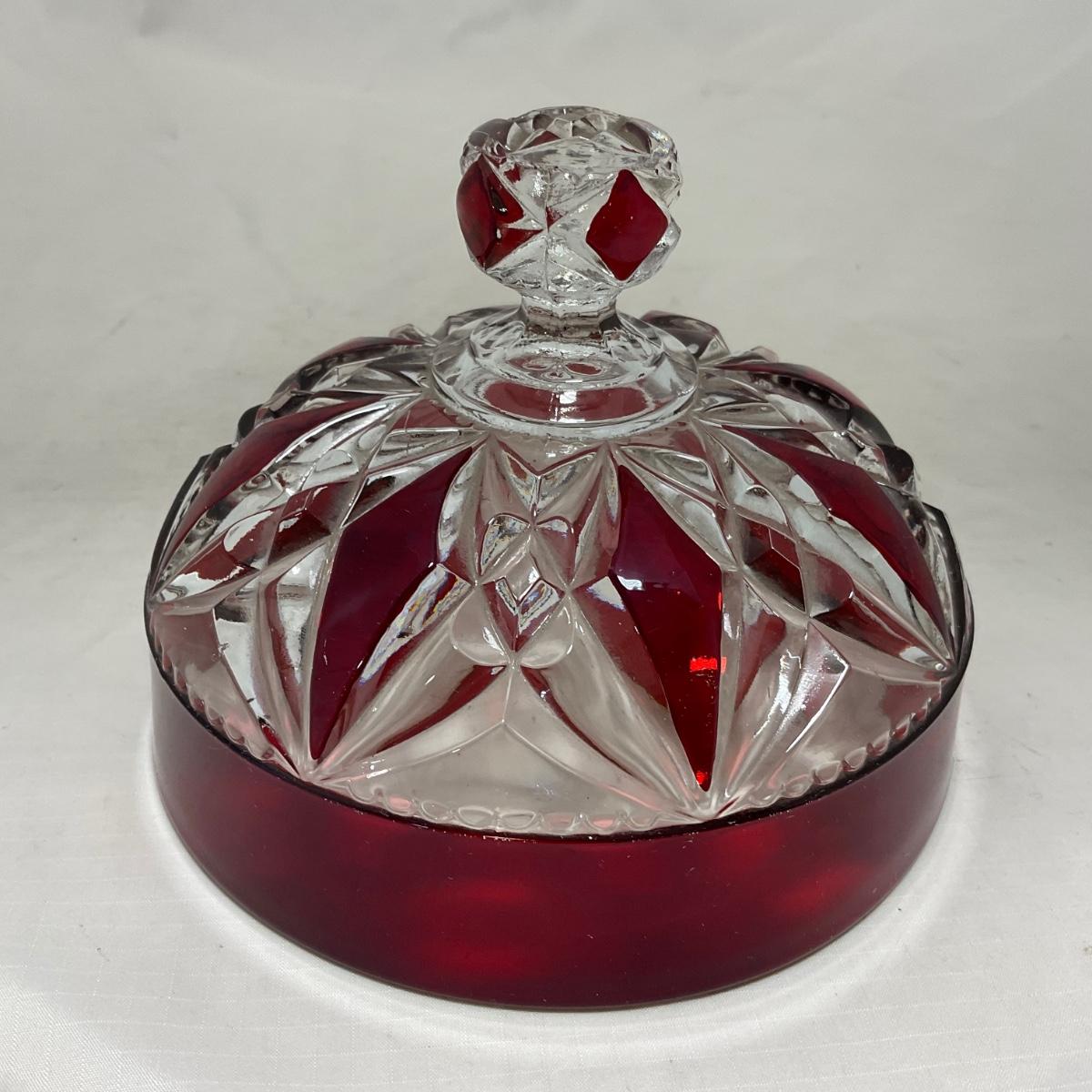 -97- Heavy Ruby Red & Clear Glass | Creamer & Sugar, Butter Dish Lid