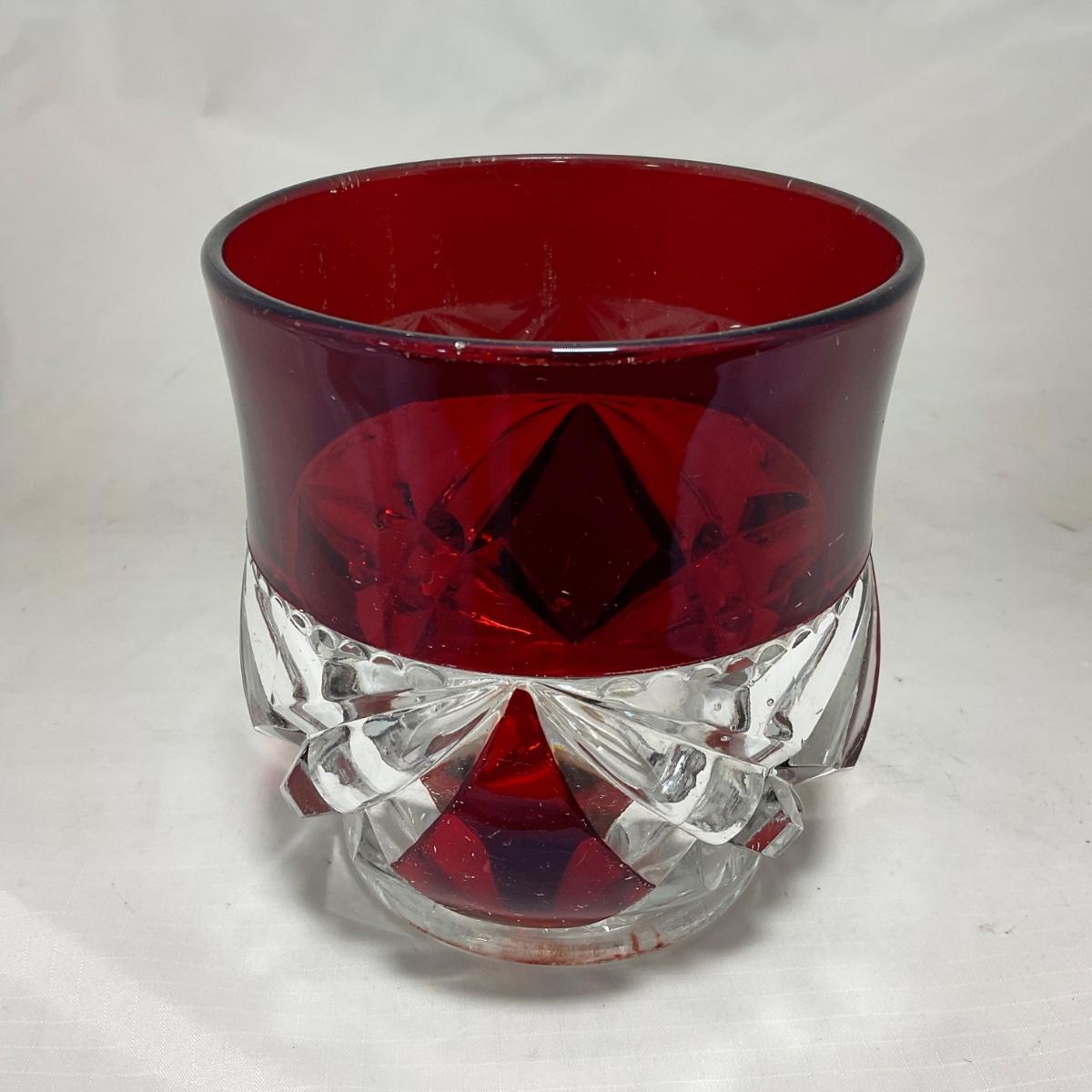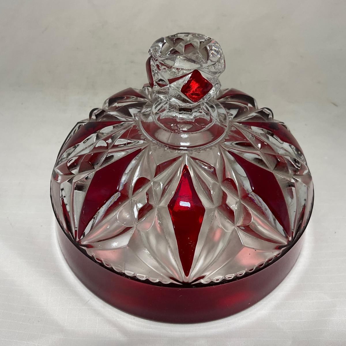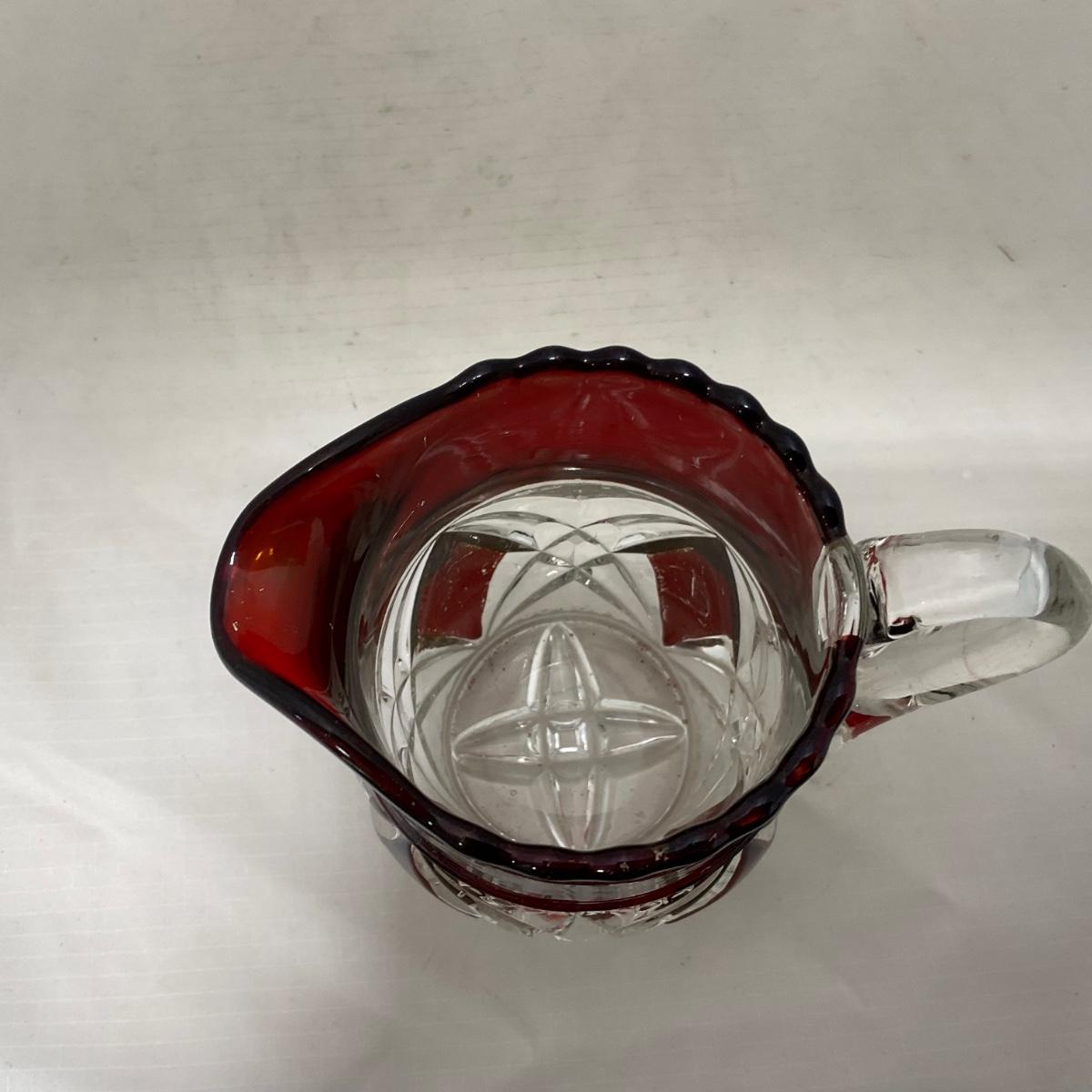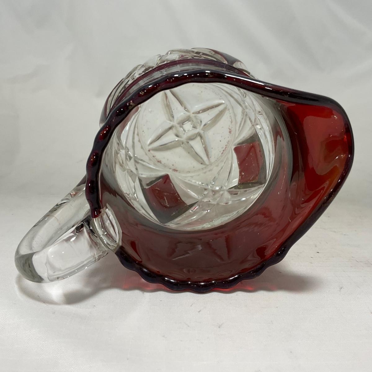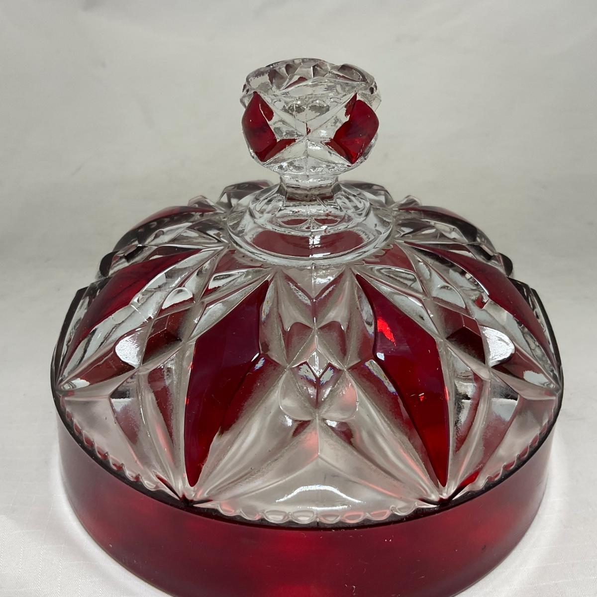 -97- Heavy Ruby Red & Clear Glass | Creamer & Sugar, Butter Dish Lid