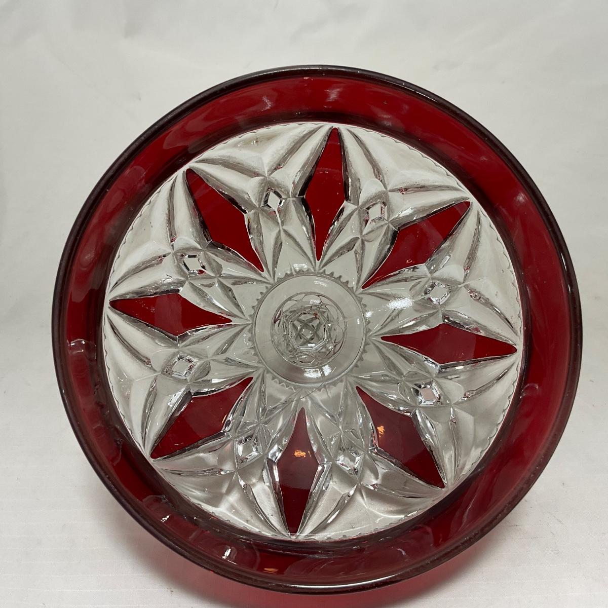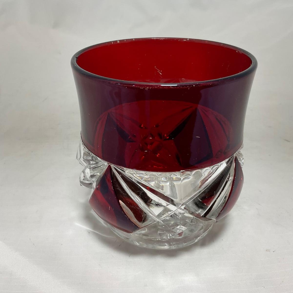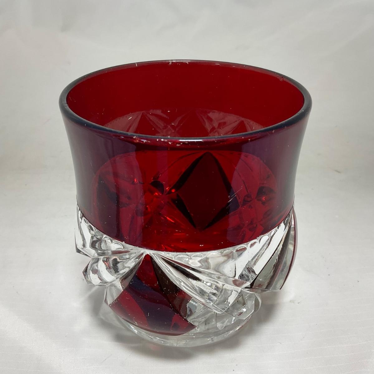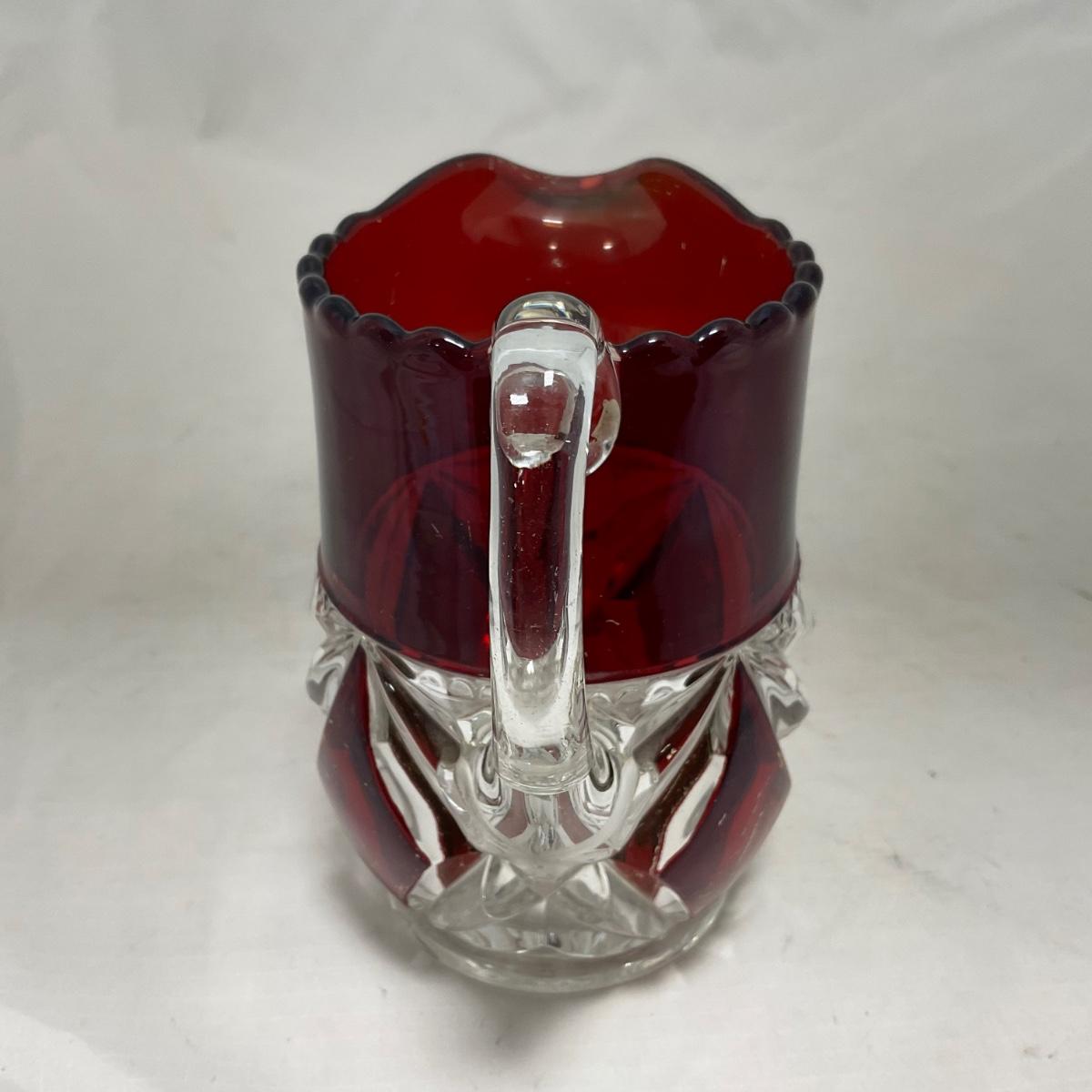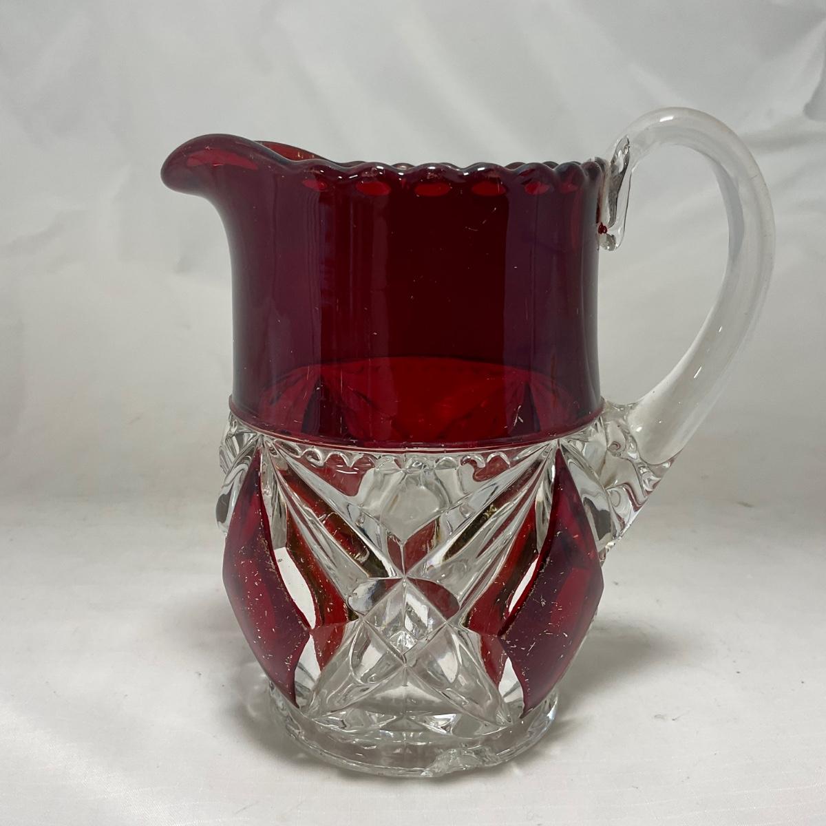 -97- Heavy Ruby Red & Clear Glass | Creamer & Sugar, Butter Dish Lid