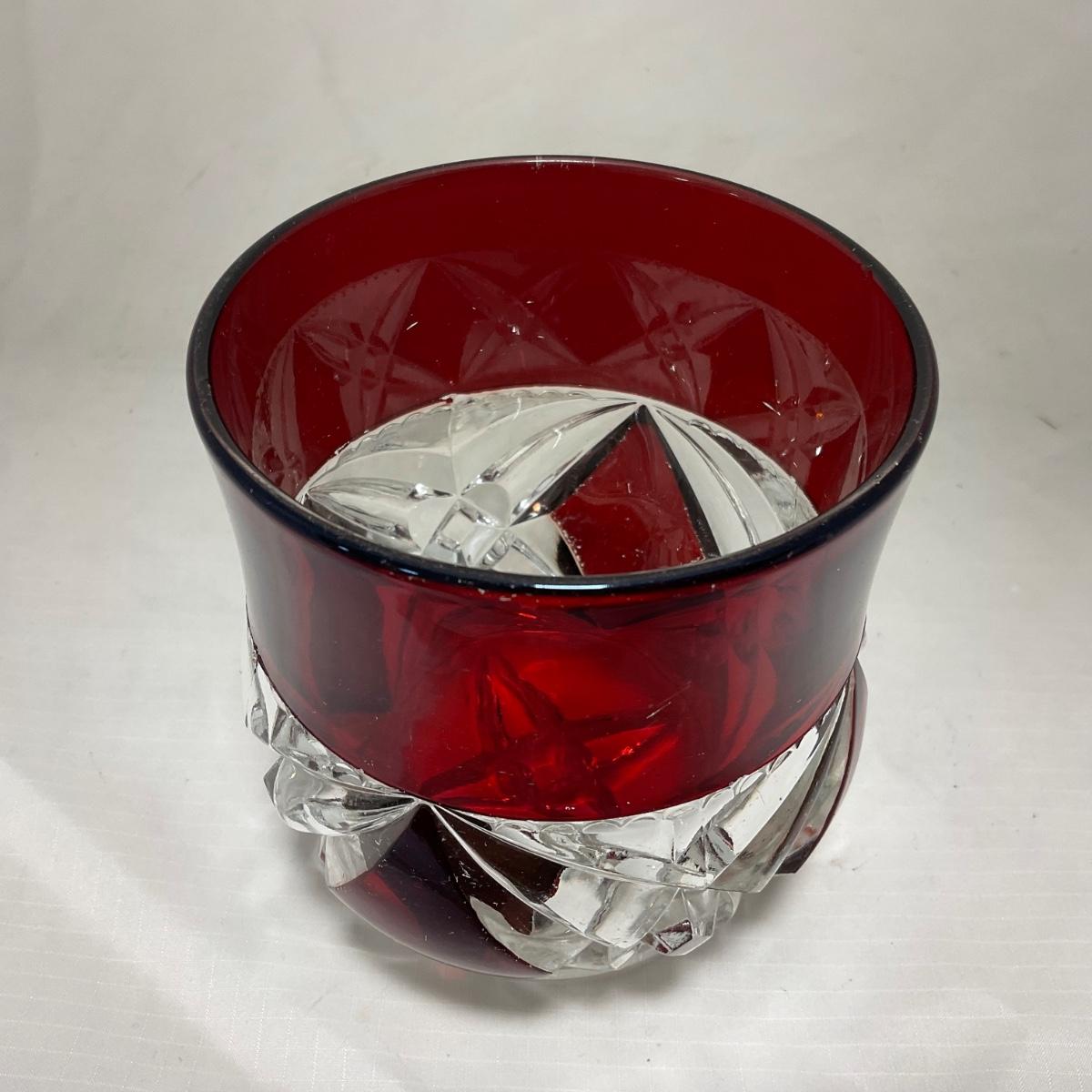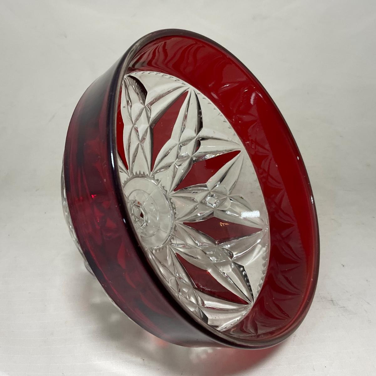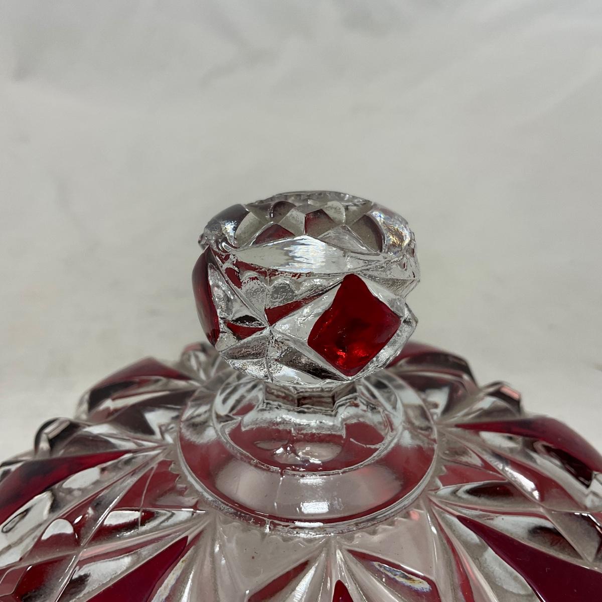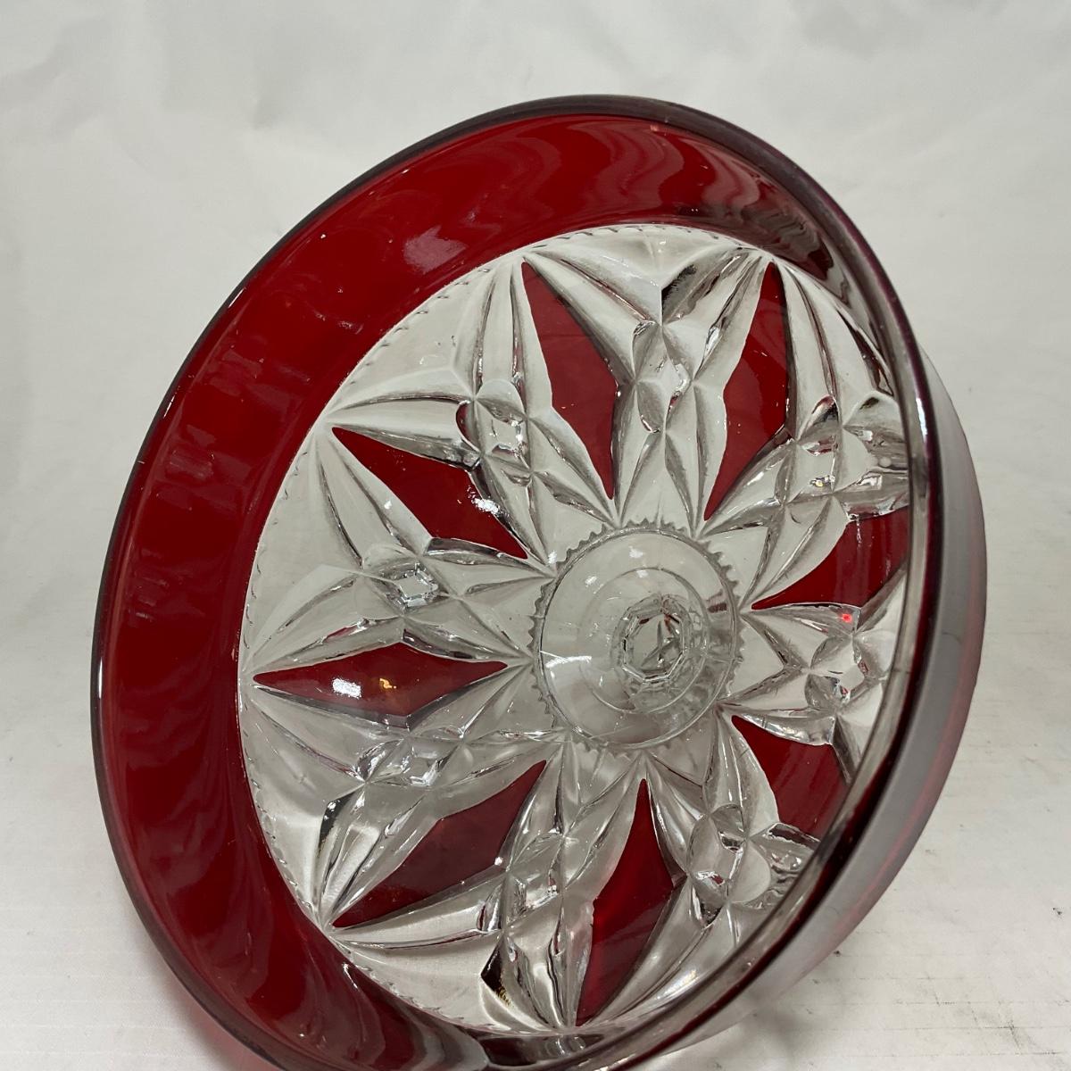 -97- Heavy Ruby Red & Clear Glass | Creamer & Sugar, Butter Dish Lid