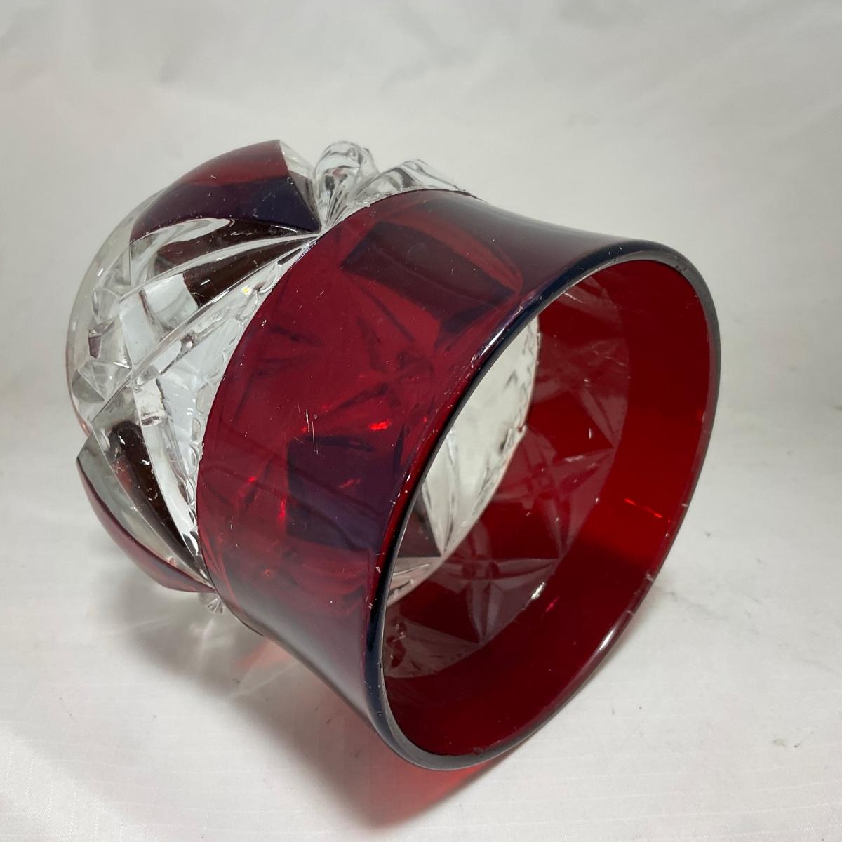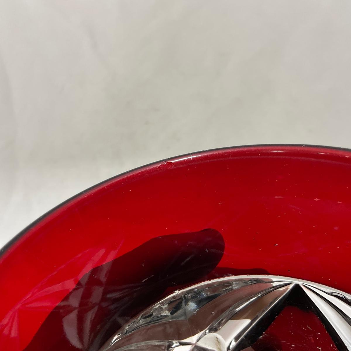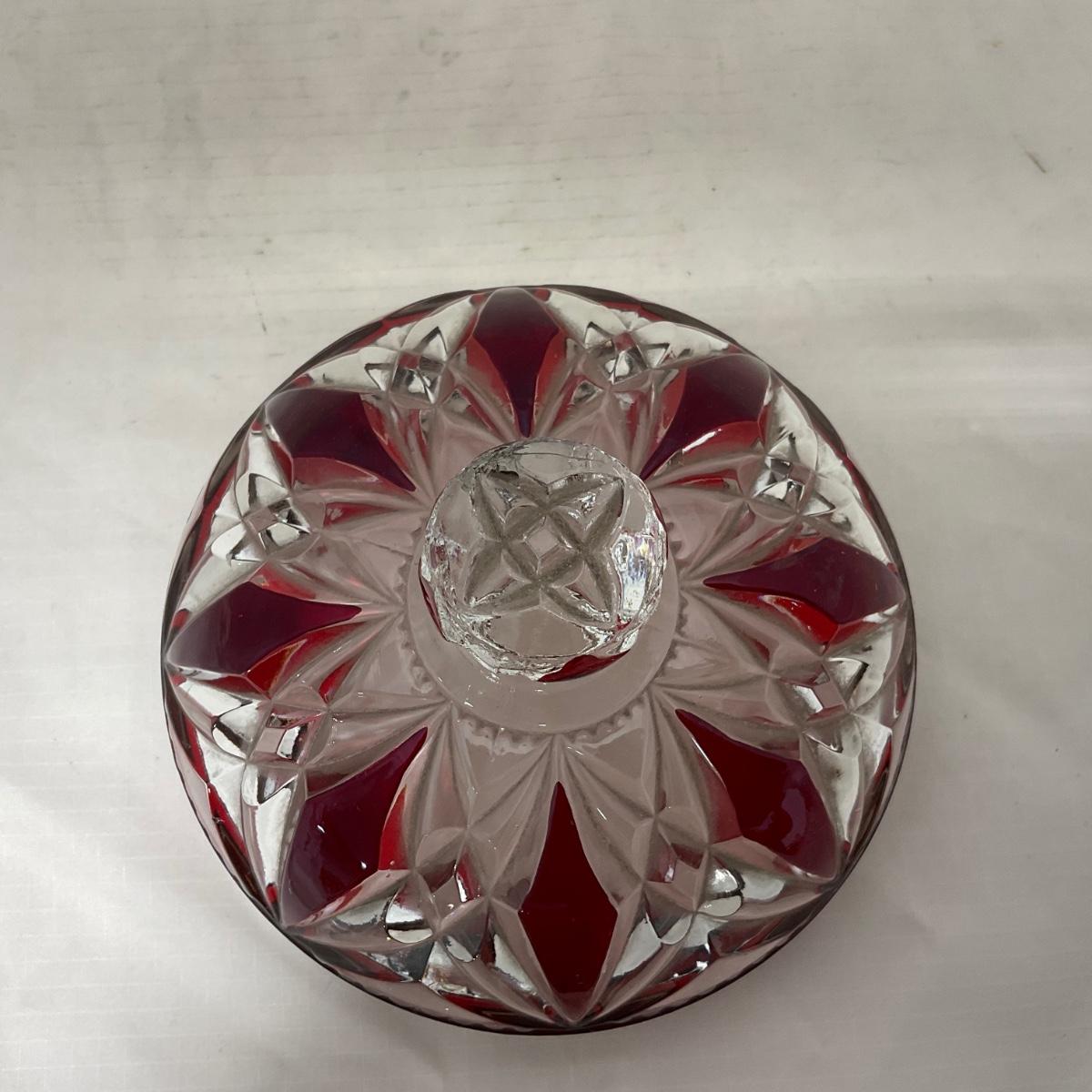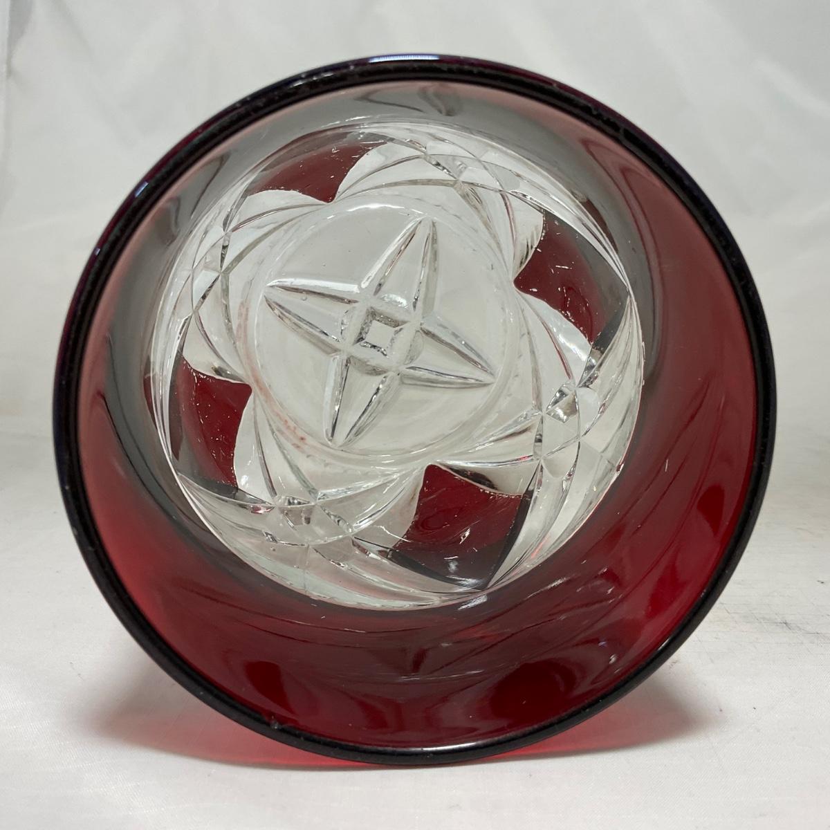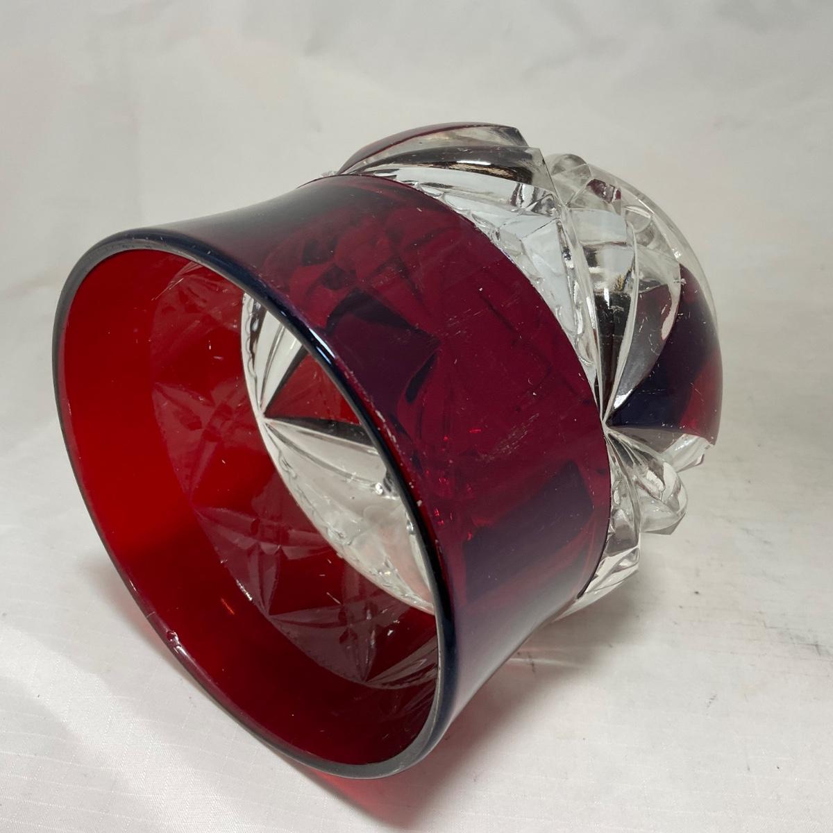 -97- Heavy Ruby Red & Clear Glass | Creamer & Sugar, Butter Dish Lid