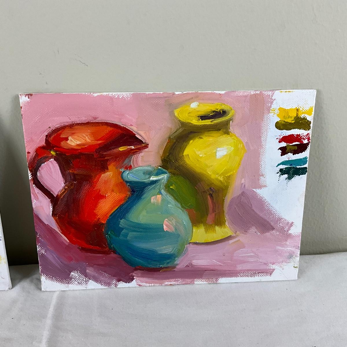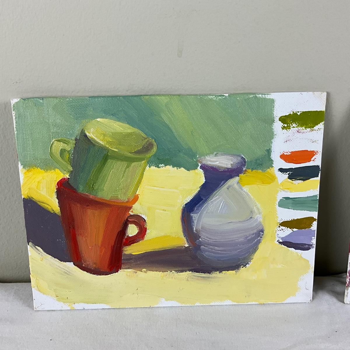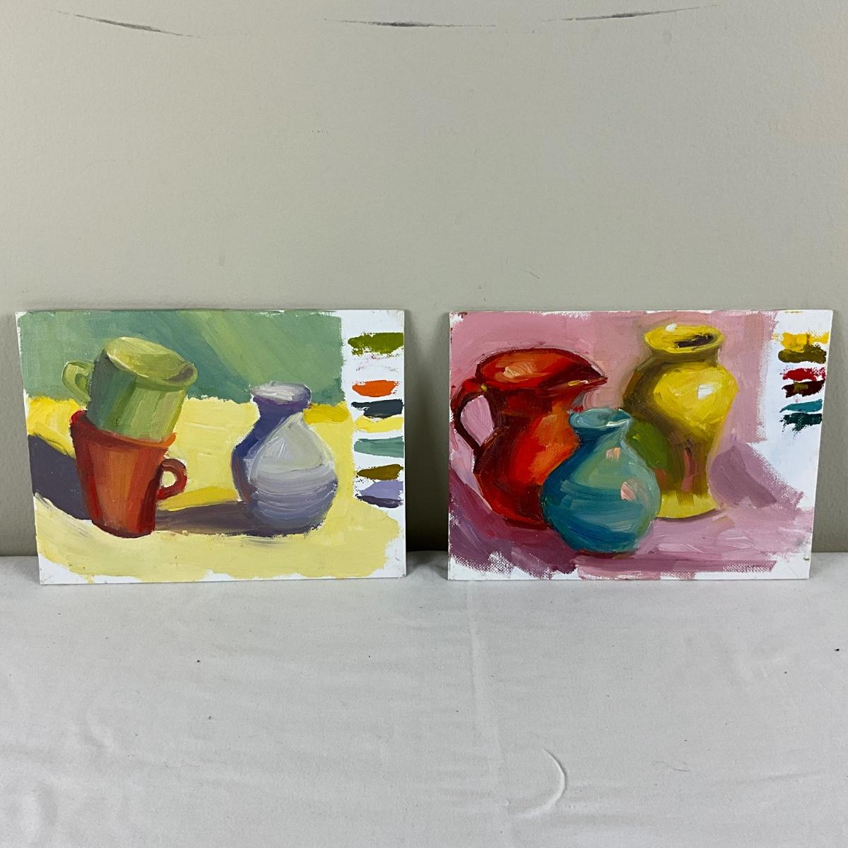 97 Lot of Two Oil Paintings Still LIfe with Color Palette