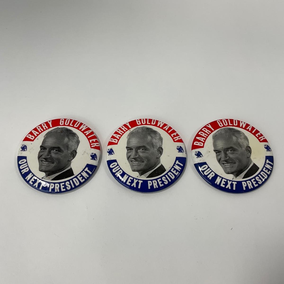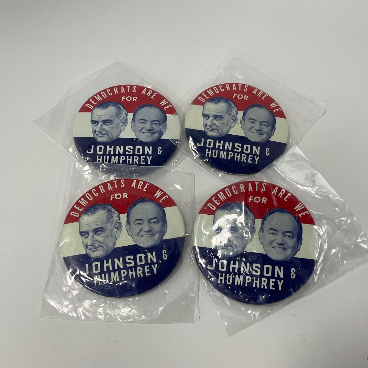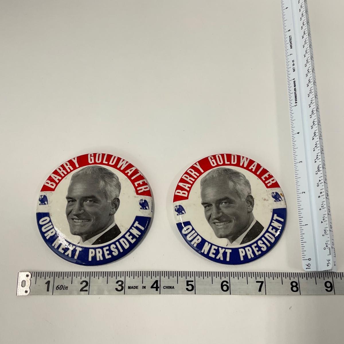 11 vintage 1960’s political buttons some are still sealed in plastic bags. Please see photos for details and condition. ::: Shipping is available on this lot. If you require shipping you must let us know at the close of the auction. We will coordinate with you after the item has been won. Shipping fees will include insurance up to or exceeding the value of all items being mailed. If you have any questions regarding this lot please contact the auctioneer either via this website, by direct email or by phone. PICK UP TIMES and other important information can be found in the TERMS and DESCRIPTION of the auction. Please take a look for pertinent information. Thanks!
