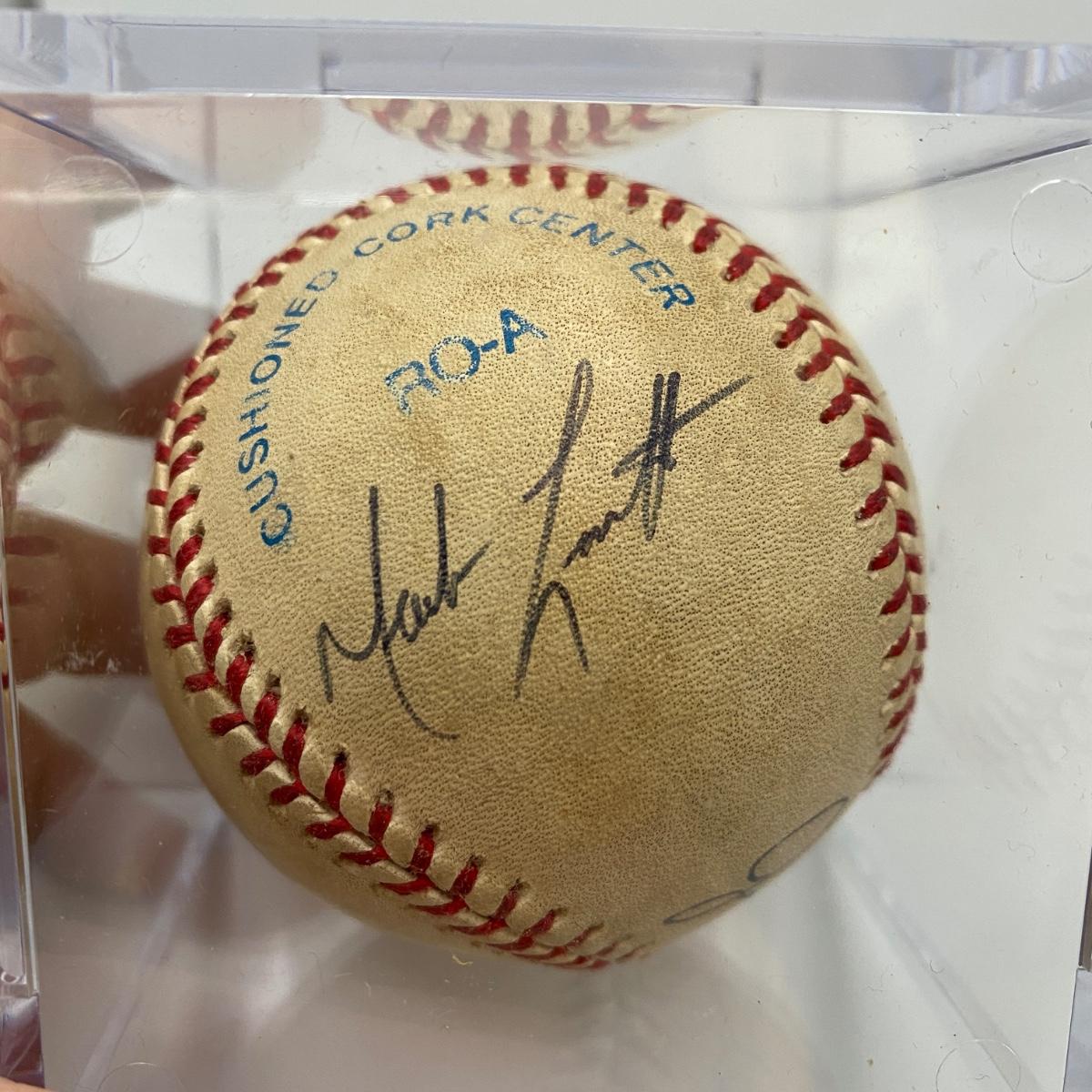 -97- Signed Baseball | Mark Lorah, Jeff Cino, And Jeremy Burntuny