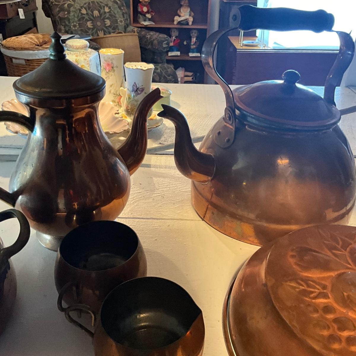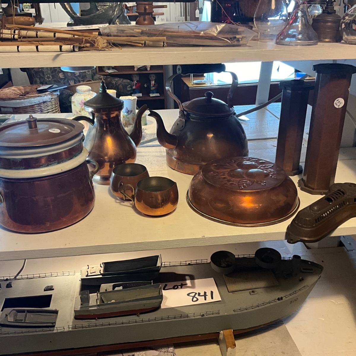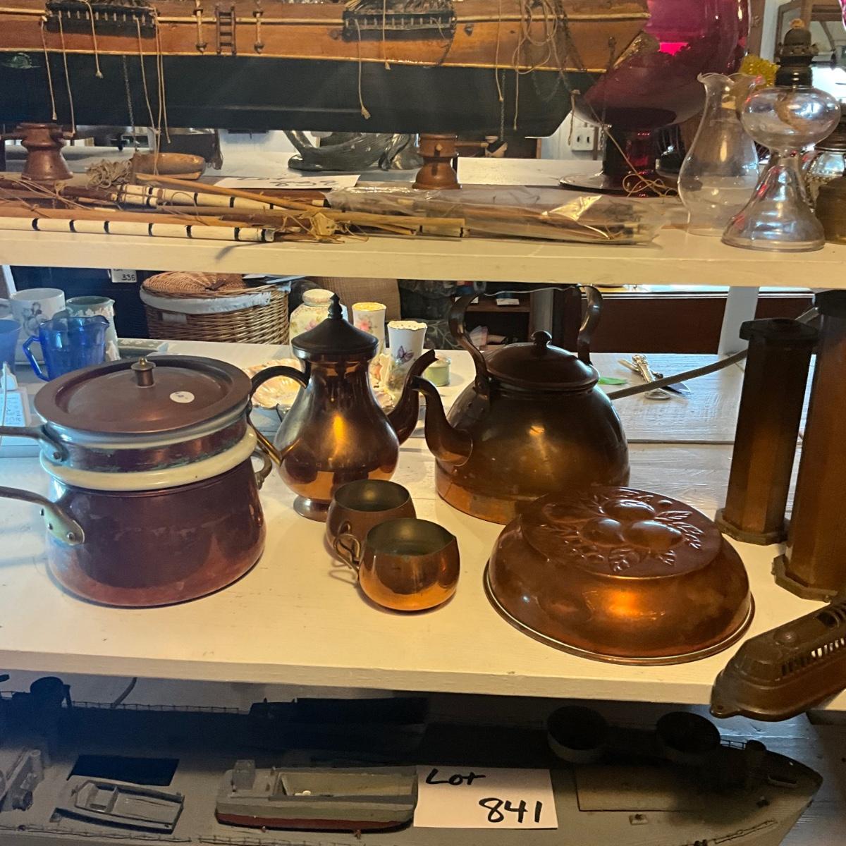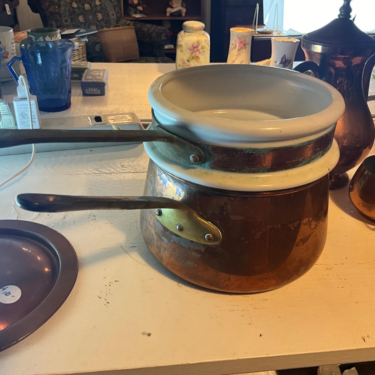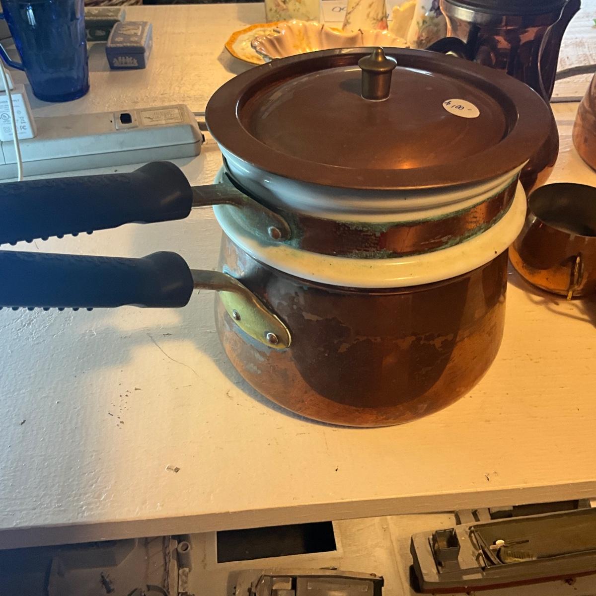 970 Lot of Copper Kitchen Wares , Double Broiler, Candlesticks and more