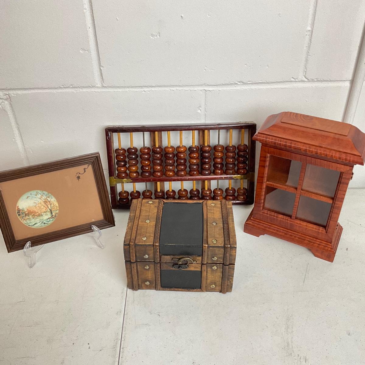 972 Wooden Abacus, Small Chest , Small Wall Display Cabinet , Original Watercolor