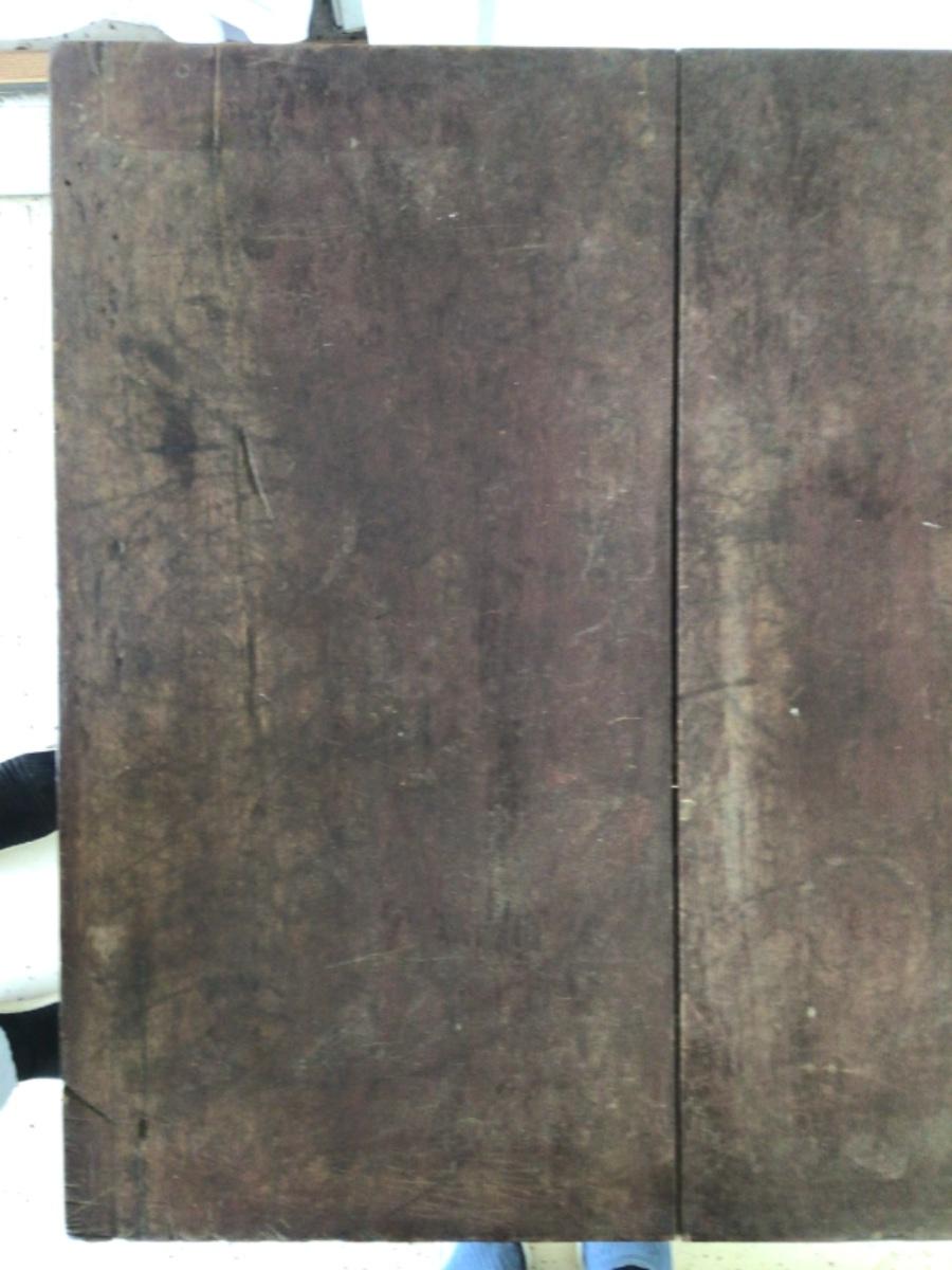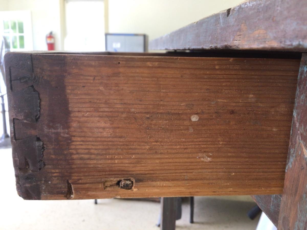 Beveled drawer, pegged split on-top. Original paint