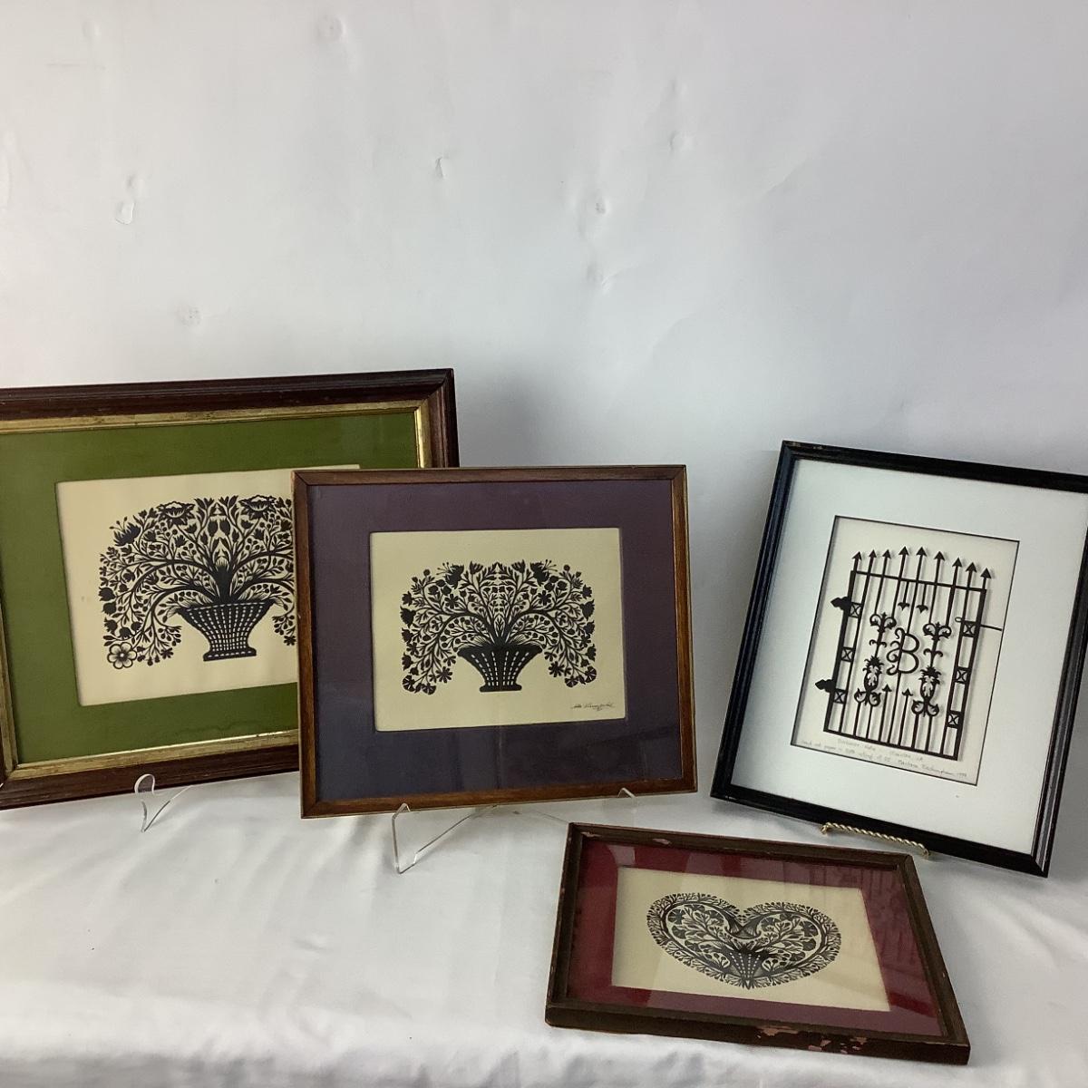 975 Lot of 4 Vintage Folk Art Framed Paper Cuttings