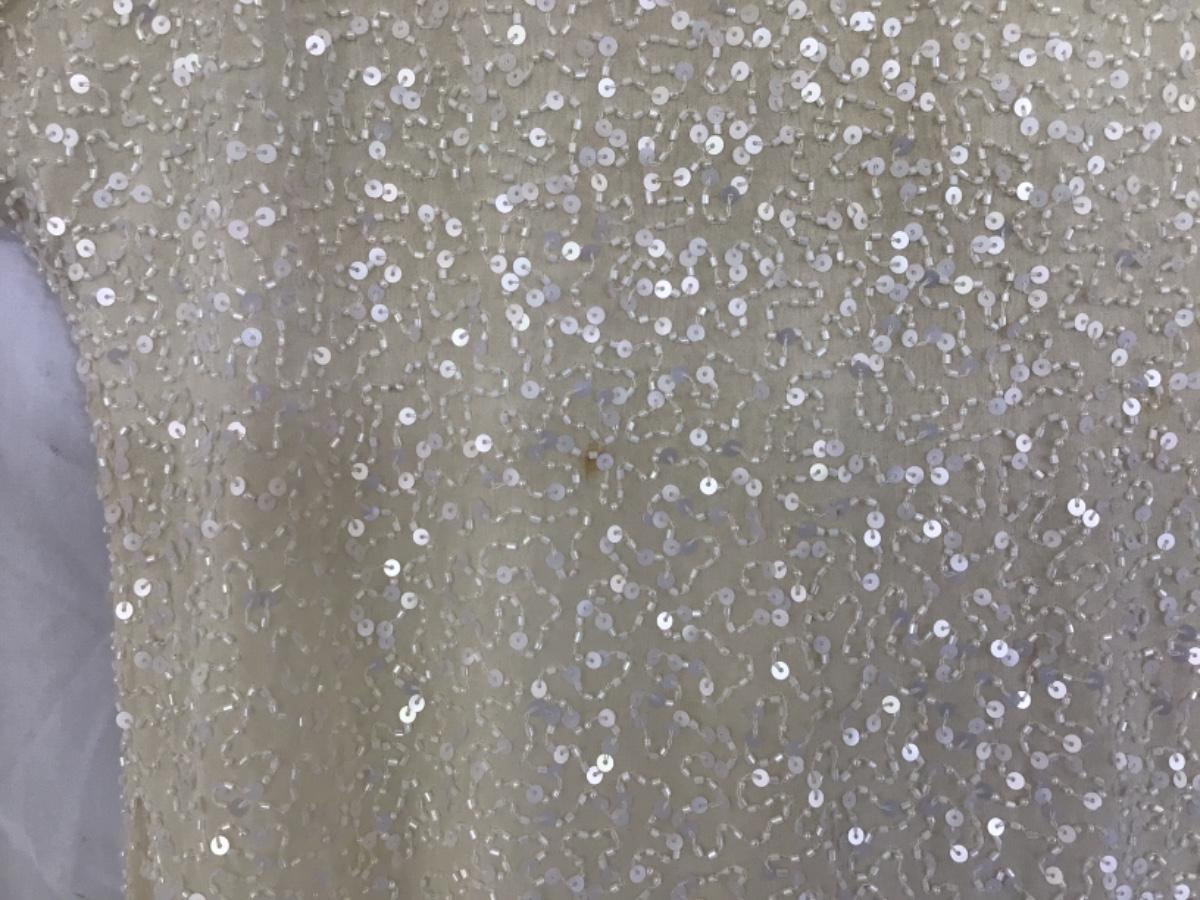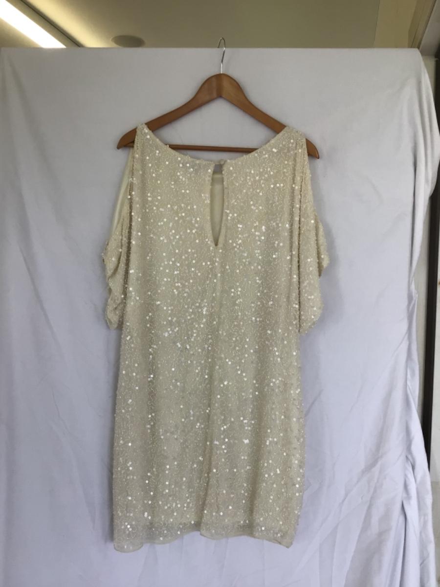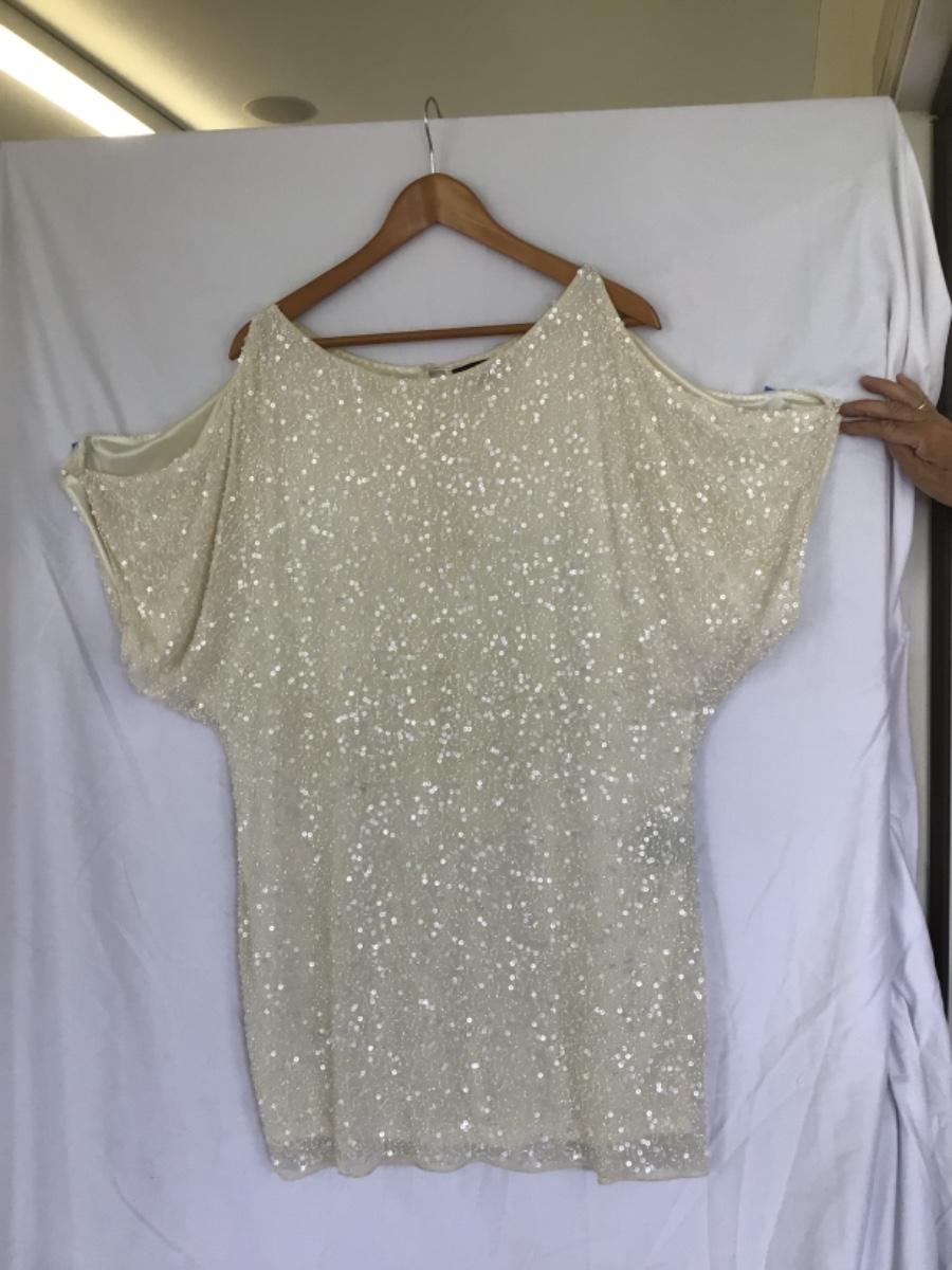978-Silk Screen Beaded Sequenced Open Shoulder Dress