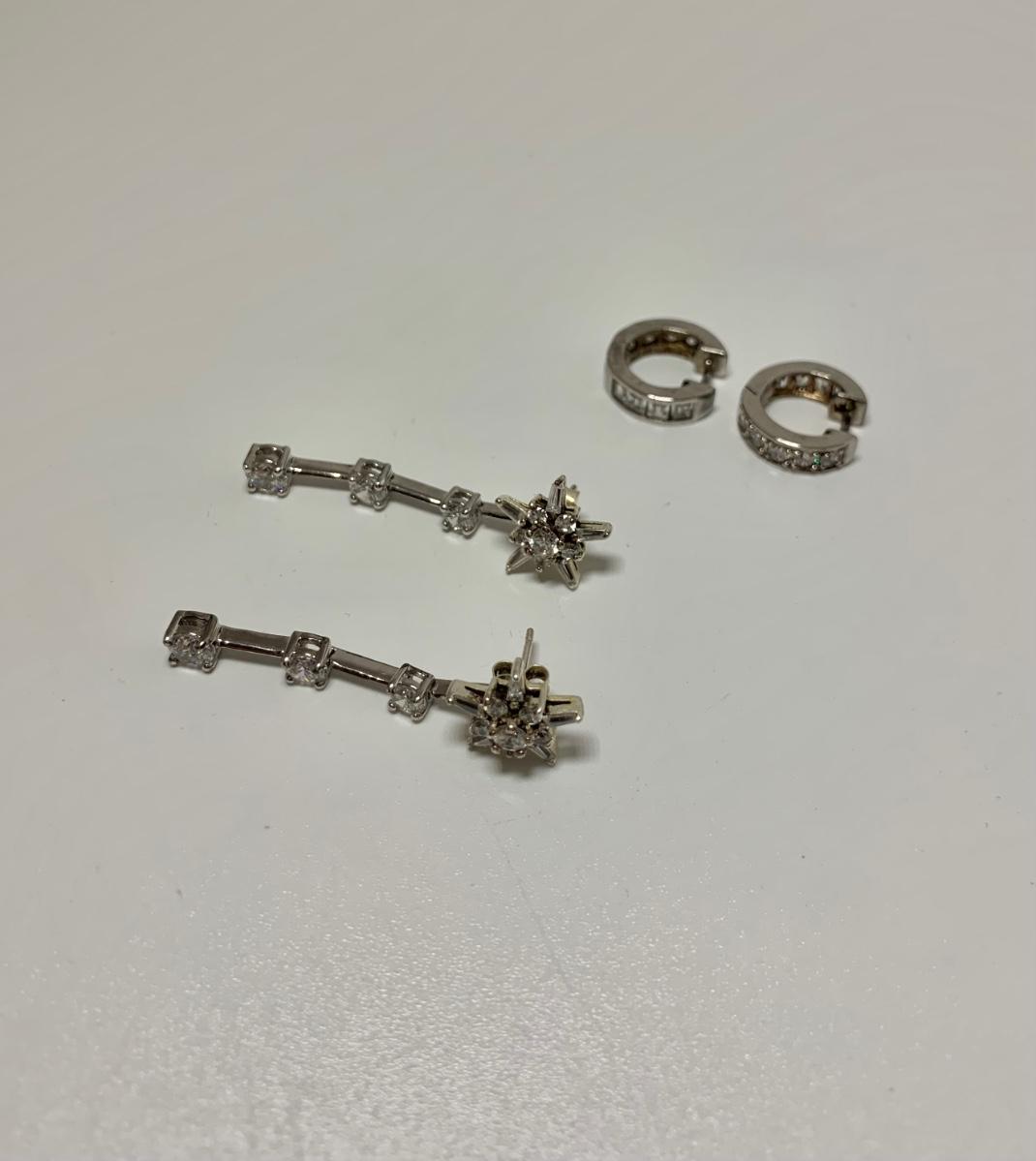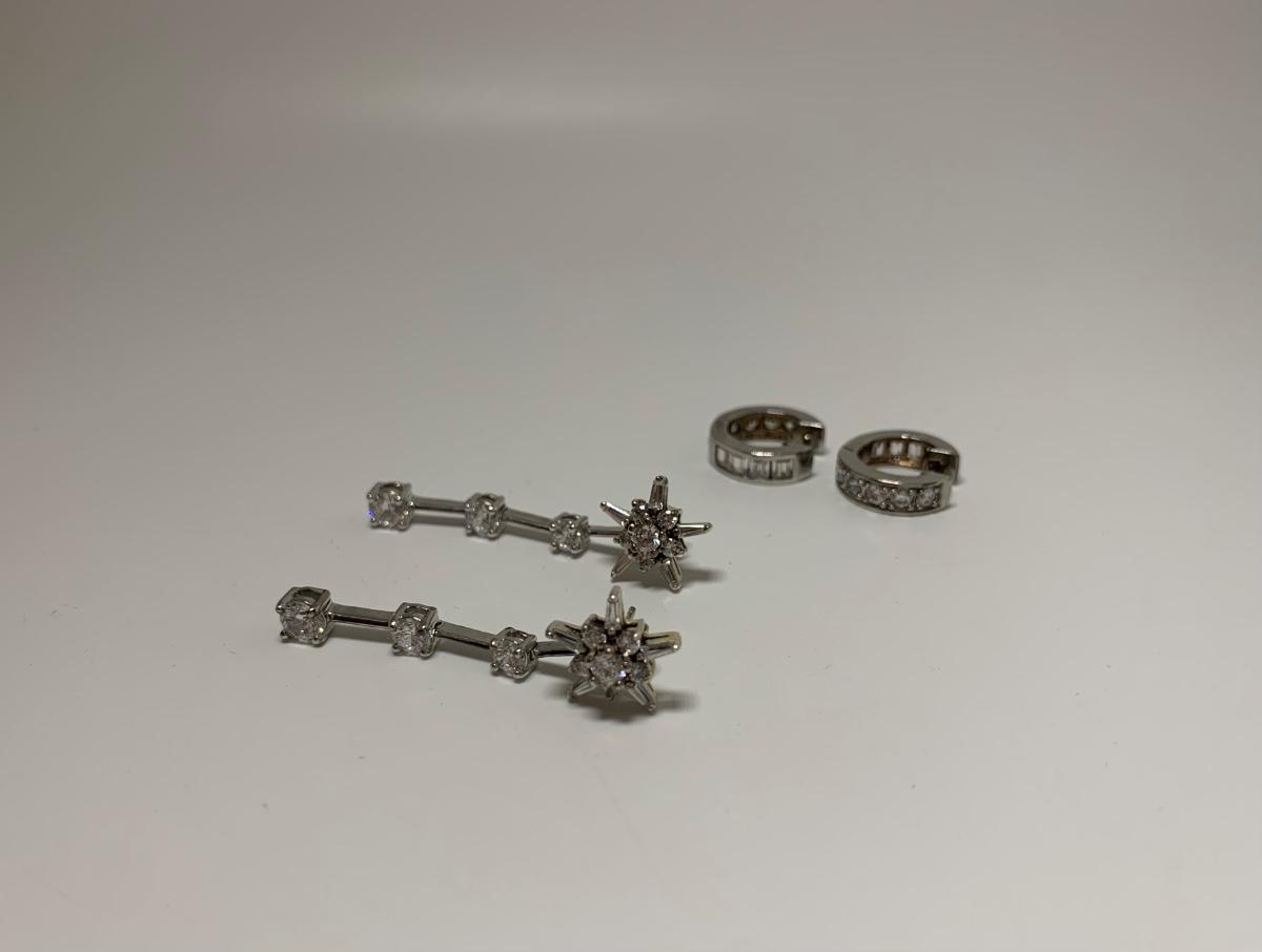 98: 925 Two Pair CZ Hoops & CZ Dangle Star interchangeable