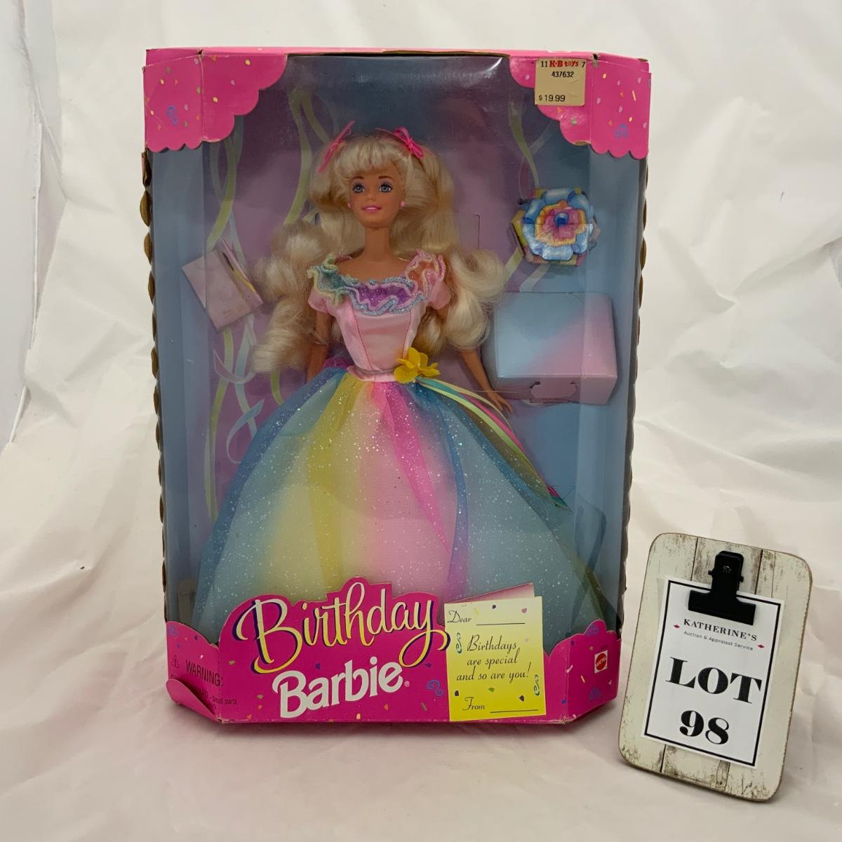 Birthday Barbie - She is missing her cake. I’m not sure if it fell down into the box, or if it is missing all together. All Barbies in this auction are being sold as found, and I haven’t opened anything or added any pieces. Doll was produced by Mattel in 1997. Please see photos for details and condition. !!! Proceeds from this auction will be donated to the NEW COMMUNITY SHELTER in Green Bay, Wisconsin. Please see Sale Description to the Left for more information. !!! ::: Shipping is available on this lot. If you require shipping you must let us know at the close of the auction. We will coordinate with you after the item has been won. Shipping fees will include insurance up to or exceeding the value of all items being mailed. If you have any questions regarding this lot please contact the auctioneer either via this website, by direct email or by phone. PICK UP TIMES and other important information can be found in the TERMS and DESCRIPTION of the auction. Please take a look for pertinent information. Thanks!