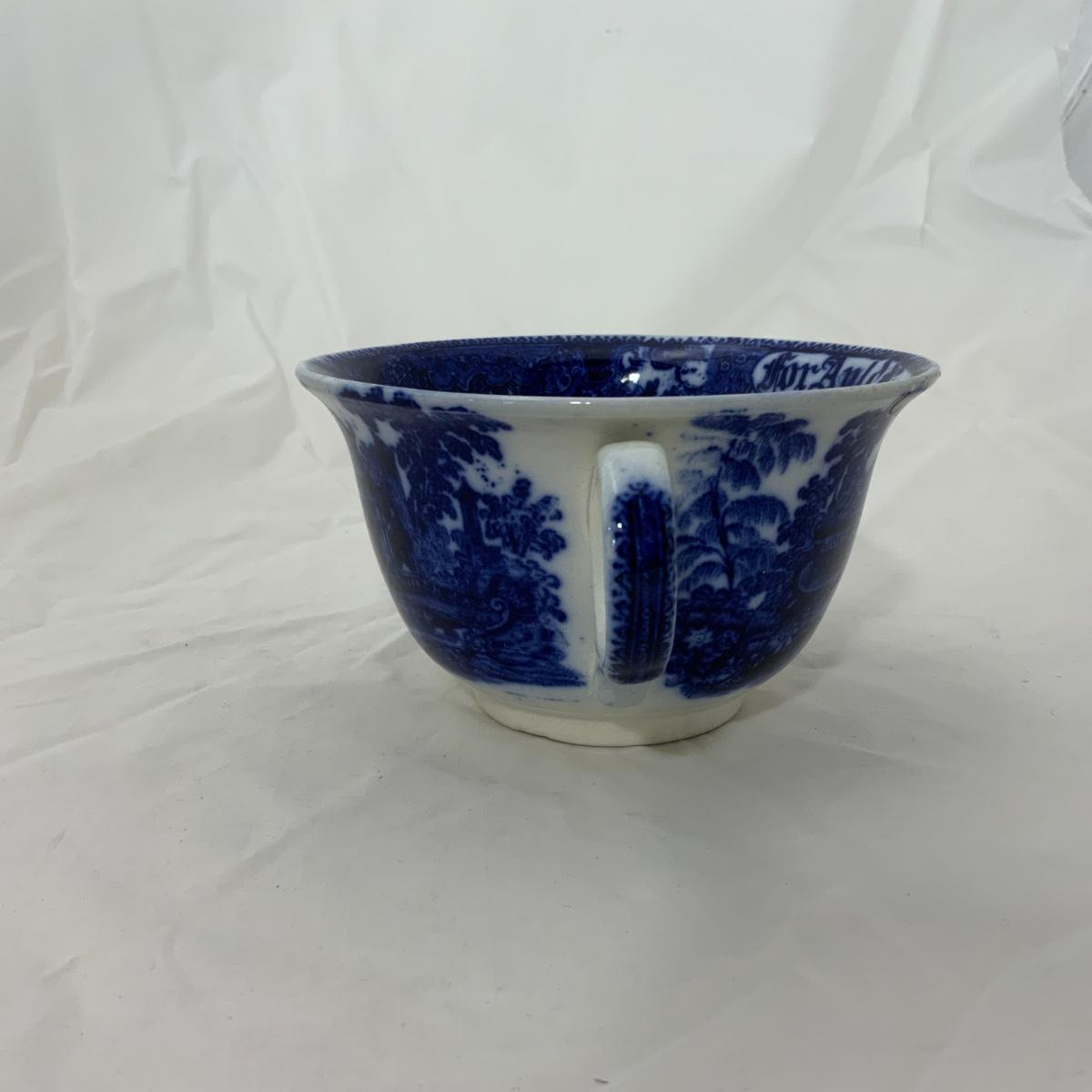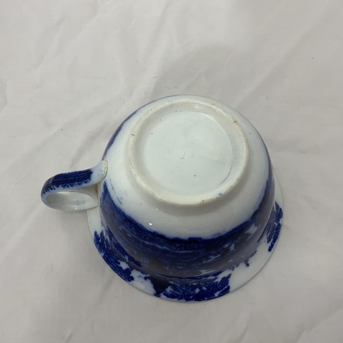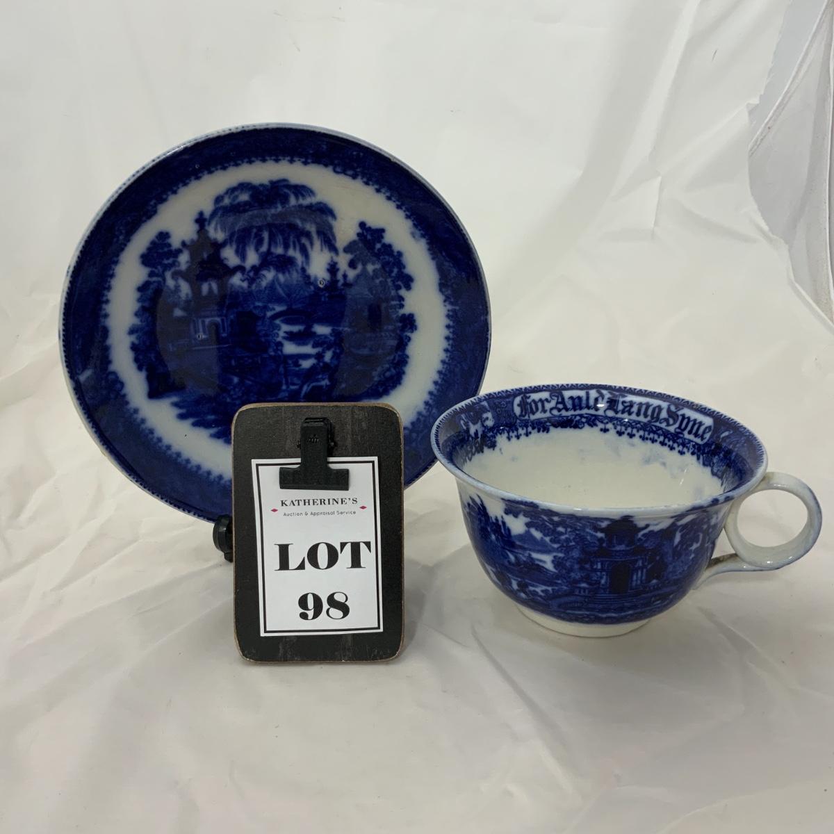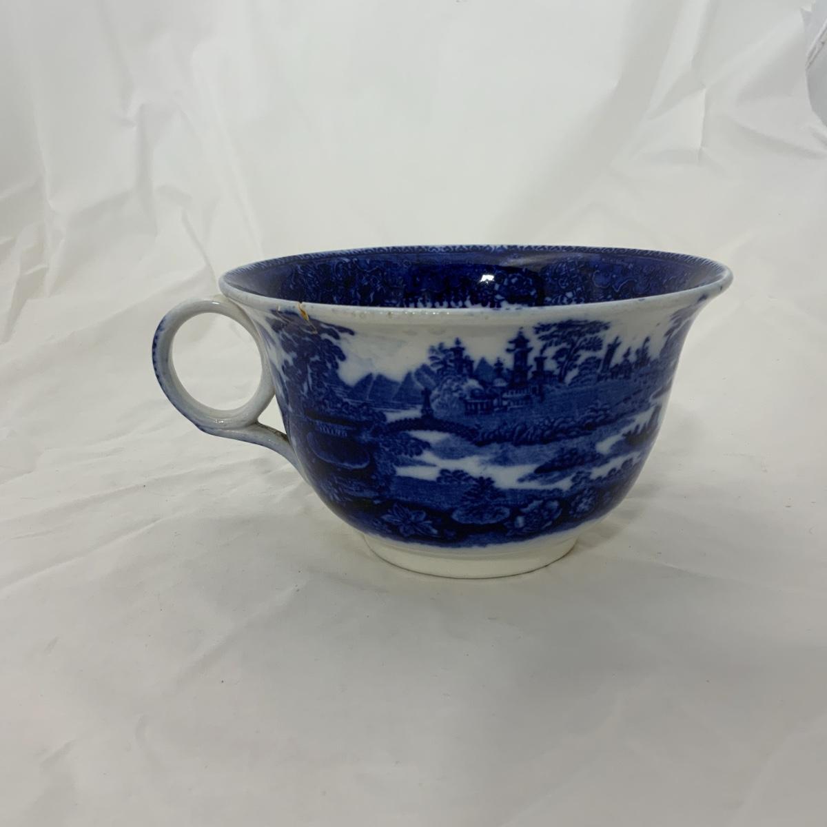 From the Estate of Peter Radovanovich: Oversized Cup and Saucer in the Flow Blue Colorway. Neither piece are marked with a maker. The cup has the words For Auld Lang Syne on the interior rim. There is a small chip that has been repaired on the cup on the reverse of the saying. If you are buying as a display piece, no one will ever know! Please see photos for details and condition. ::: Shipping is available on this lot. If you require shipping you must let us know at the close of the auction. We will coordinate with you after the item has been won. Shipping fees will include insurance up to or exceeding the value of all items being mailed. If you have any questions regarding this lot please contact the auctioneer either via this website, by direct email or by phone. PICK UP TIMES and other important information can be found in the TERMS and DESCRIPTION of the auction. Please take a look for pertinent information. Thanks!