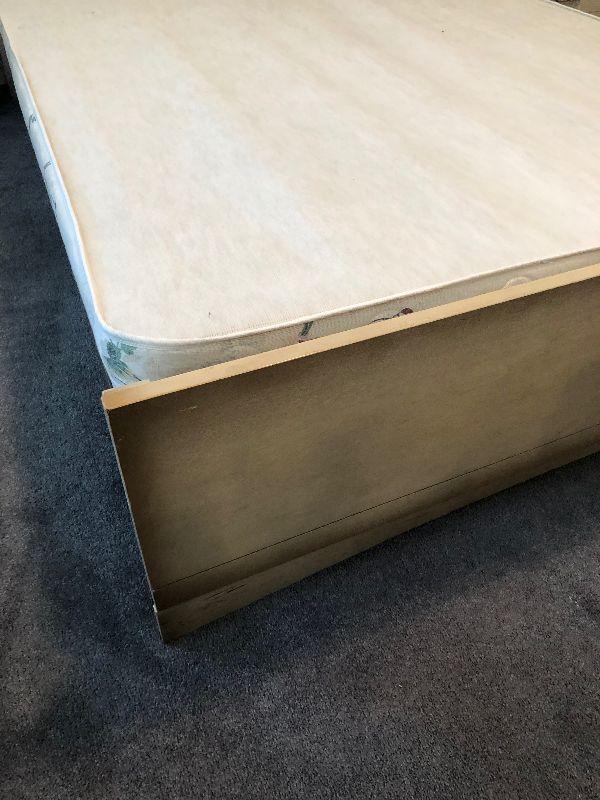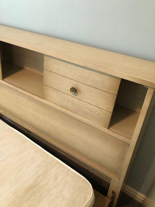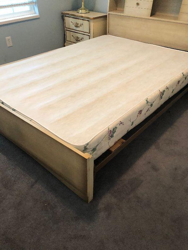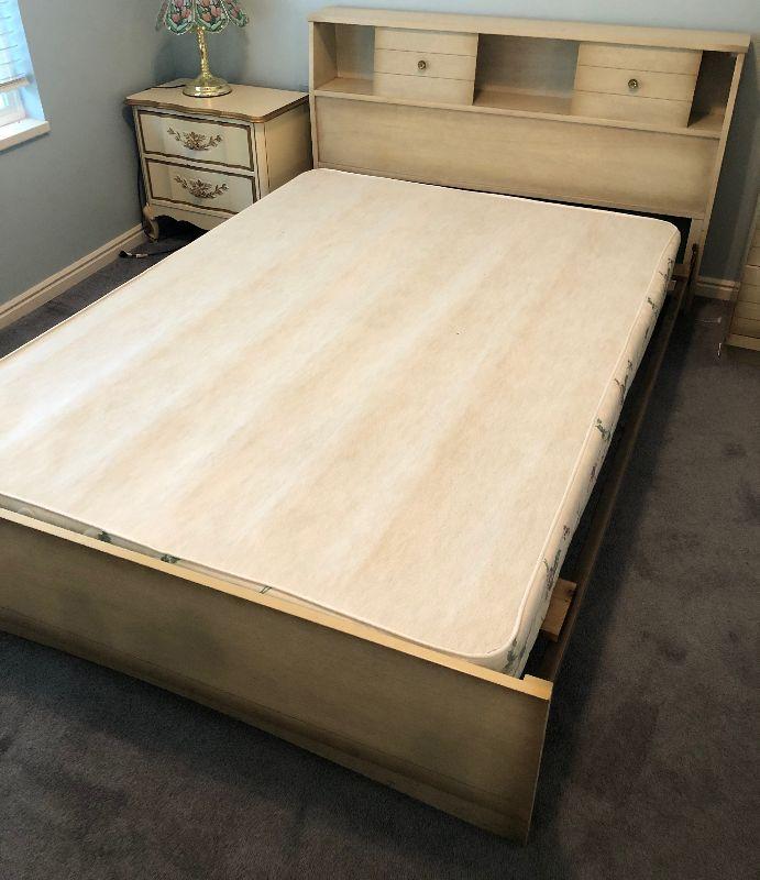 #98 Full Size Bed Frame, with Bookcase Headboard and Box Spring.
