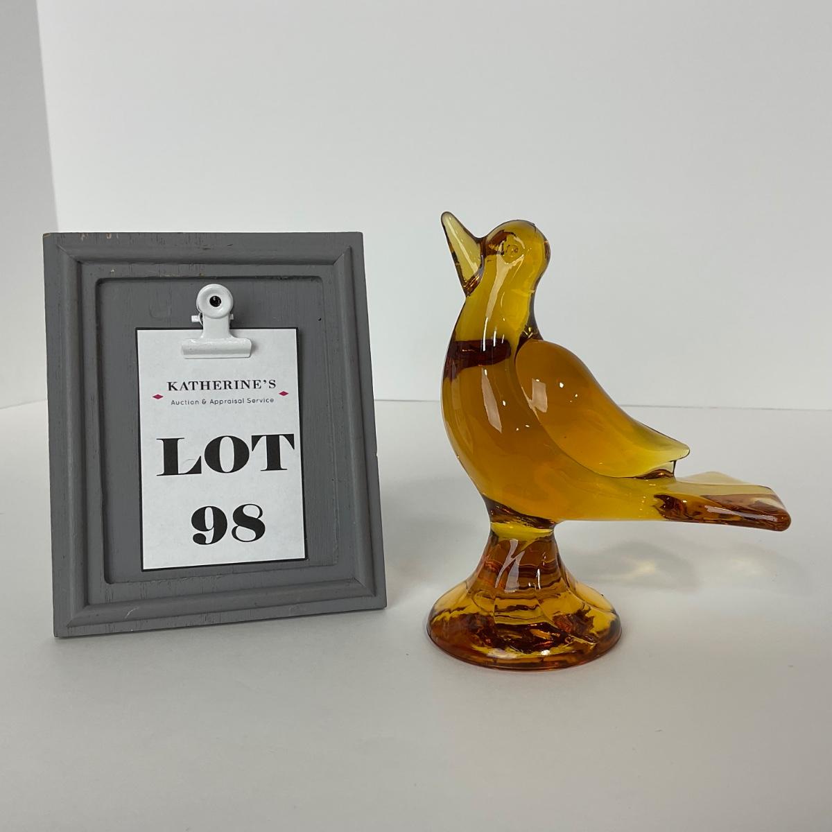 One Viking mid century amber love bird figure. This piece does have a few mold marks. This piece has no damage, and appears to be in great shape with no visable chips, cracks, or broken pieces. 4 1/2 inches wide by 5 inches tall. Please see photos for details and condition. Any condition statement is given as a courtesy to a client, is an opinion, and should not be treated as a statement of fact. Reference to condition written, oral or within a condition report shall not be regarded as a full account of condition and may not include all defects, alterations, or restorations. Absence of a condition report does not imply a lot is flawless or lacking imperfections or damage. Katherine’s Auction & Appraisal Service shall have no responsibility for any error or omission. Returns shall not be accepted on the basis of condition. ::: Shipping is available on this lot. If you require shipping you must let us know at the close of the auction. We will coordinate with you after the item has been won. Shipping fees will include insurance up to or exceeding the value of all items being mailed. If you have any questions regarding this lot please contact the auctioneer either via this website, by direct email or by phone. PICK UP TIMES and other important information can be found in the TERMS and DESCRIPTION of the auction. Please take a look for pertinent information. Thanks!
