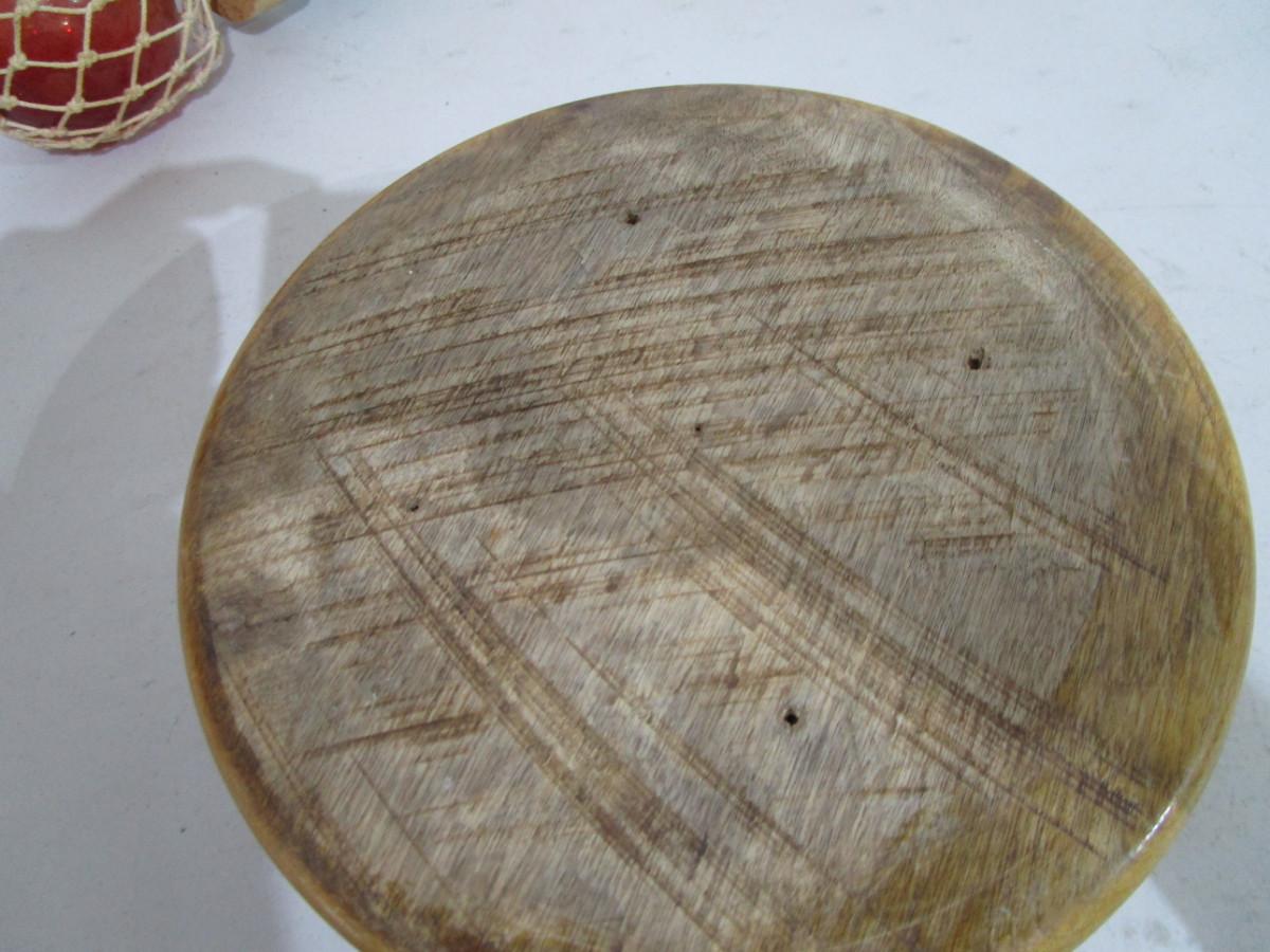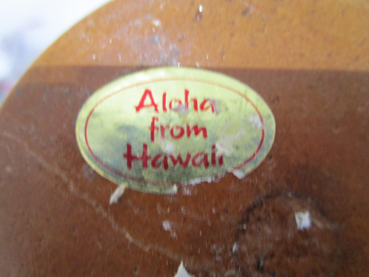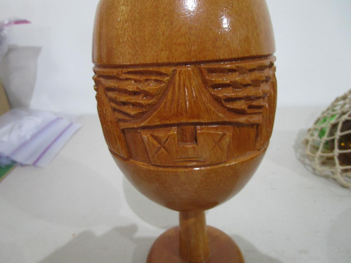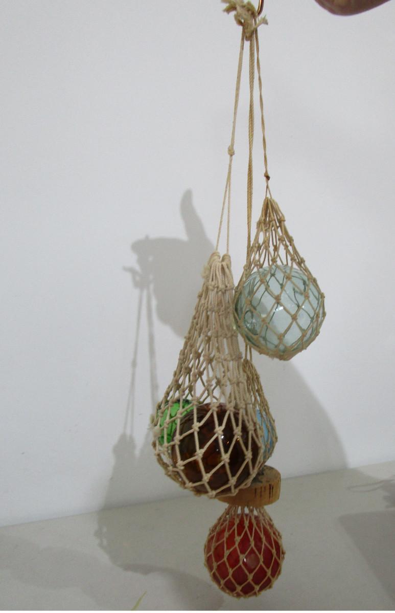 #98 Wooden Hawaii goblet, wooden bowl, decorative glass balls in netting