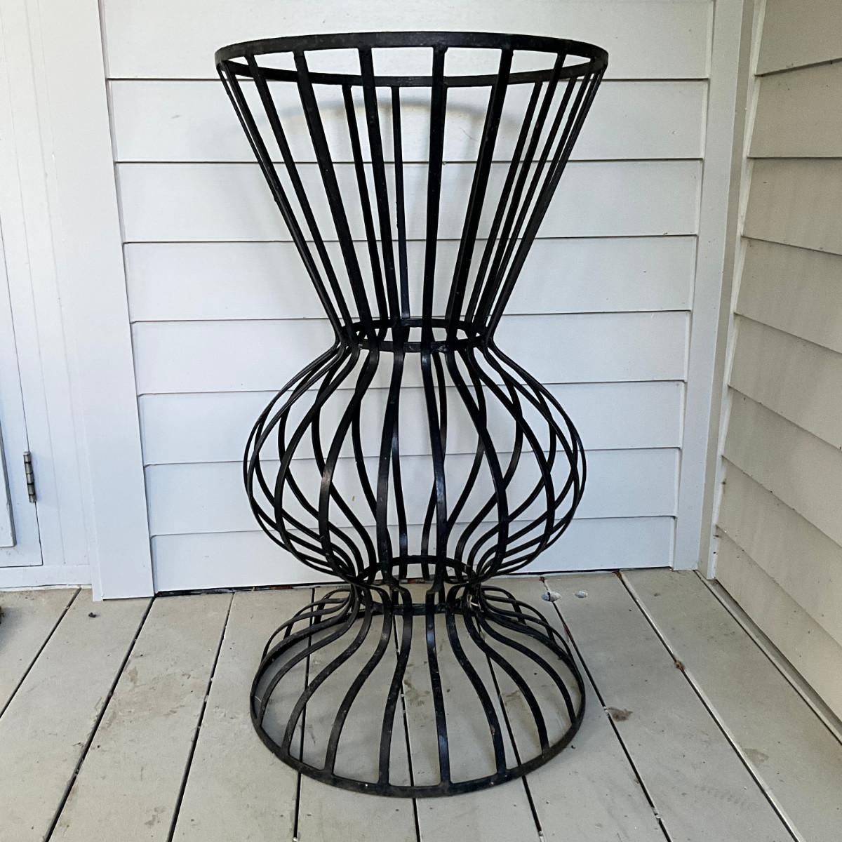 980 Black Metal Wrought Iron Hourglass Shaped Plant Holder