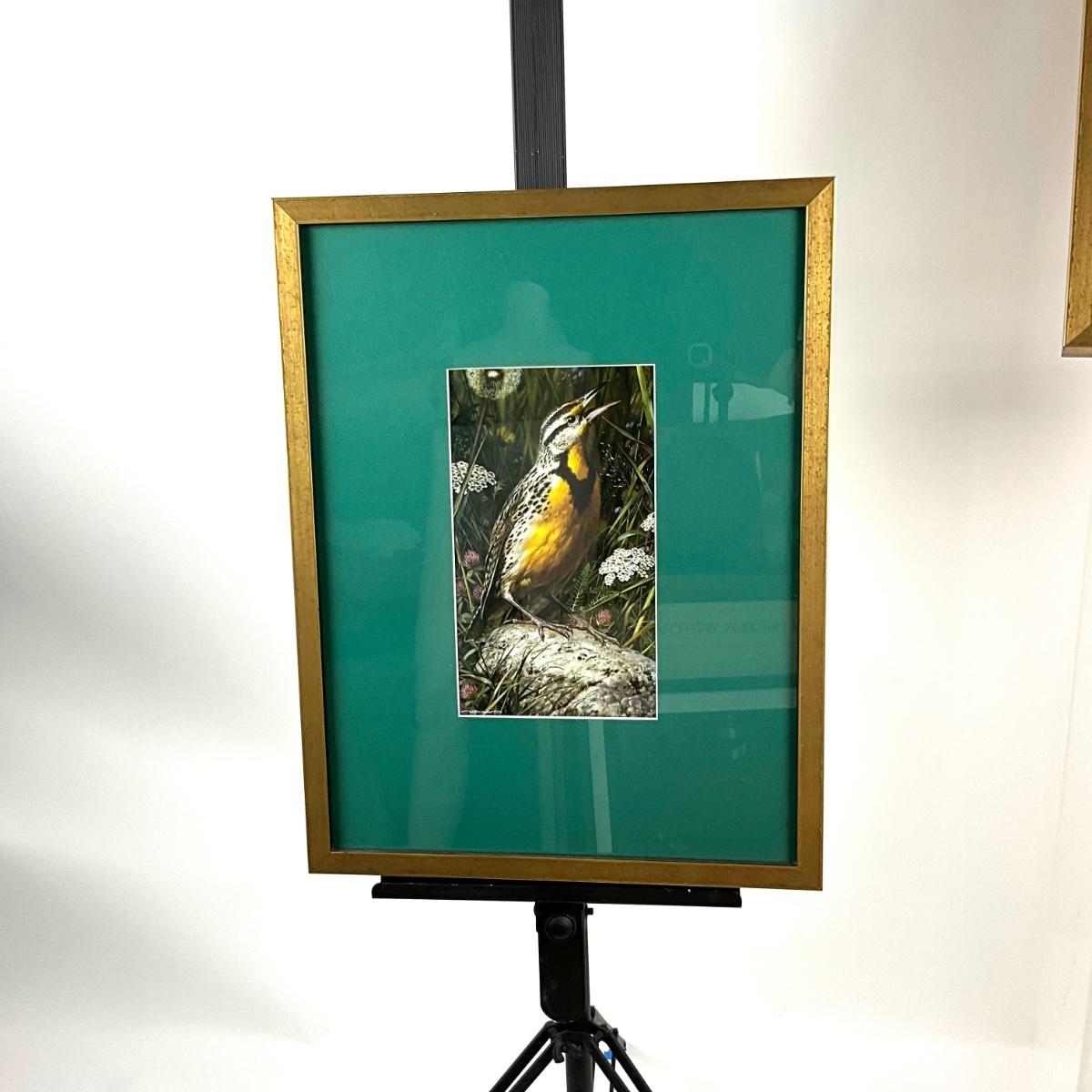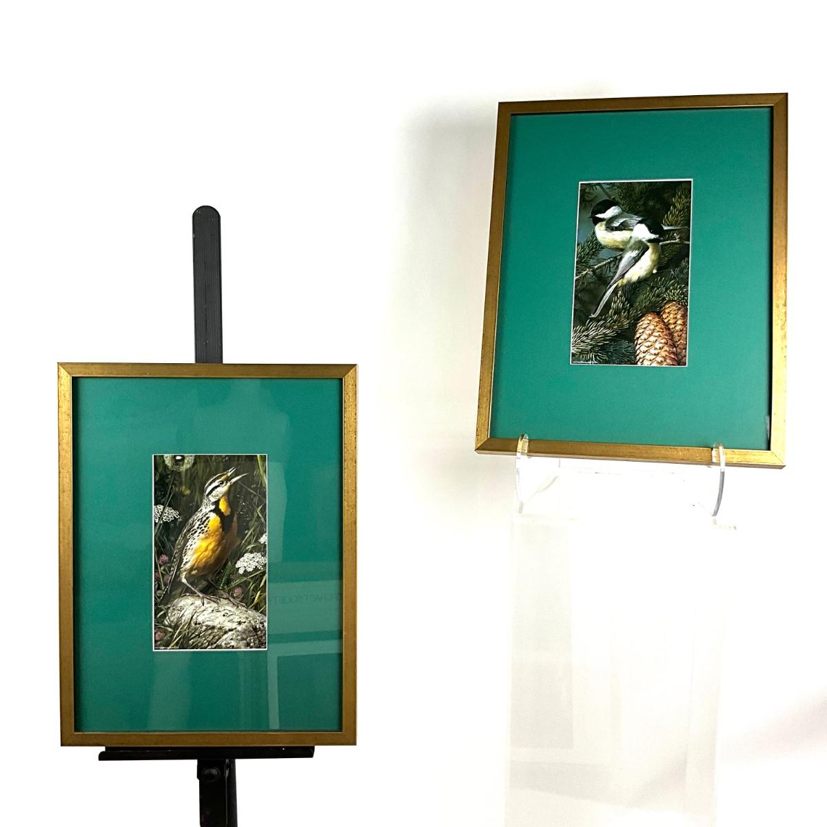 980 Pair of Carl Brenders Bird Prints Chickadee, Meadowlark