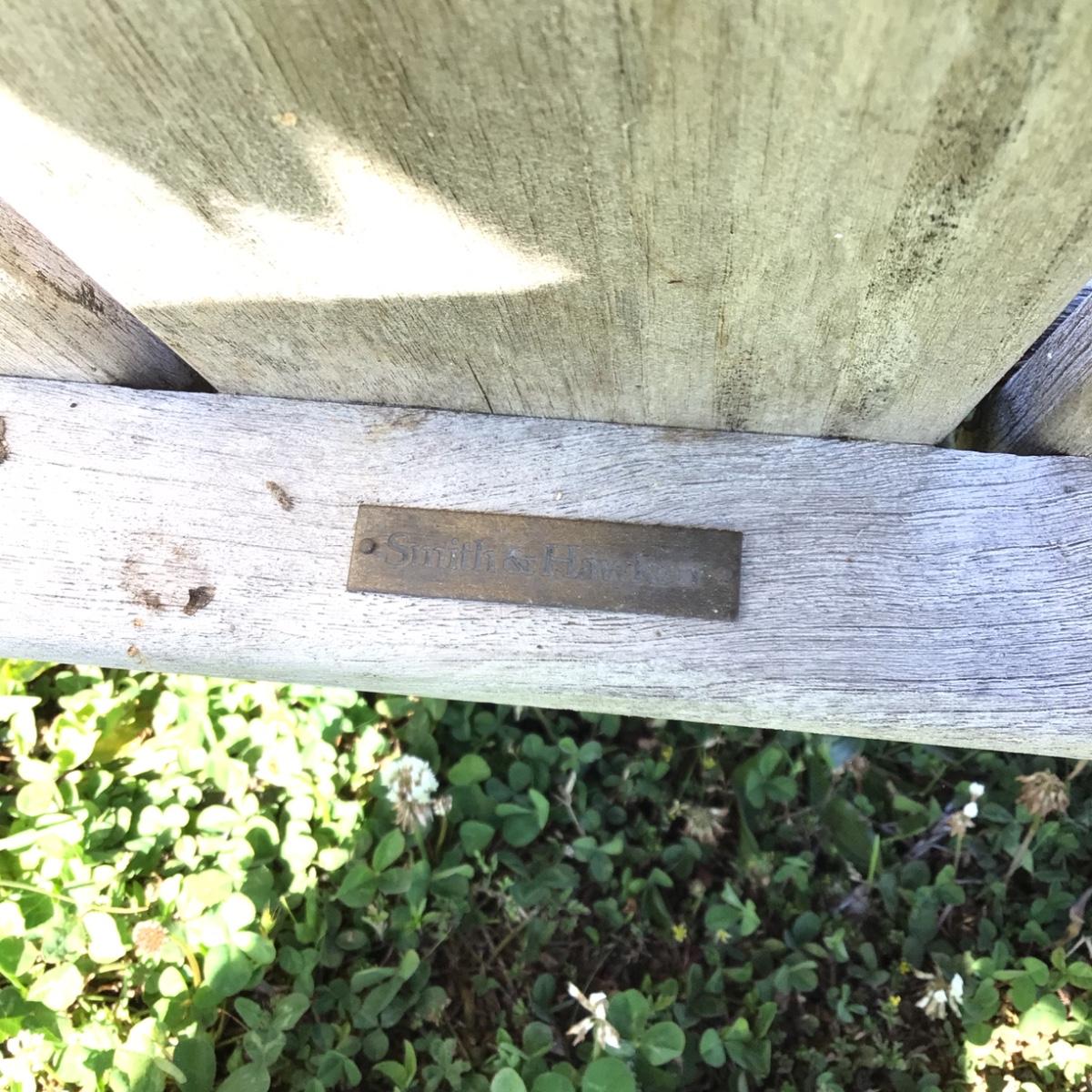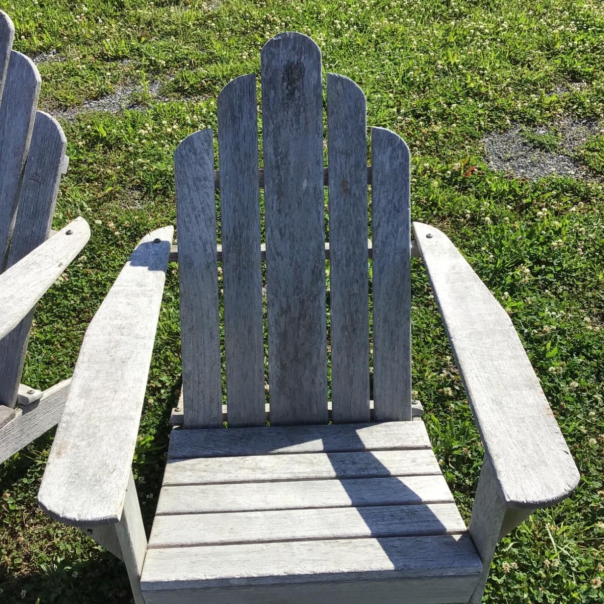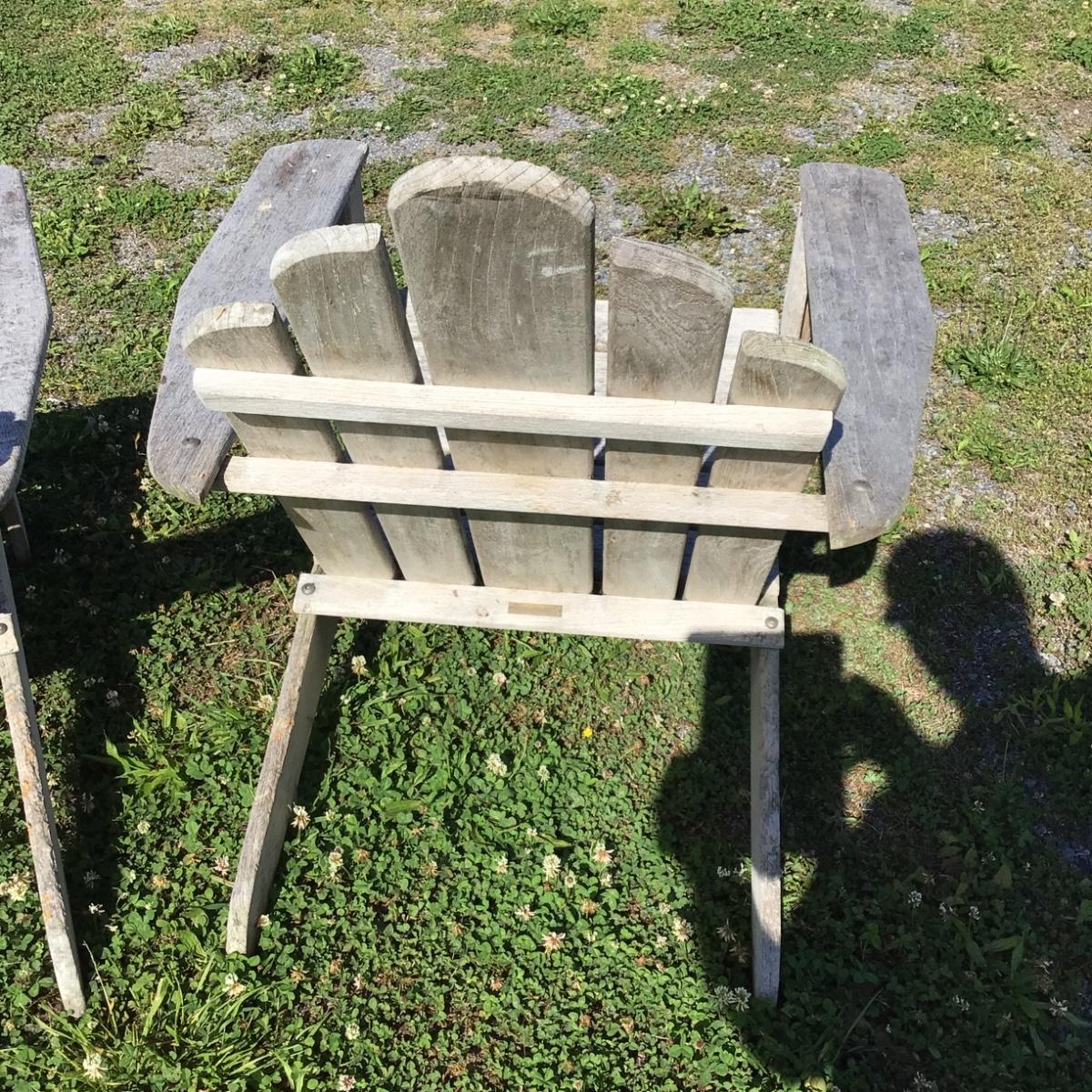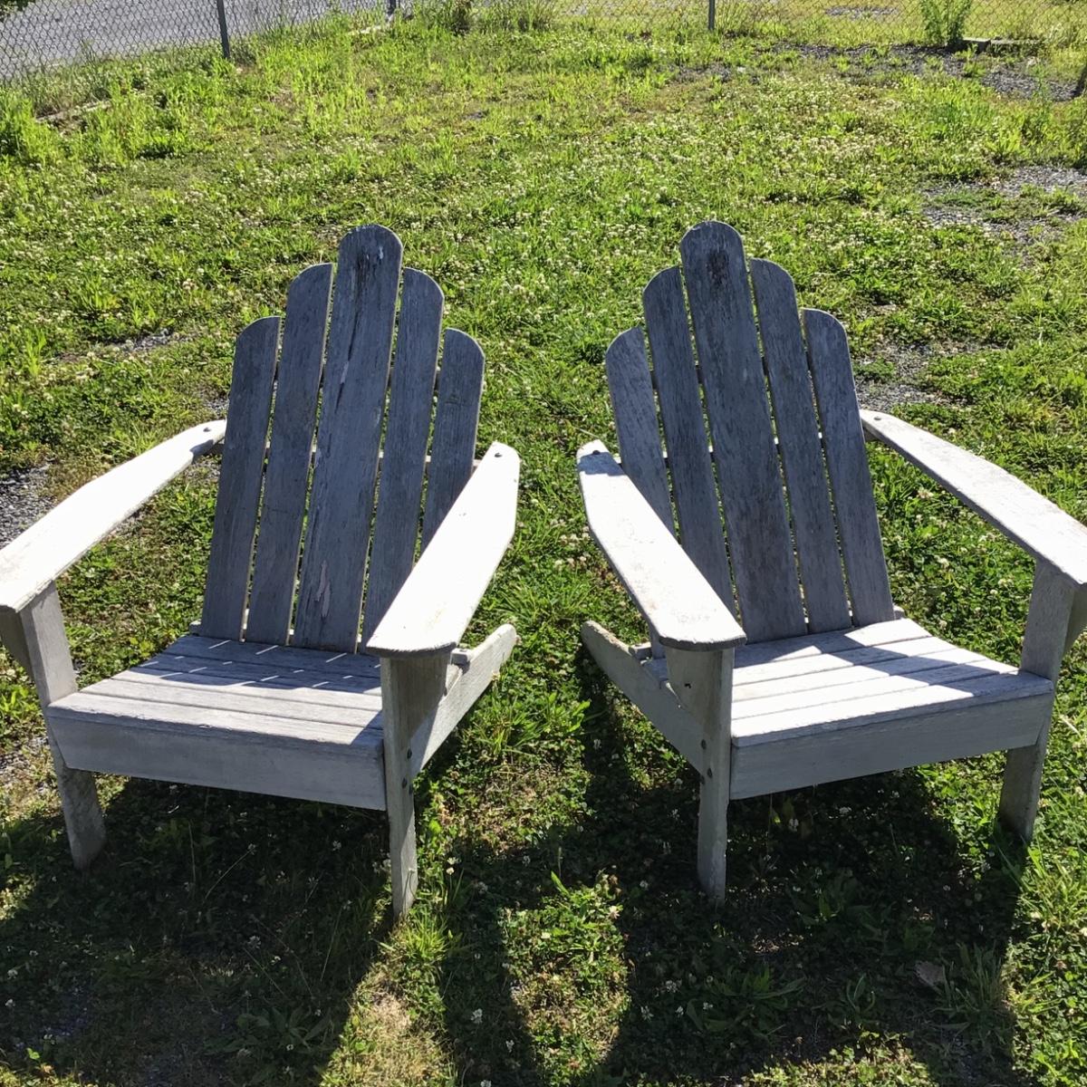 Pair of Teak Adirondack Chairs by Smith & Hawken. Overall good condition, no wood rot. Back legs have some wood chipping from use. 31.5”W x 13”Seat Height x 18”Seat Depth x 36” Back Seat Height