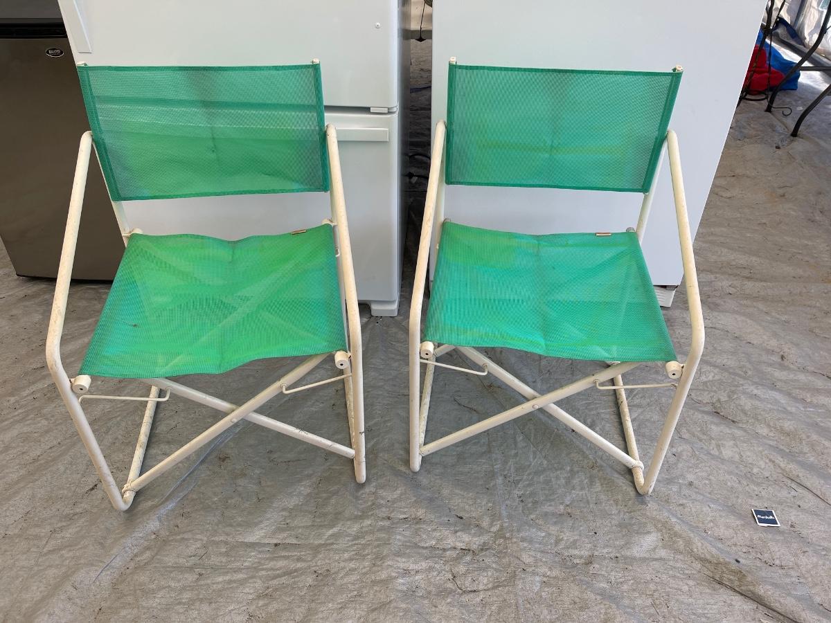 981 Pair of Vintage Brown Jordan Folding Outdoor Chairs