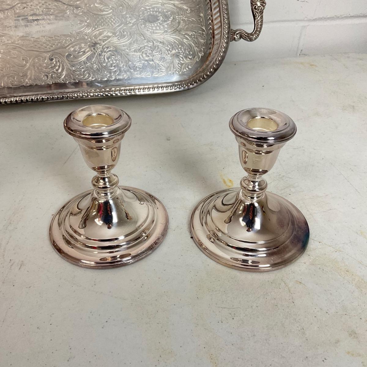 981 Plated Footed Tray with Plated Goblets and Gorham Candlessticks