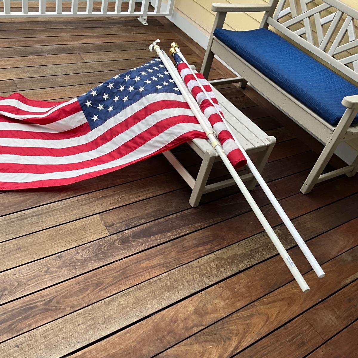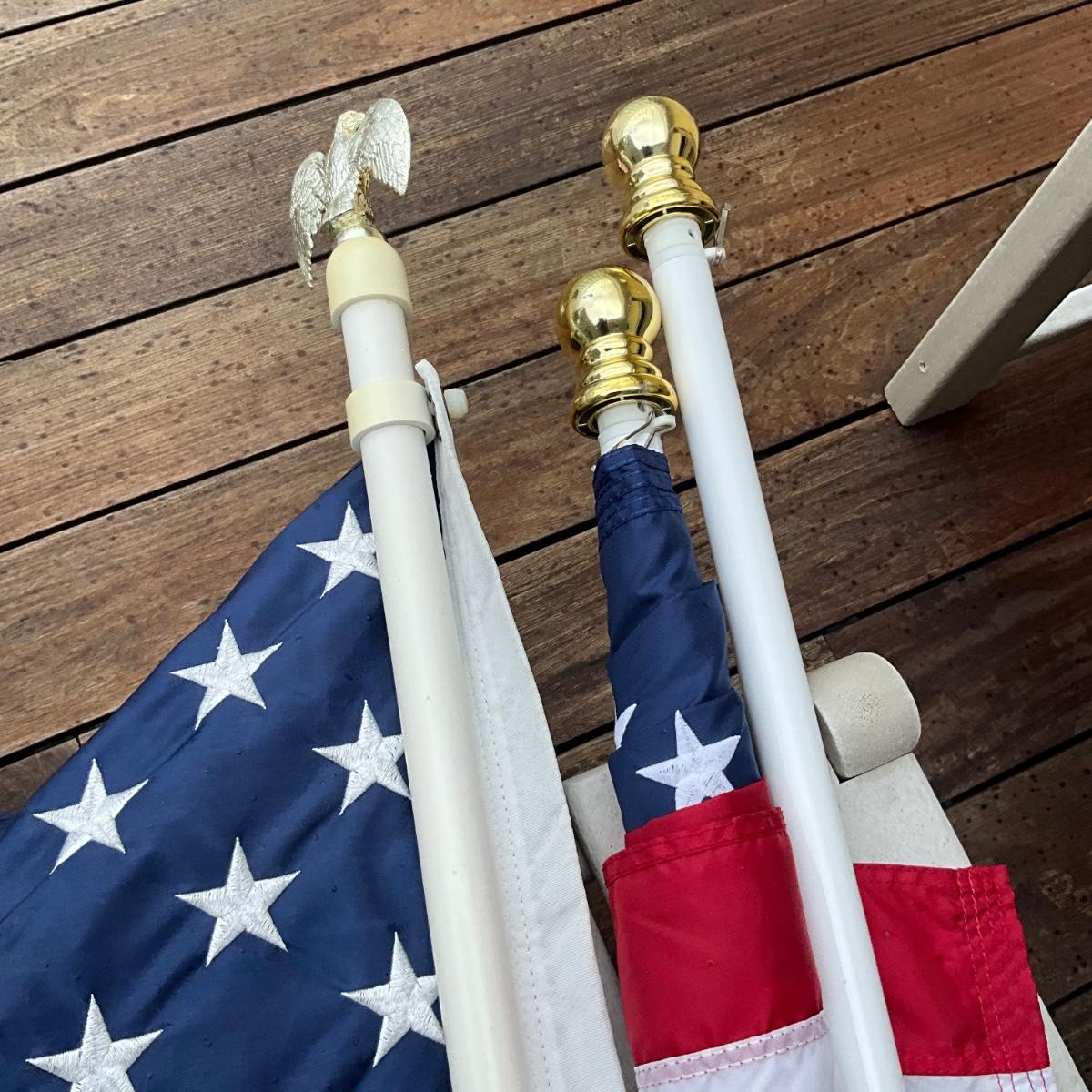982 Set of Two 5' x 3' Nylon American Flags with 6' Poles