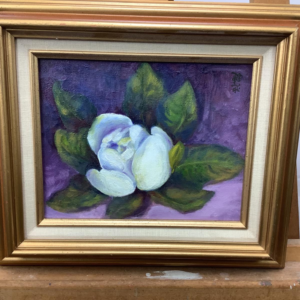 983 Original Acrylic Signed White Lotus Painting by Betty Huang