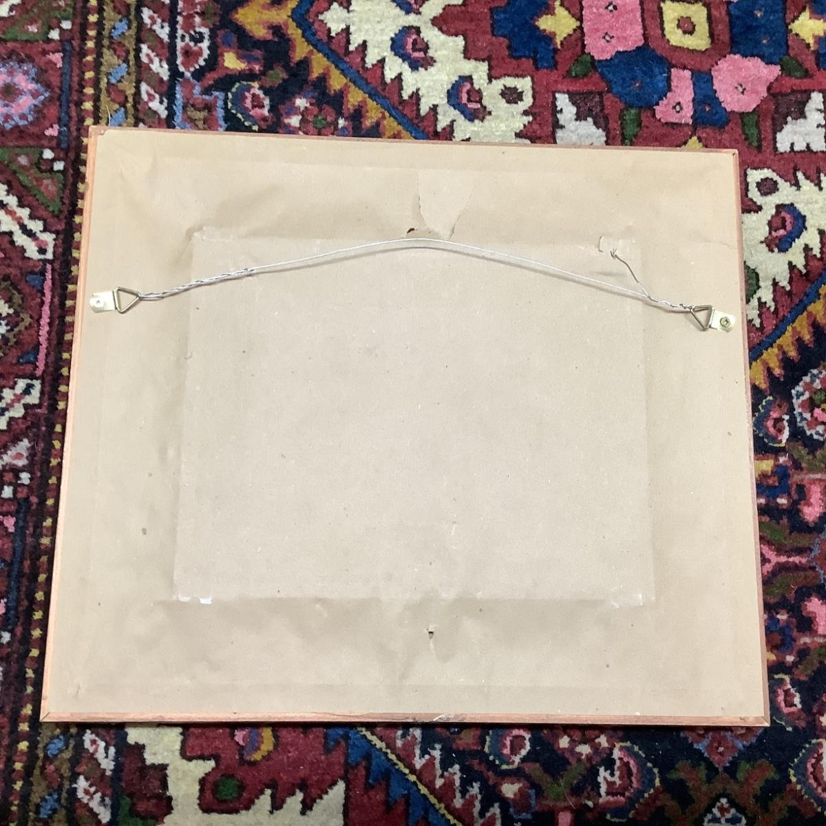 The painting is acrylic framed and signed by the artist Betty Huang in characters. It measures 15" wide x 12.5" high including frame.