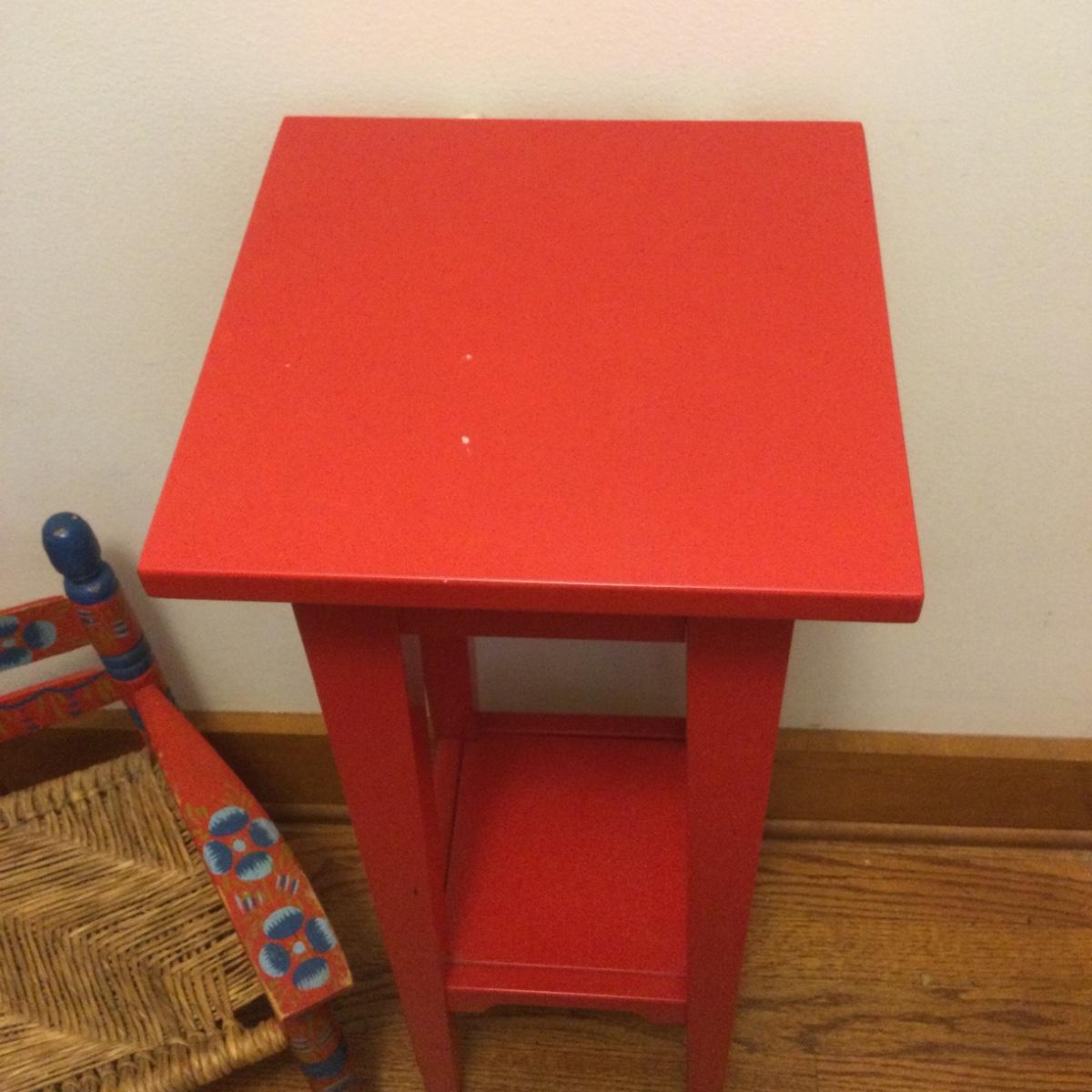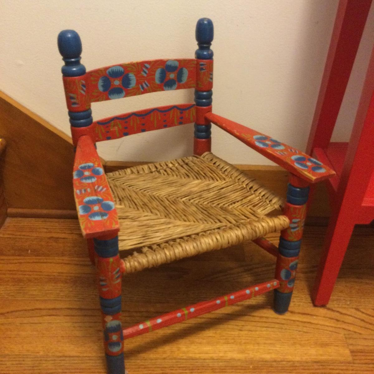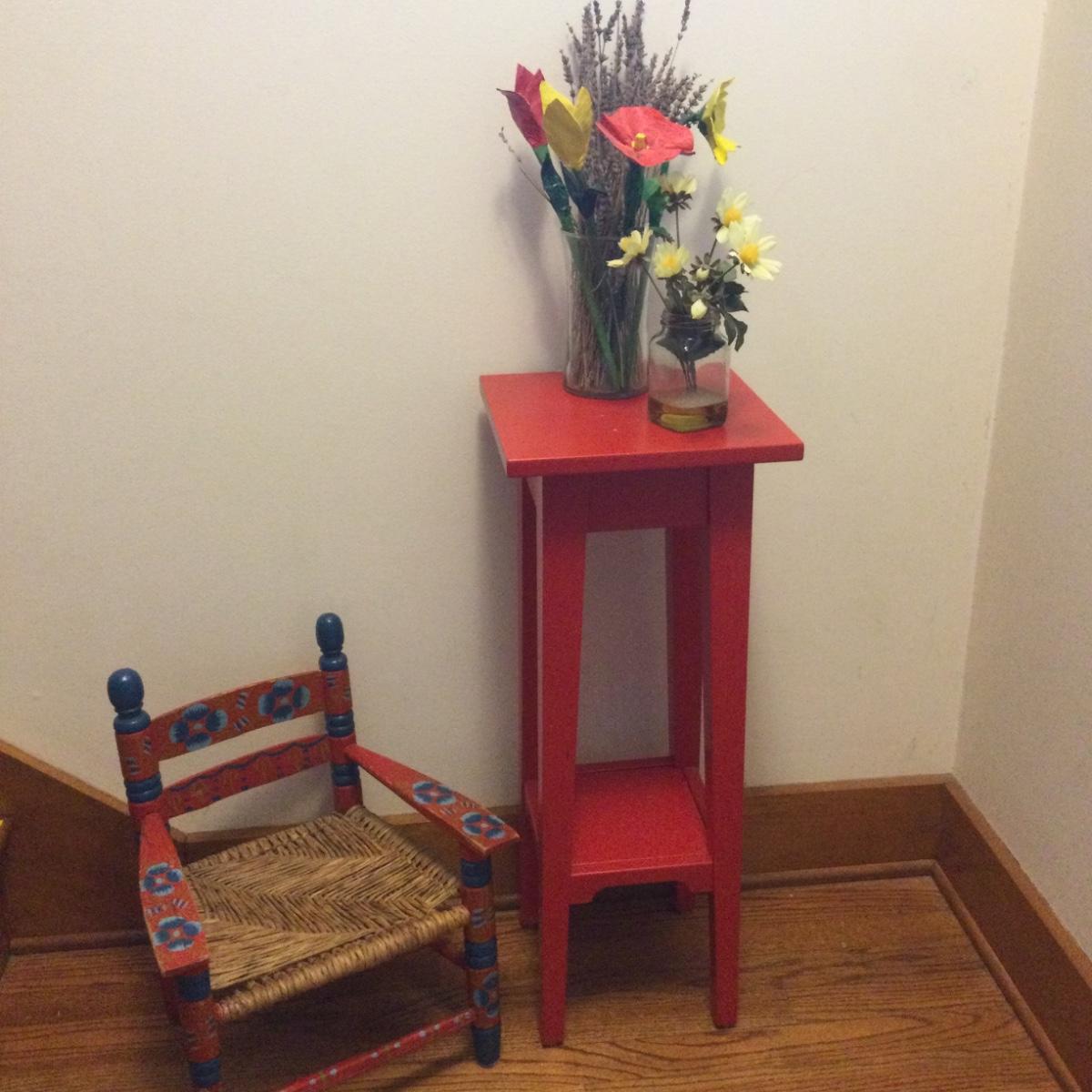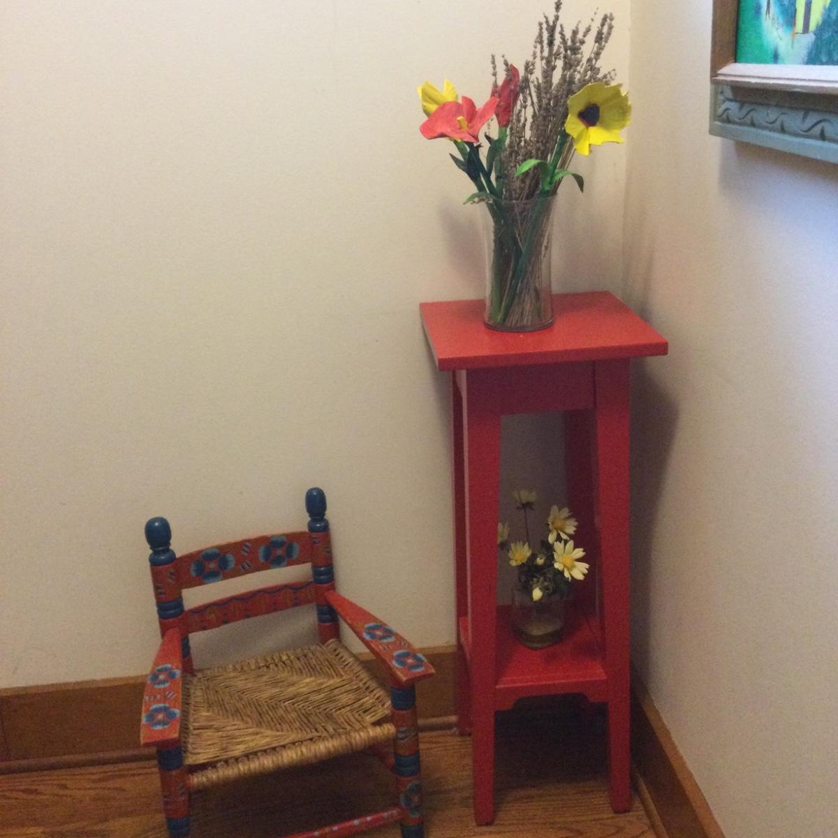 983 Folk Art Child’s Chair & Red Plant Stand