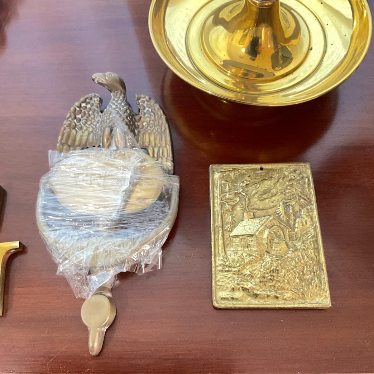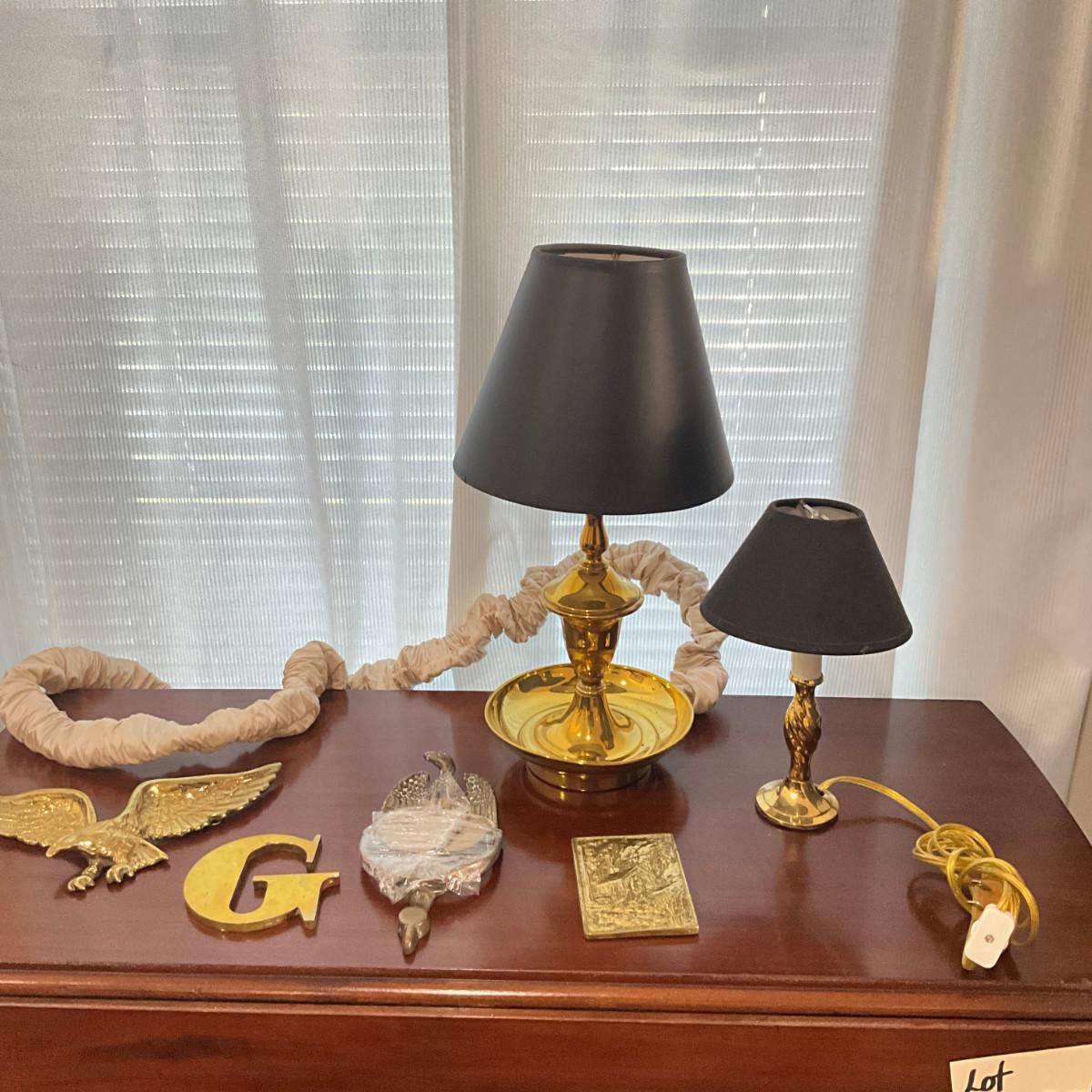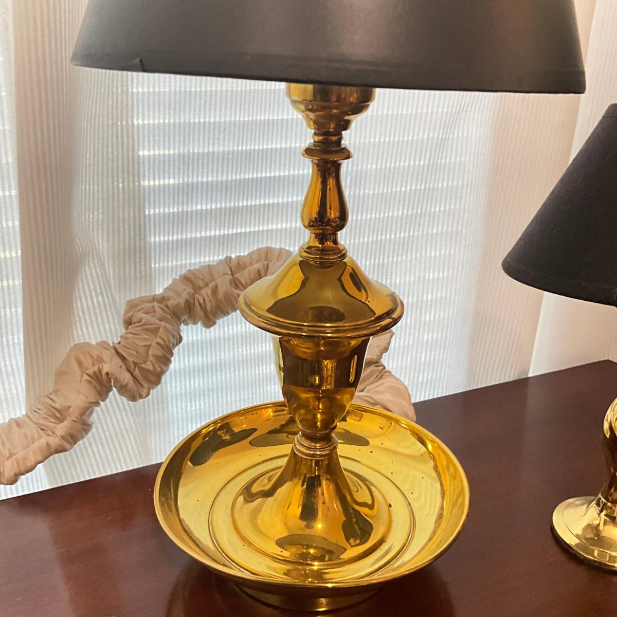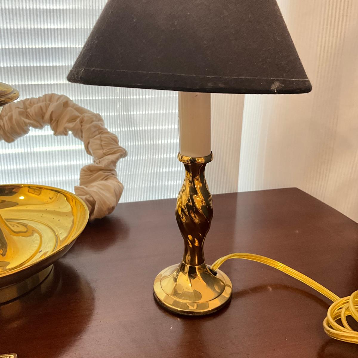 984 Two Small Brass Candlestick Lamps With Brass Wall Plaques
