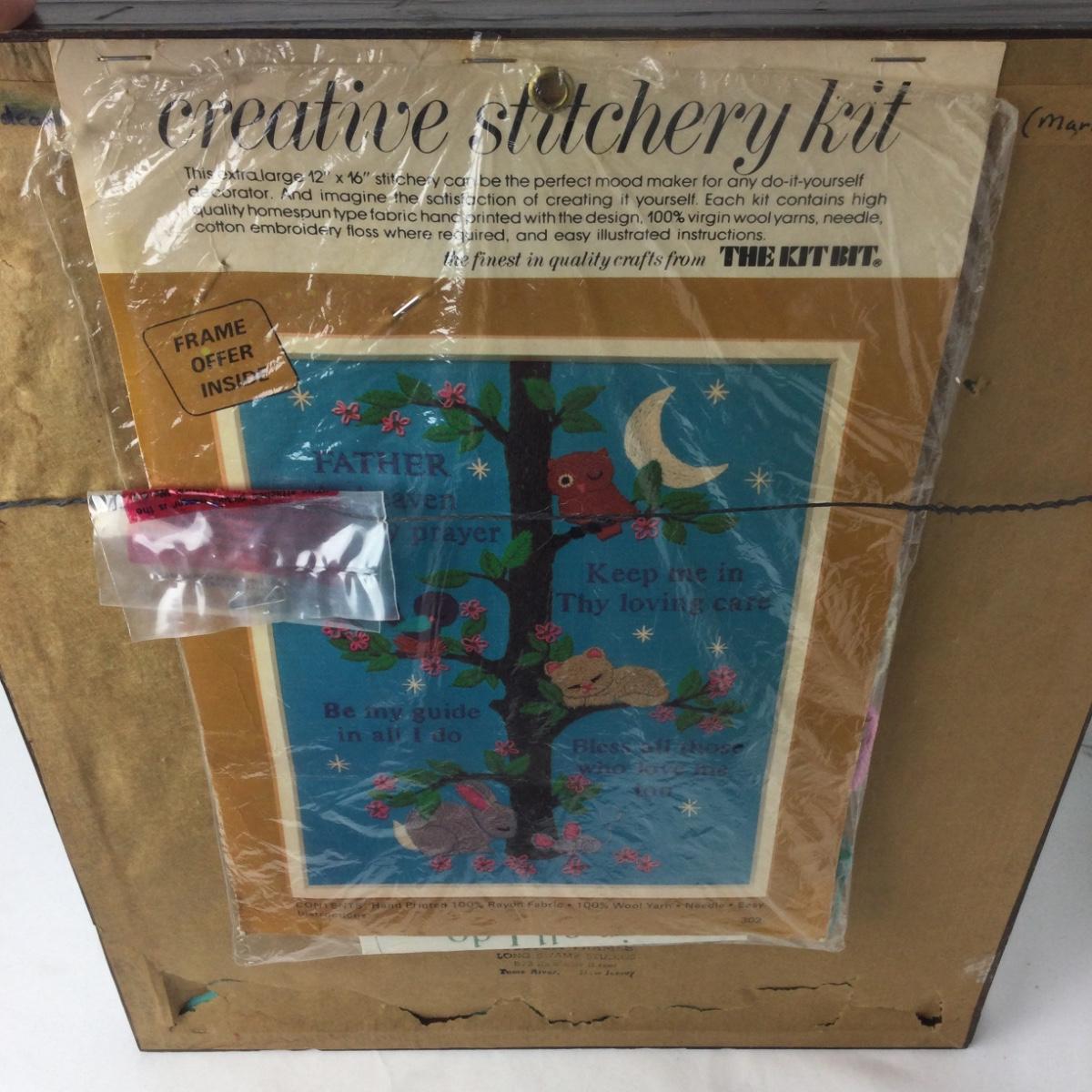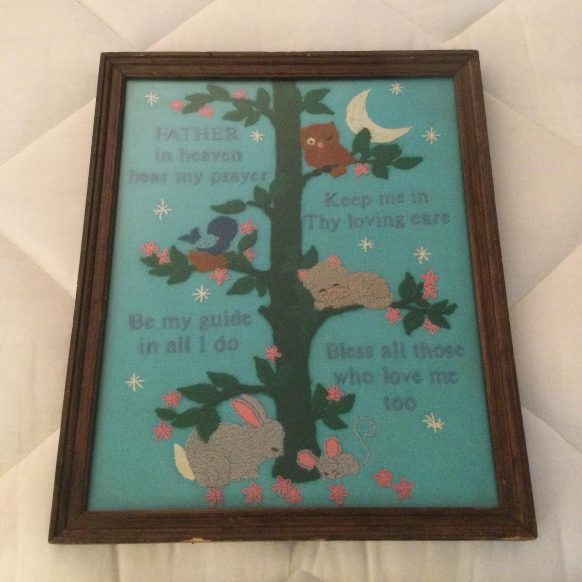 984 Vintage Crewel Stitched Framed Prayer 16” x 13”