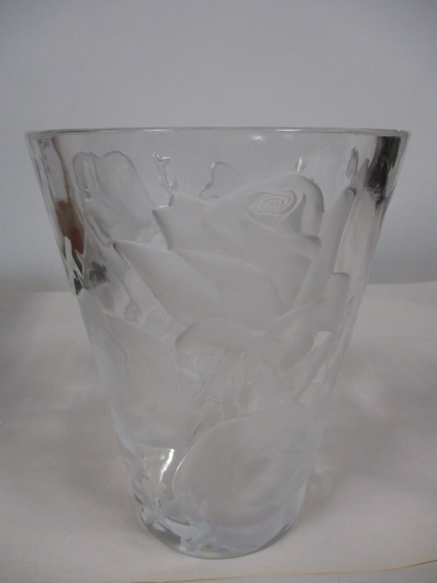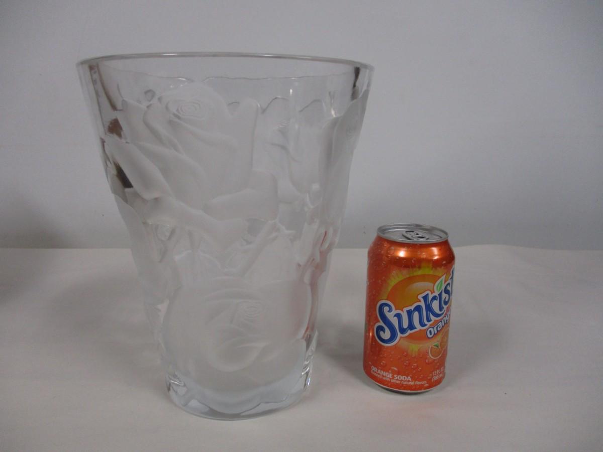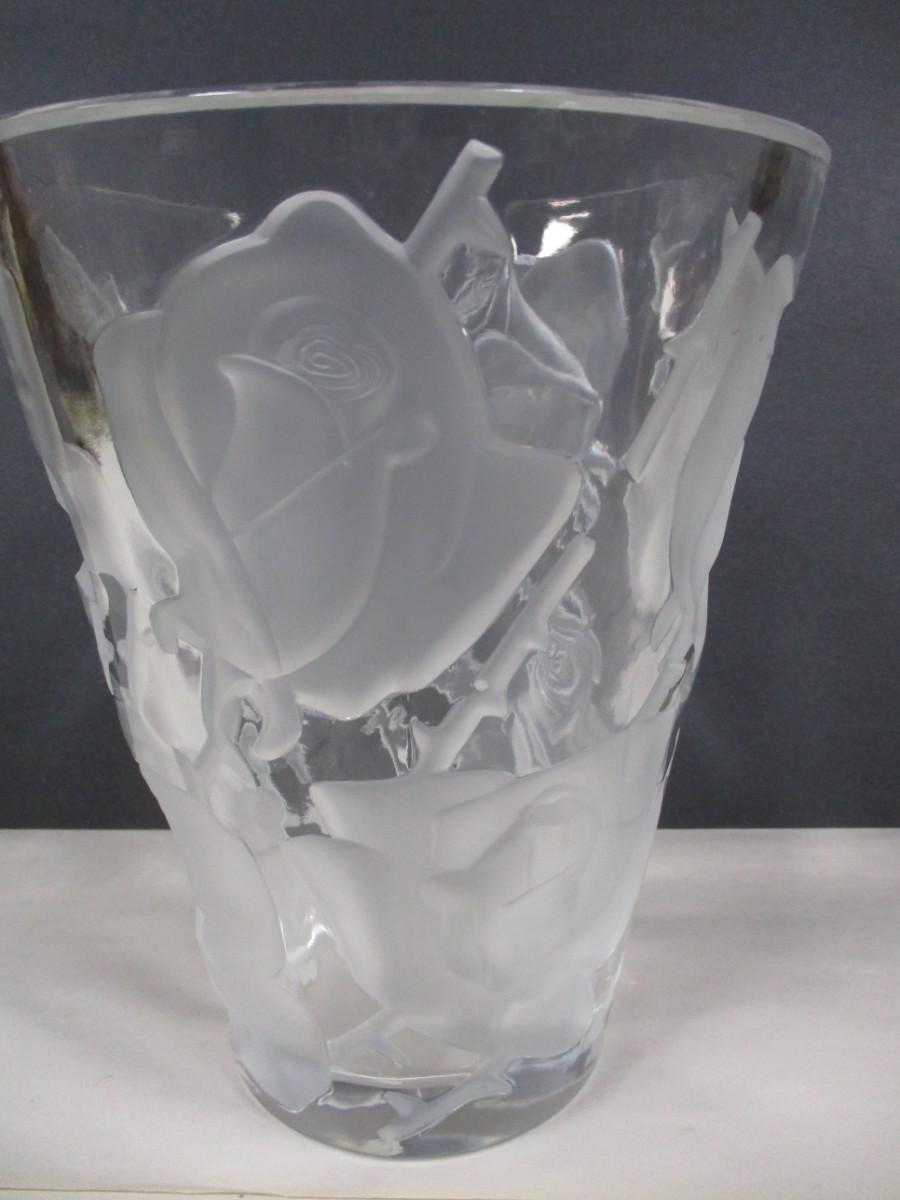 Lalique Ispahan w/ Etched & Frosted Roses Large Crystal Vase #12239