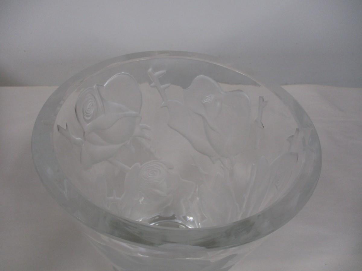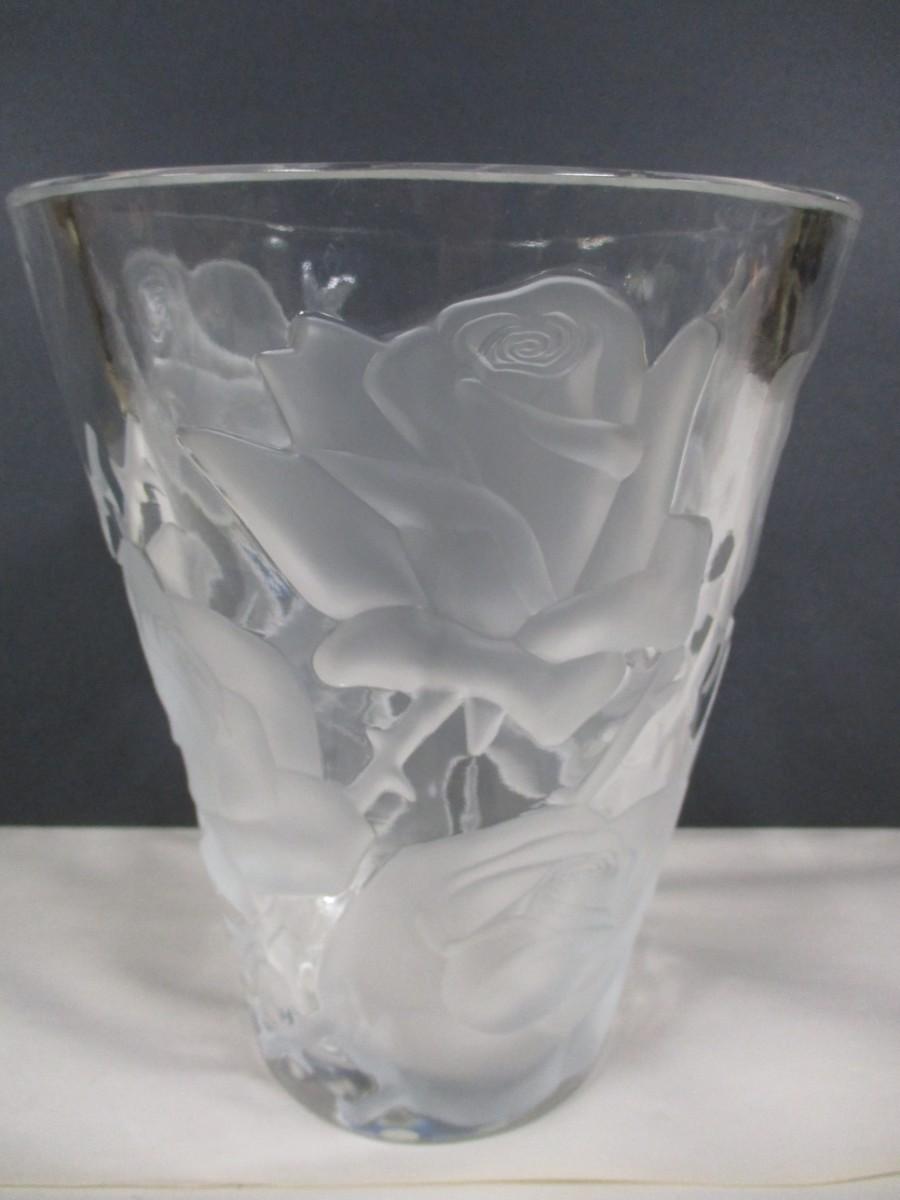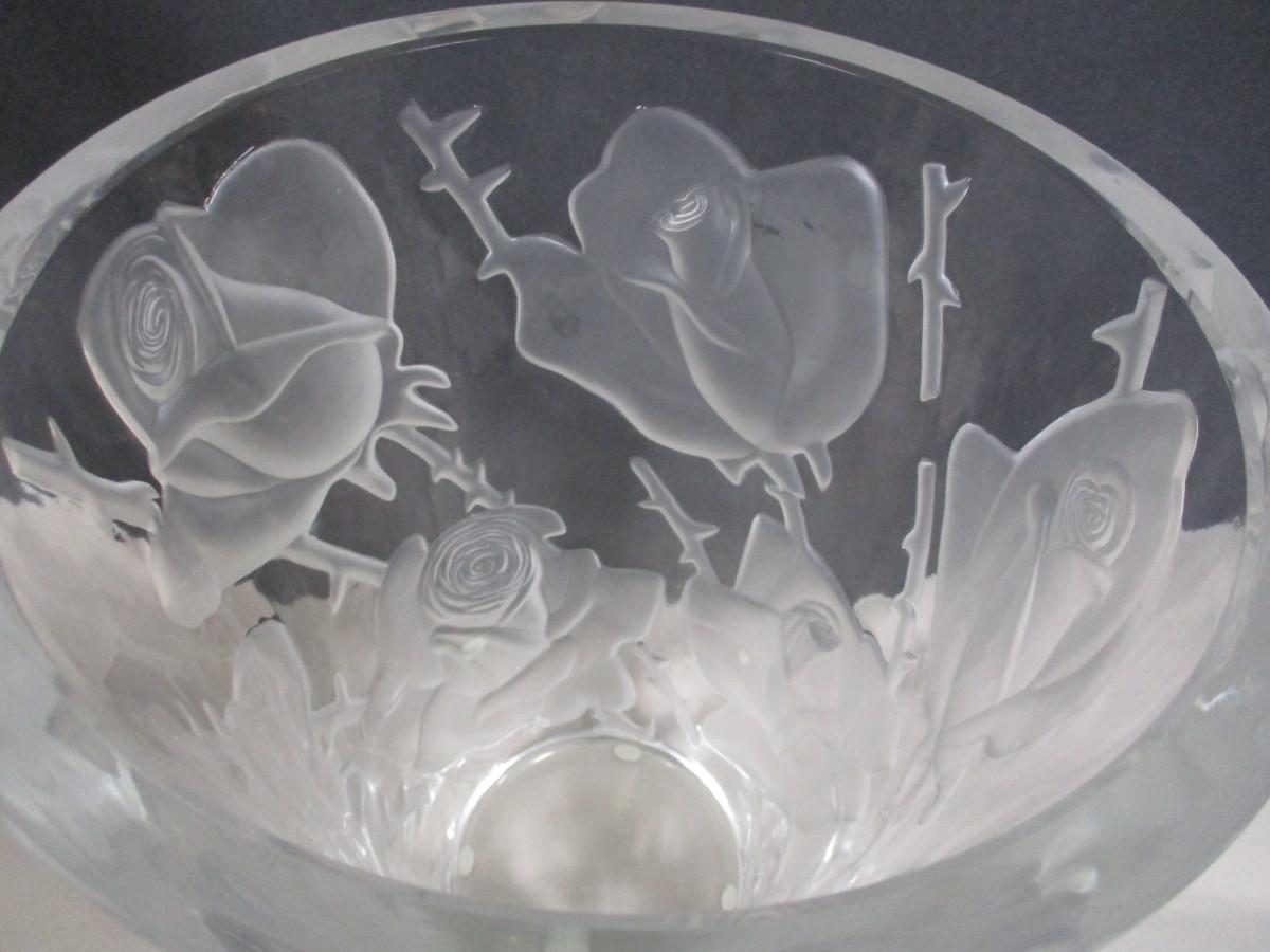 Lalique Ispahan w/ Etched & Frosted Roses Large Crystal Vase #12239