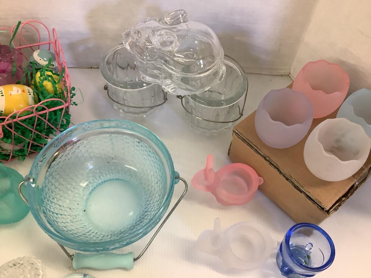 986 Lot of Glass Easter Bunny Egg Cups, Votives, Basket and more