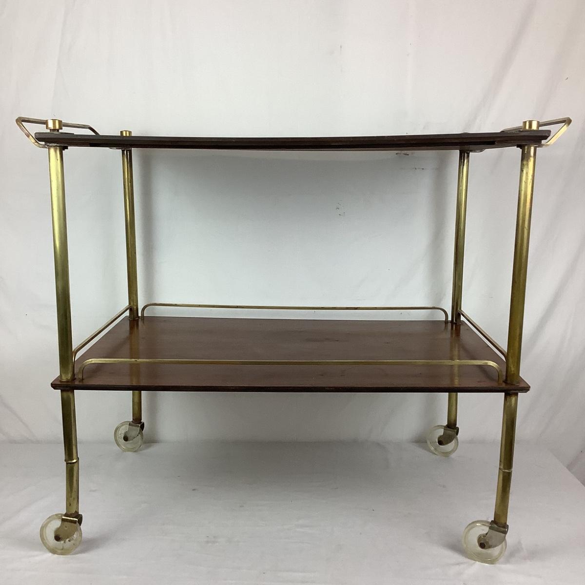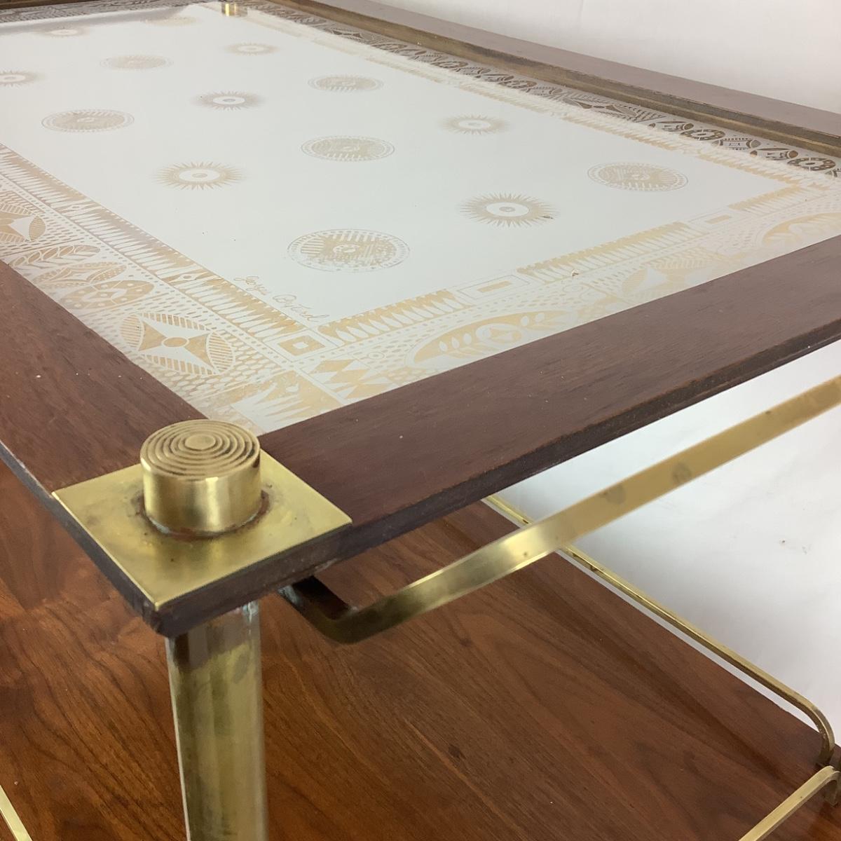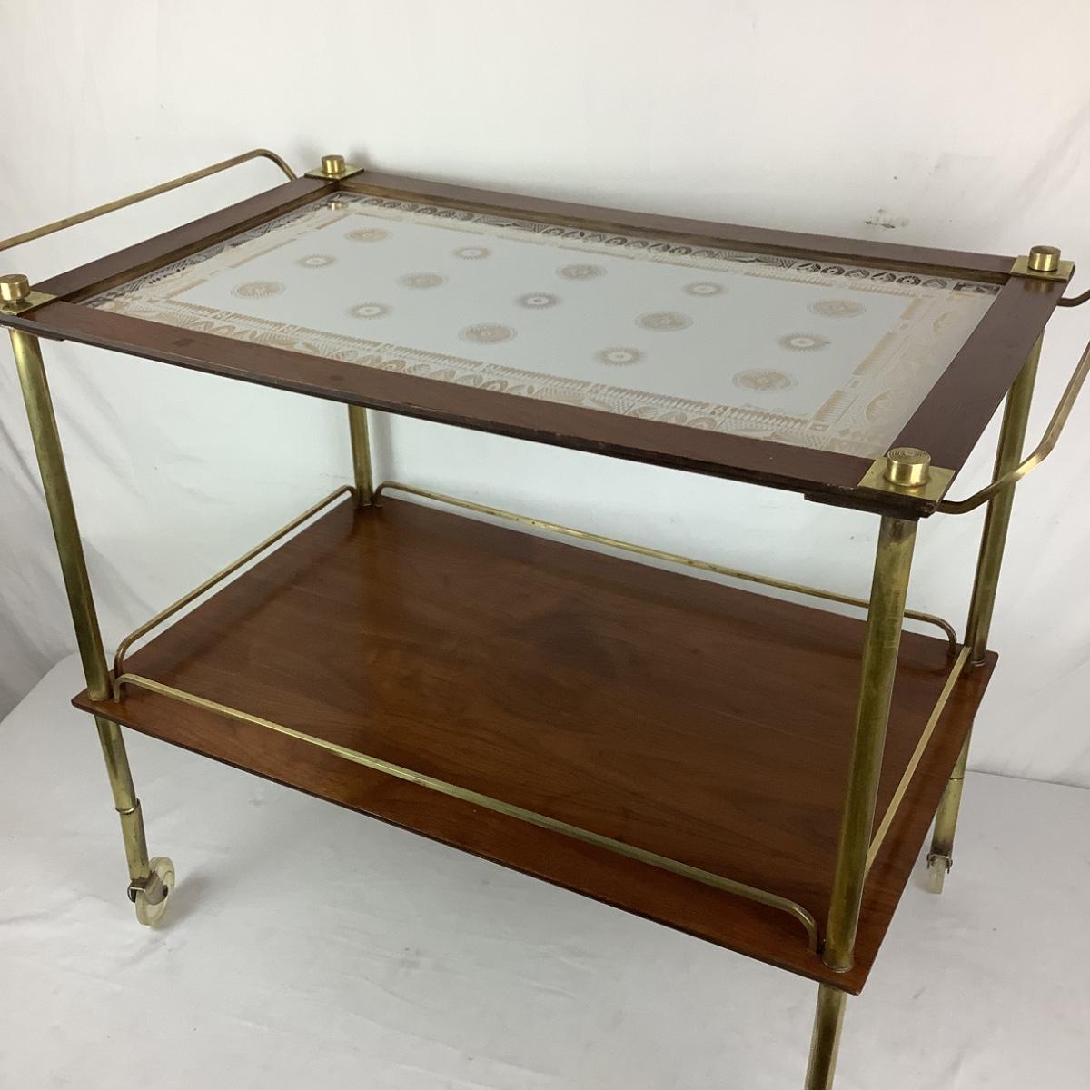 987  Georges Briard Mid-Century Wood & Brass 2-Tier Bar Cart