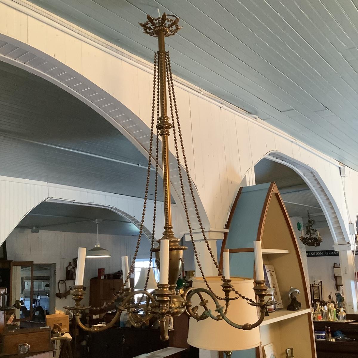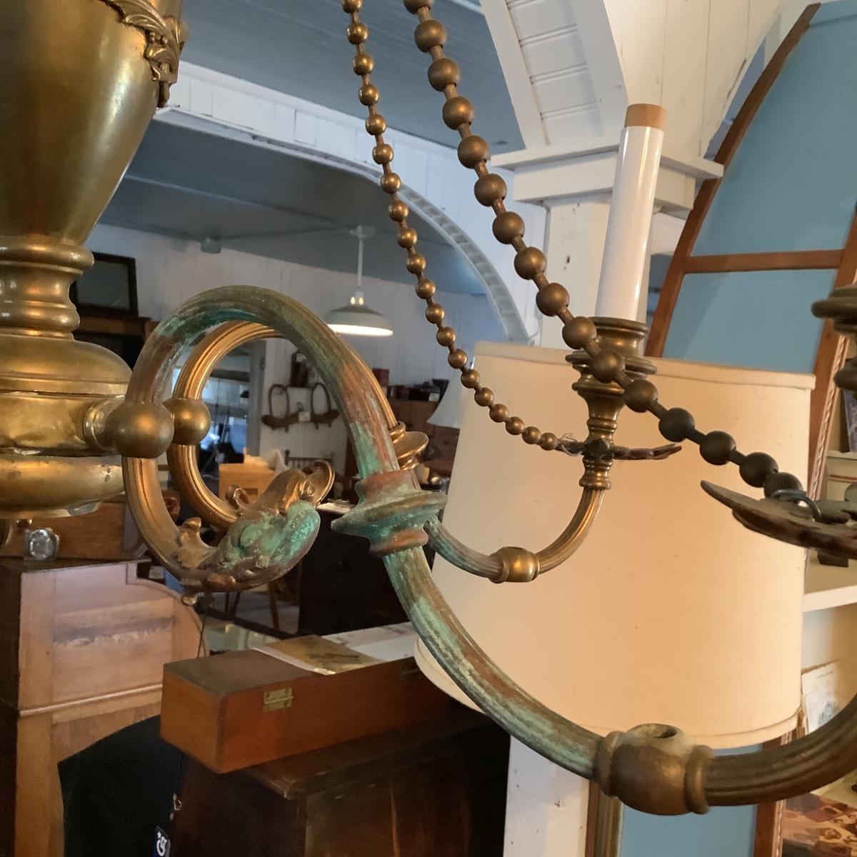 988 Antique Brass Dolphin Chandelier with 5 Lights