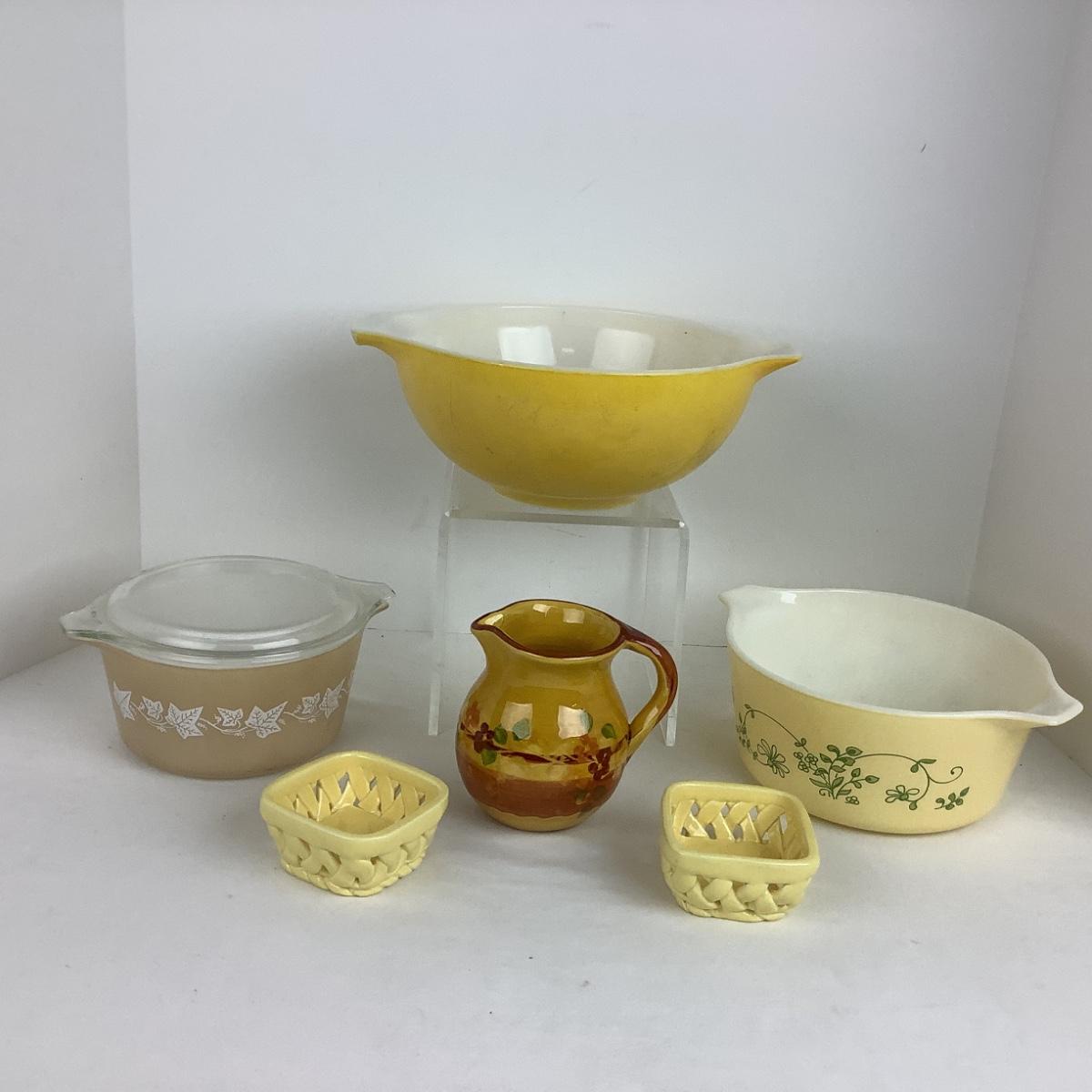 988 Vintage Pyrex Bowls , Woven Dishes and Floral Ceramics