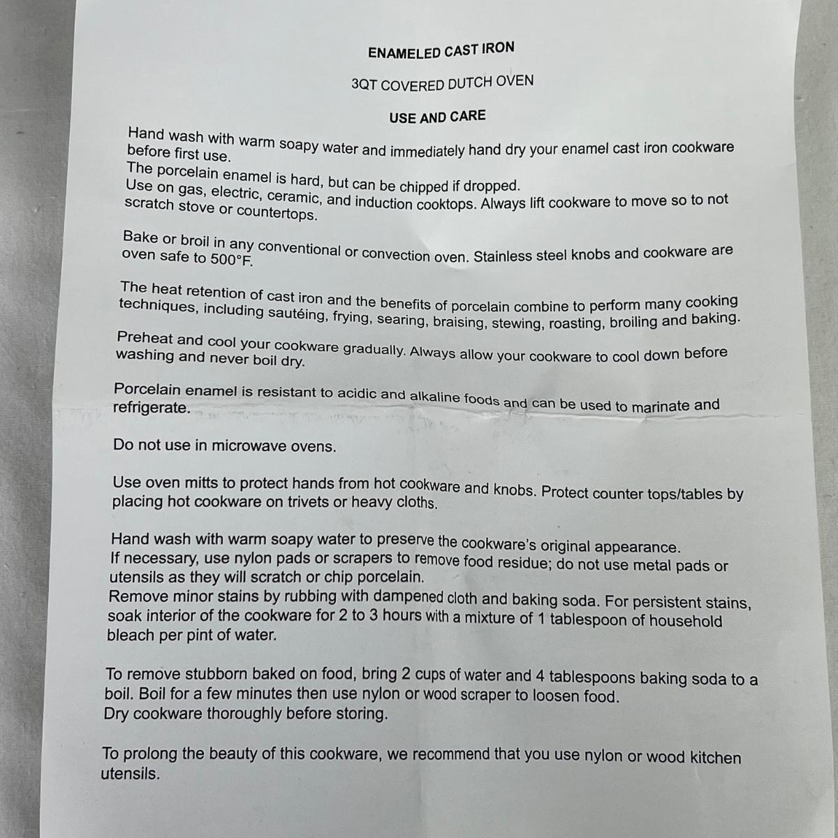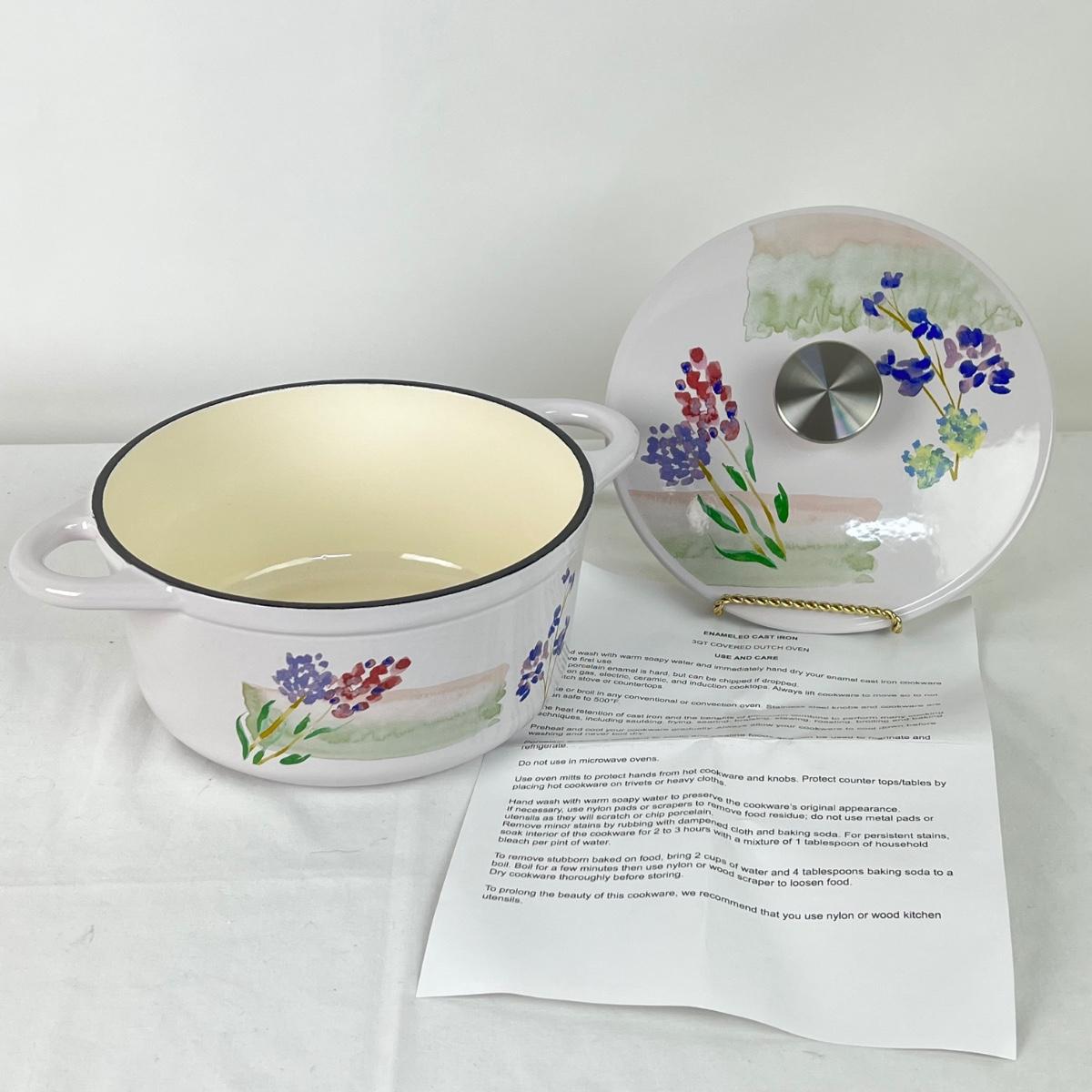 989 New Lavender Cottage Enamel Dutch Oven 2.7 Quart