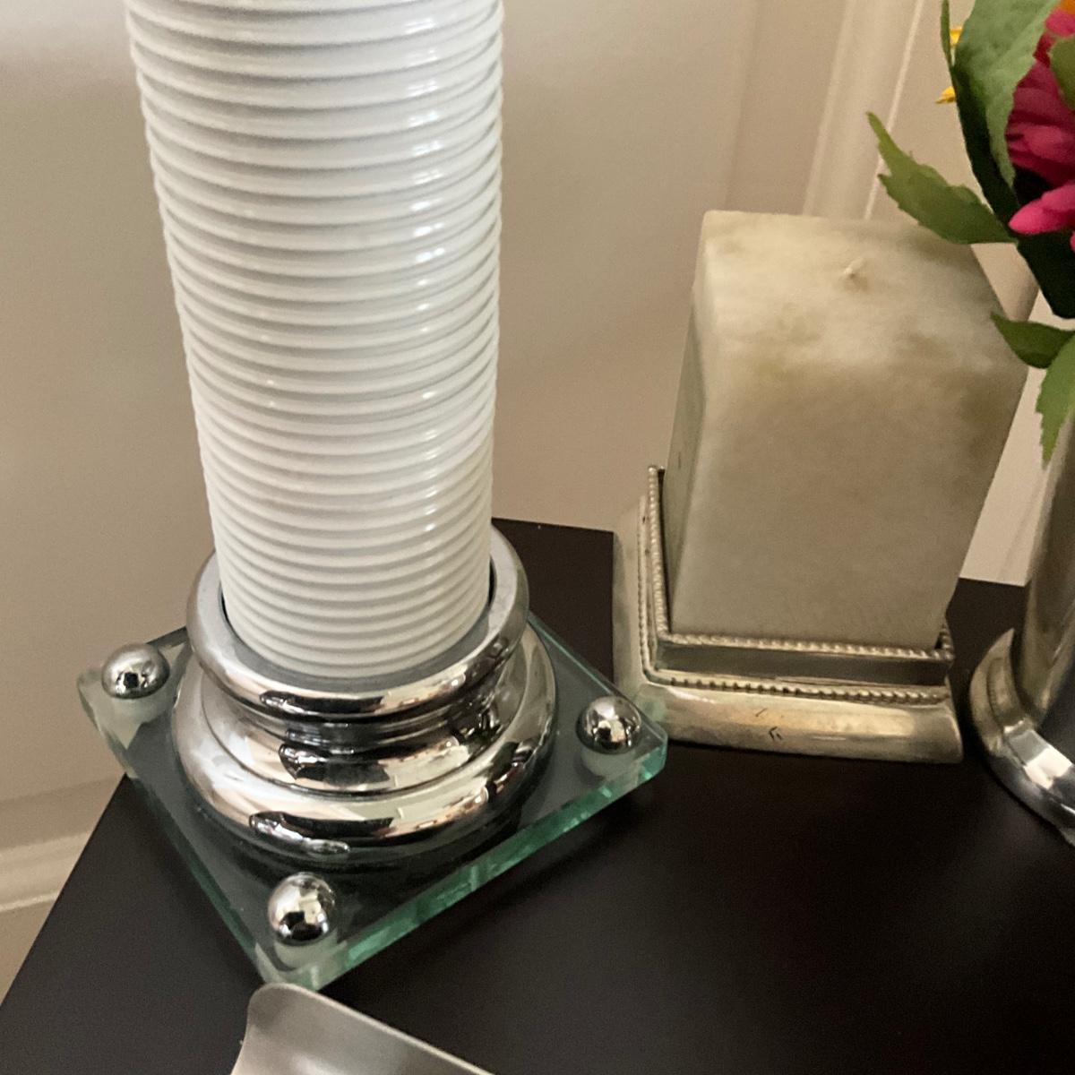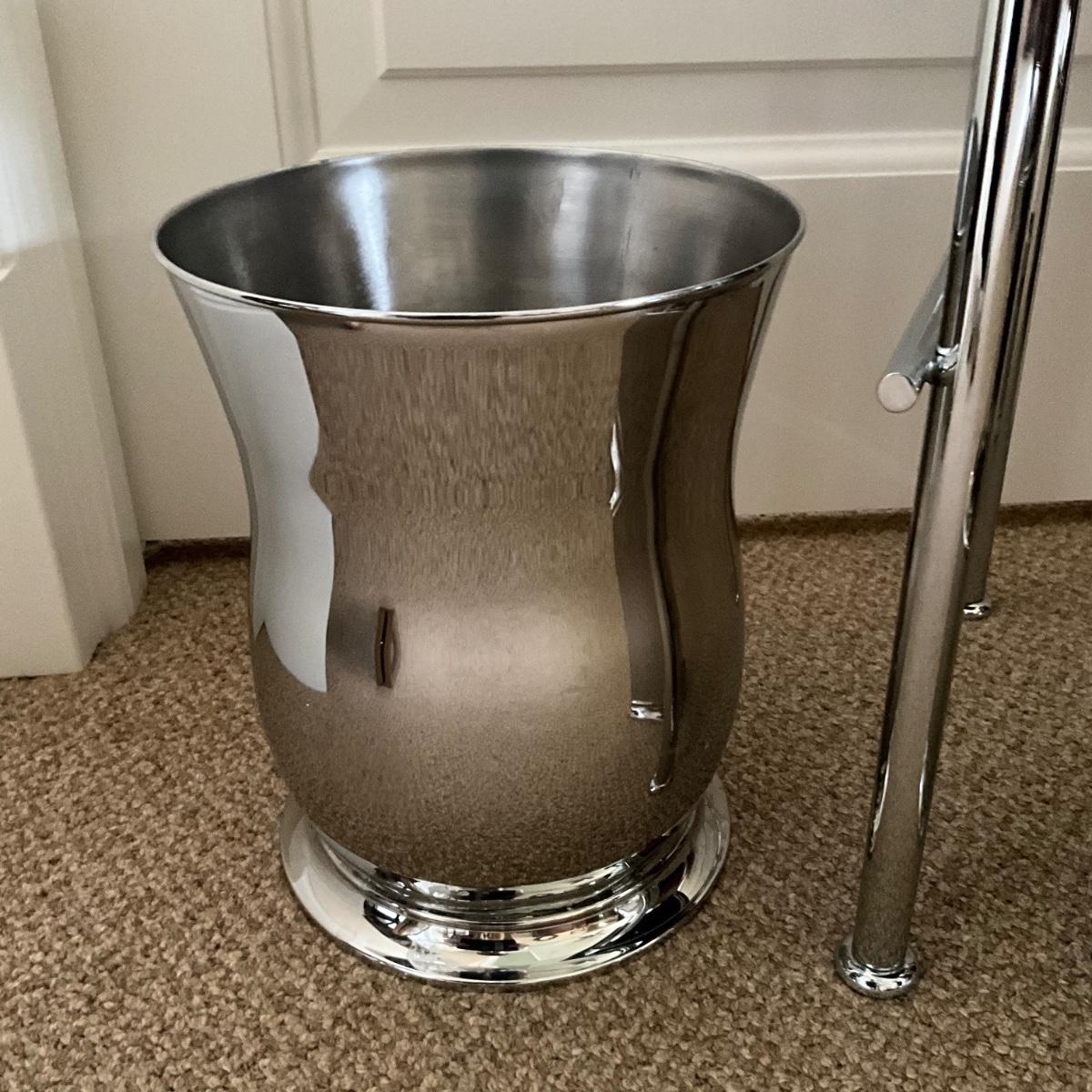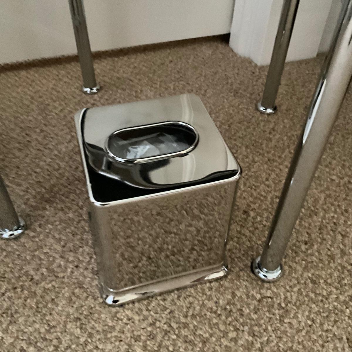 Small table with clock , cup holder, flower vase, waste can, tissue holder and decorative candle