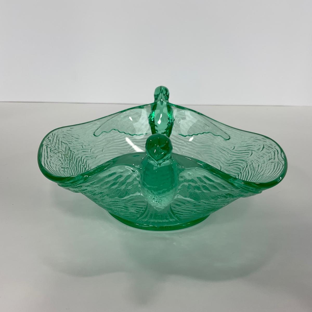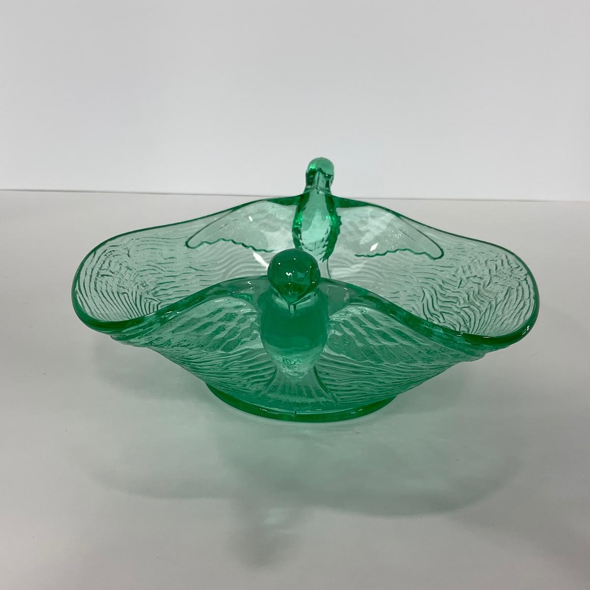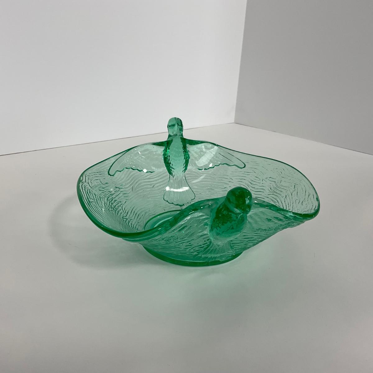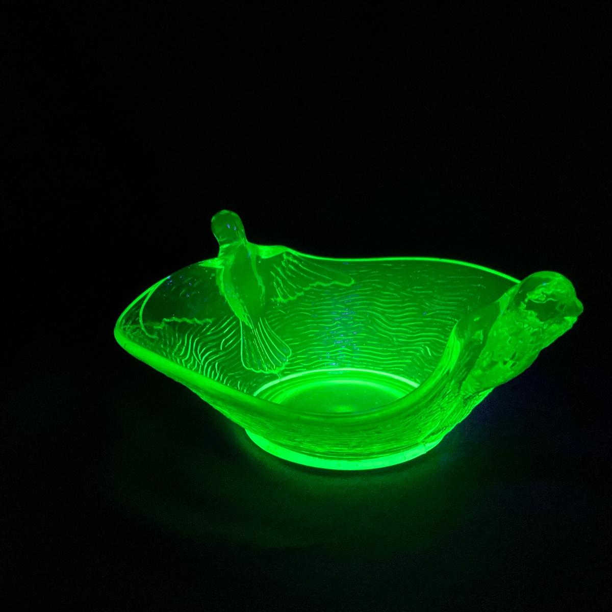 -98-URANIUM | Vaseline Glass Candy Dish With Doves