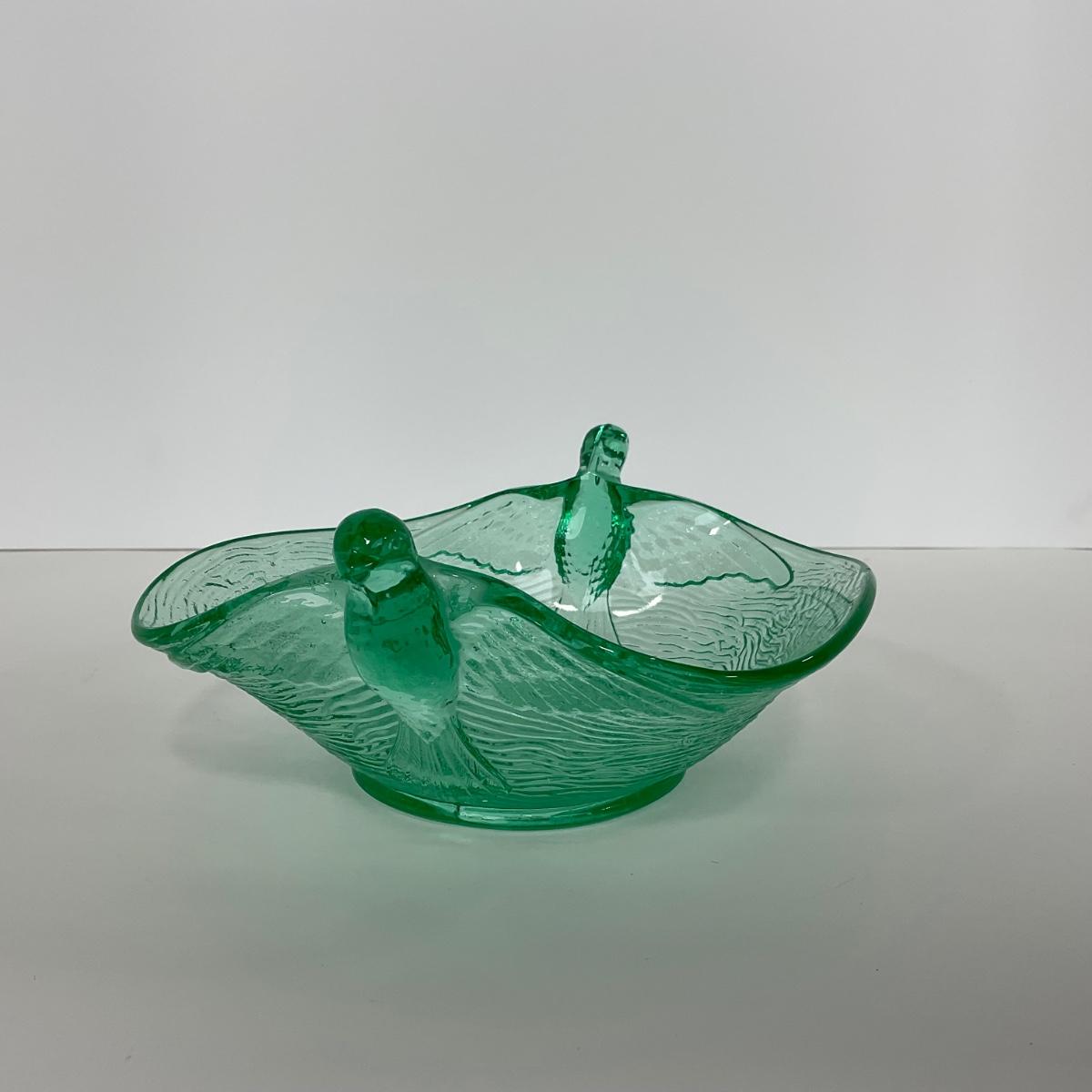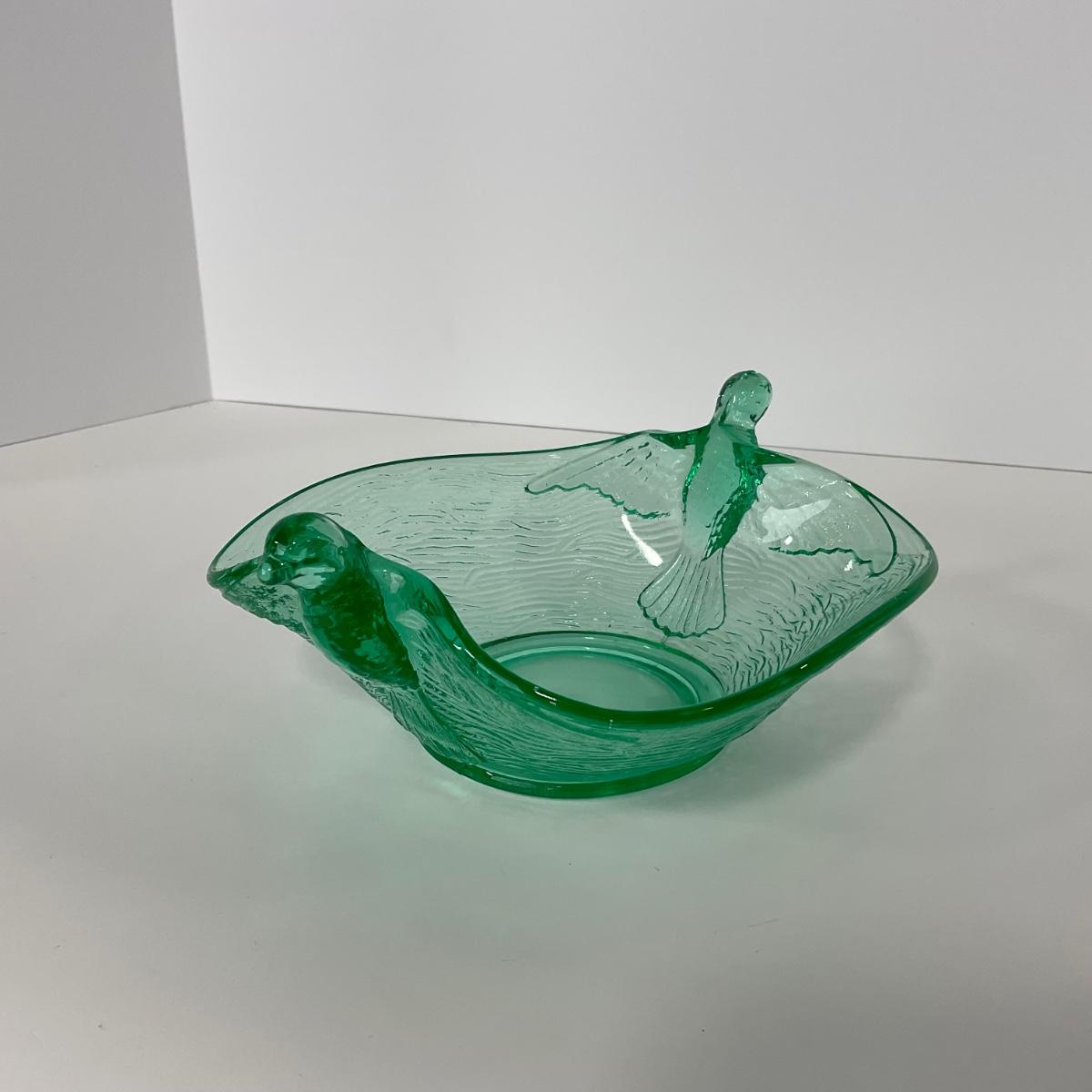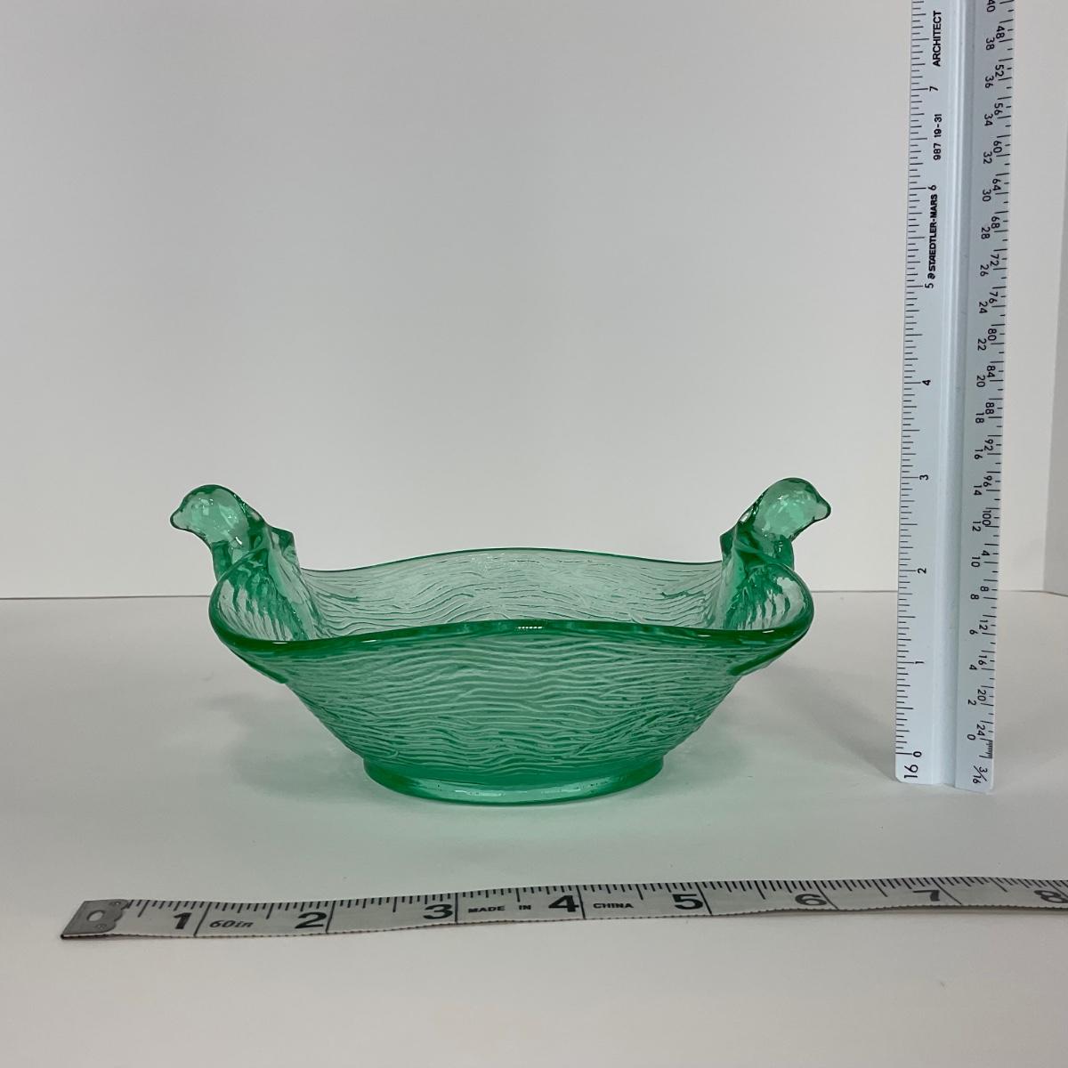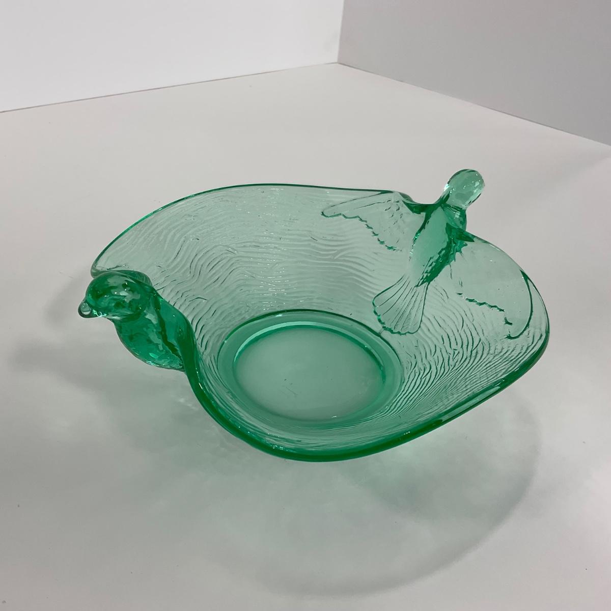 -98-URANIUM | Vaseline Glass Candy Dish With Doves