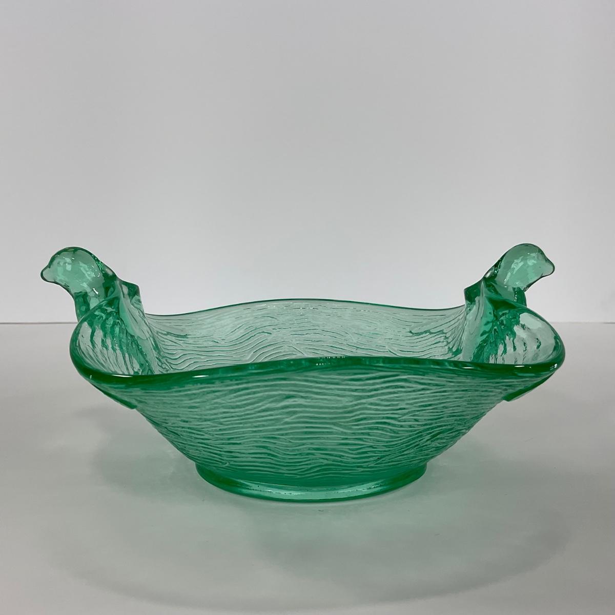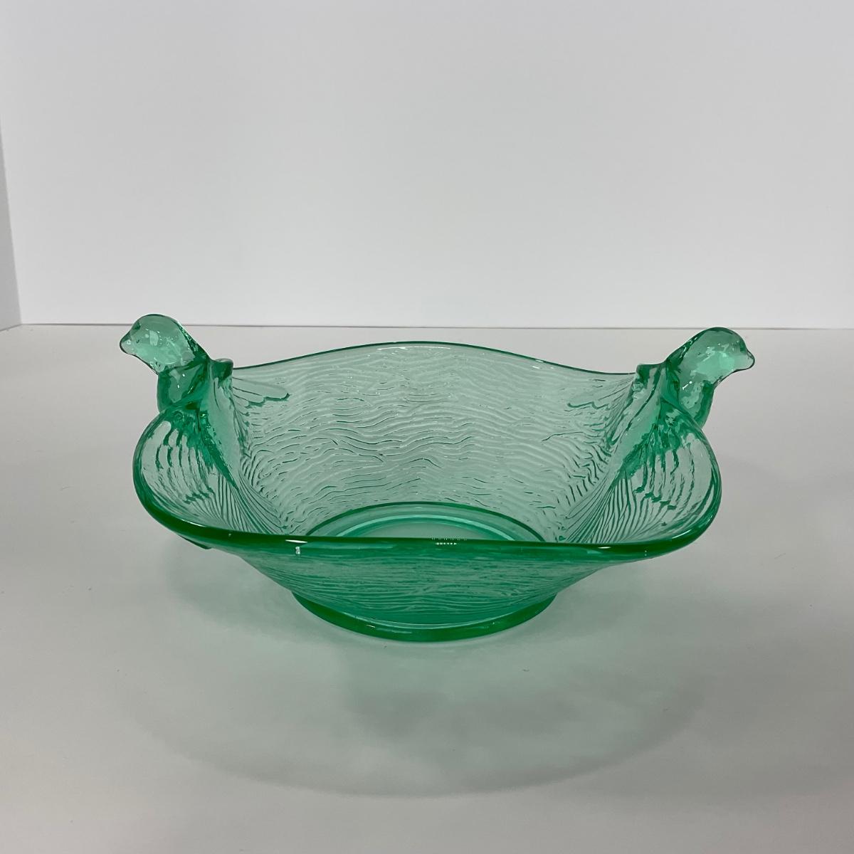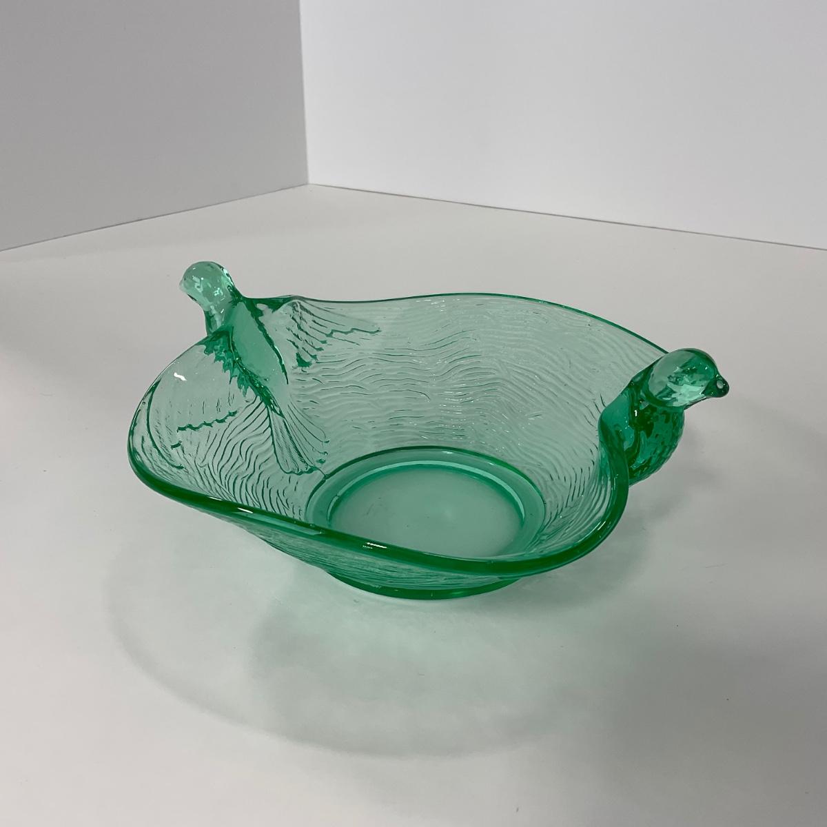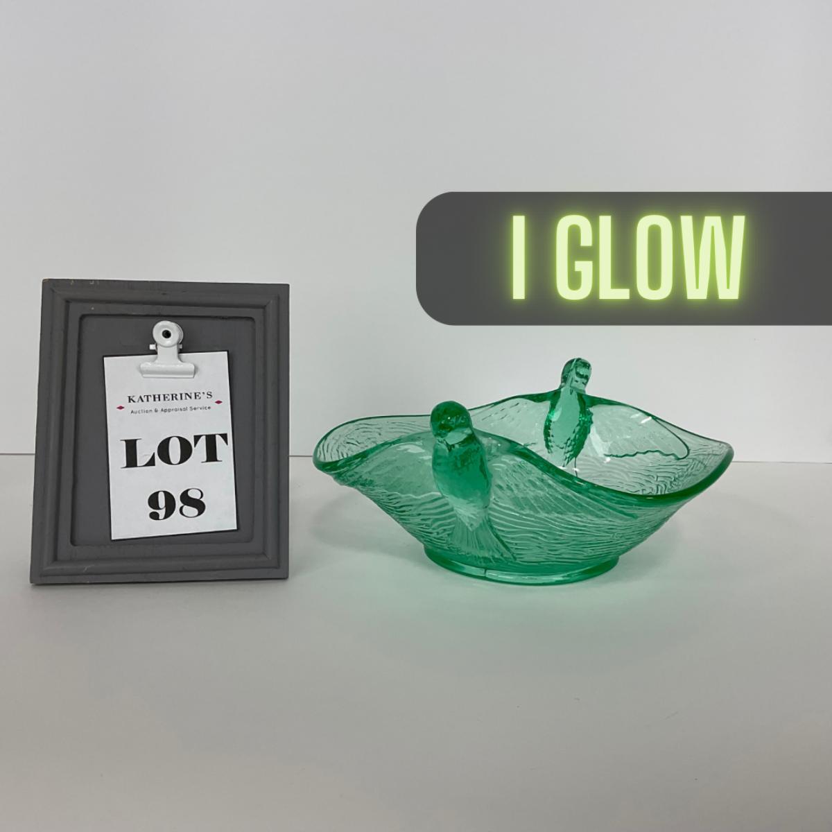 -98-URANIUM | Vaseline Glass Candy Dish With Doves