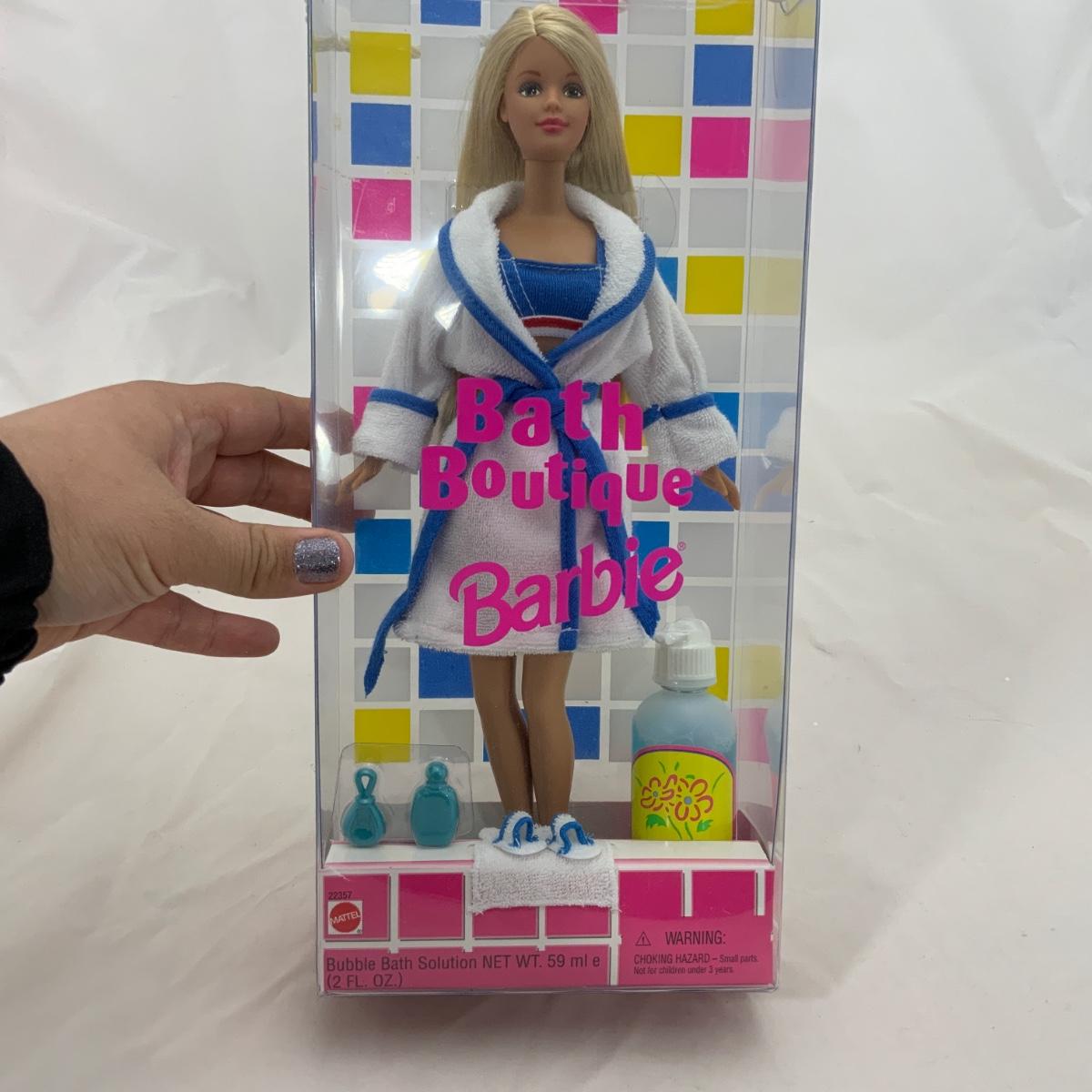 Bath Boutique Barbie, produced by Mattel in 1998. Comes with original bottle of bubble bath! Please see photos for details and condition. !!! Proceeds from this auction will be donated to the NEW COMMUNITY SHELTER in Green Bay, Wisconsin. Please see Sale Description to the Left for more information. !!! ::: Shipping is available on this lot. If you require shipping you must let us know at the close of the auction. We will coordinate with you after the item has been won. Shipping fees will include insurance up to or exceeding the value of all items being mailed. If you have any questions regarding this lot please contact the auctioneer either via this website, by direct email or by phone. PICK UP TIMES and other important information can be found in the TERMS and DESCRIPTION of the auction. Please take a look for pertinent information. Thanks!