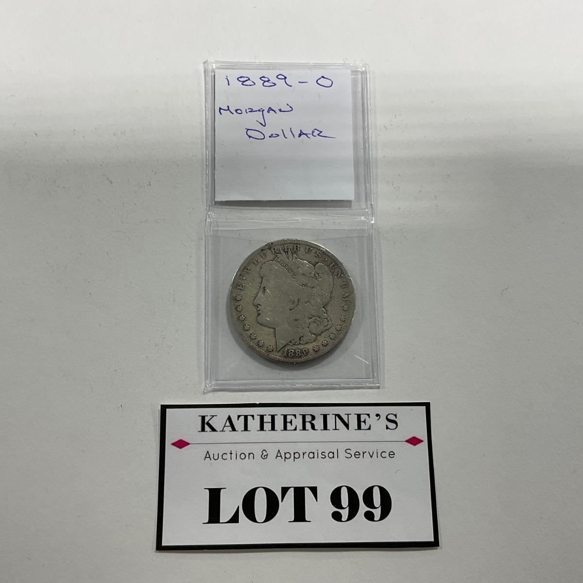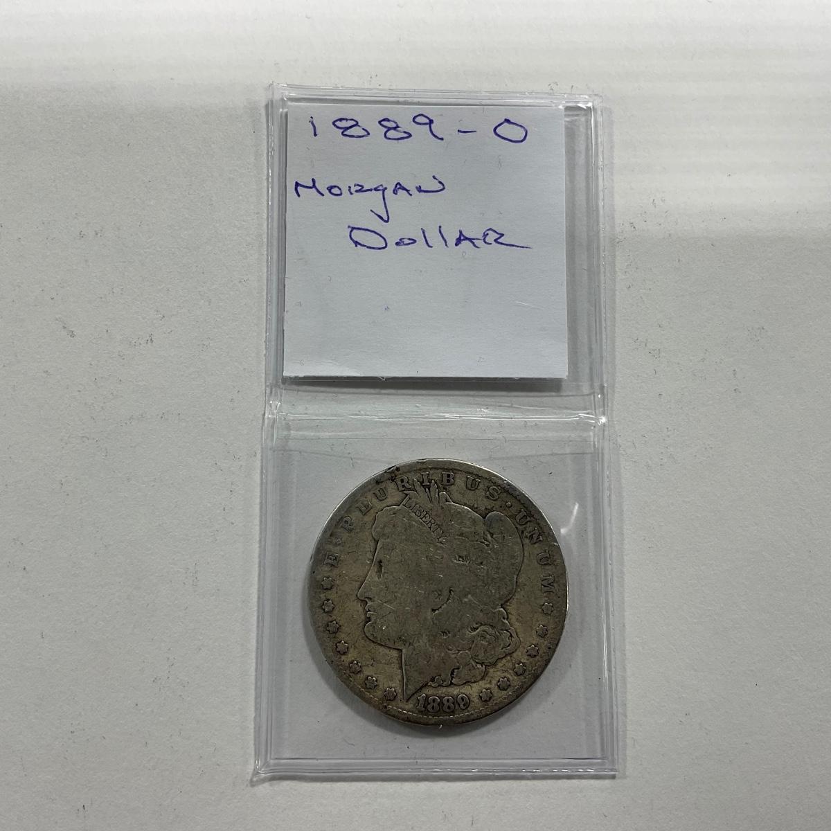 One 1889-O Morgan Dollar coin. Please see photos for details and condition. ::: Shipping is available on this lot. If you require shipping you must let us know at the close of the auction. We will coordinate with you after the item has been won. Shipping fees will include insurance up to or exceeding the value of all items being mailed. If you have any questions regarding this lot please contact the auctioneer either via this website, by direct email or by phone. PICK UP TIMES and other important information can be found in the TERMS and DESCRIPTION of the auction. Please take a look for pertinent information. Thanks!