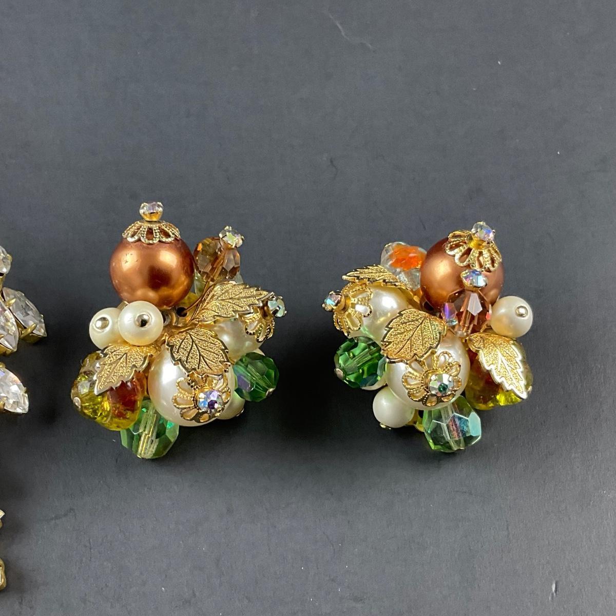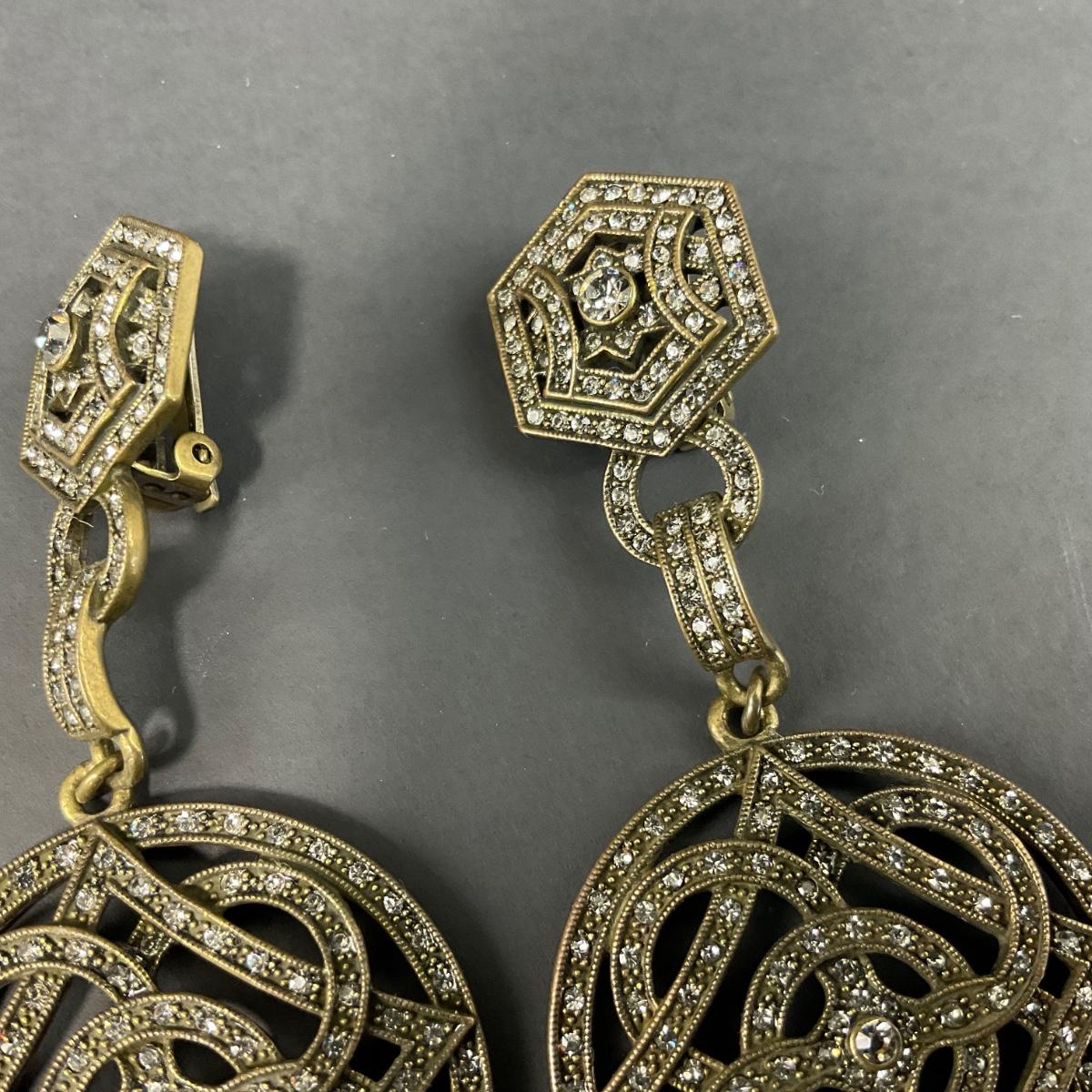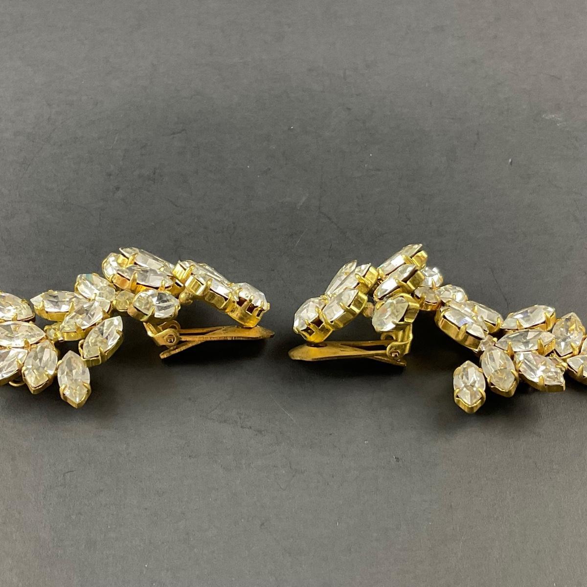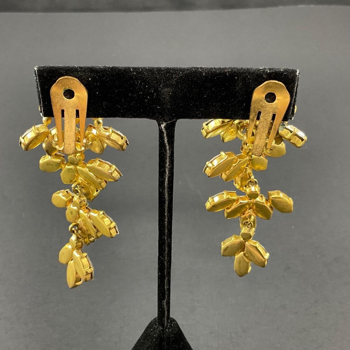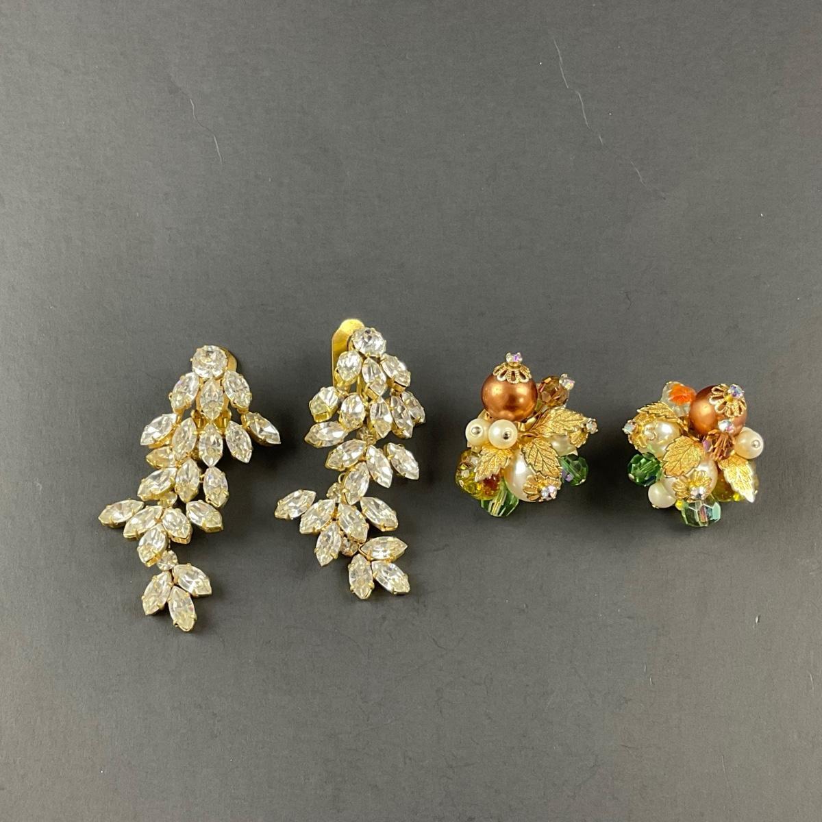 Costume jewelry clip earrings including one pair of clipped earrings marked Alice Caviness, one pair of unmarked rhinestone clip earrings, and one pair of gold tone drop earrings. Please see photos for details and condition. Any condition statement is given as a courtesy to a client, is an opinion, and should not be treated as a statement of fact. Reference to condition written, oral or within a condition report shall not be regarded as a full account of condition and may not include all defects, alterations, or restorations. Absence of a condition report does not imply a lot is flawless or lacking imperfections or damage. Katherine’s Auction & Appraisal Service shall have no responsibility for any error or omission. Returns shall not be accepted on the basis of condition. ::: Shipping is available on this lot. If you require shipping you must let us know at the close of the auction. We will coordinate with you after the item has been won. Shipping fees will include insurance up to or exceeding the value of all items being mailed. If you have any questions regarding this lot please contact the auctioneer either via this website, by direct email or by phone. PICK UP TIMES and other important information can be found in the TERMS and DESCRIPTION of the auction. Please take a look for pertinent information. Thanks!