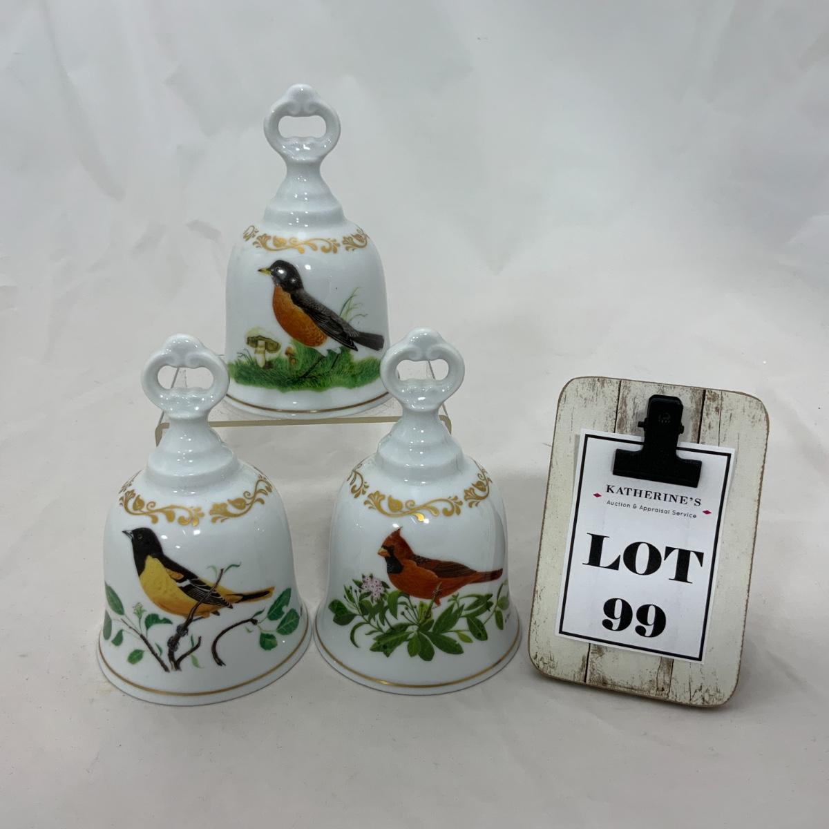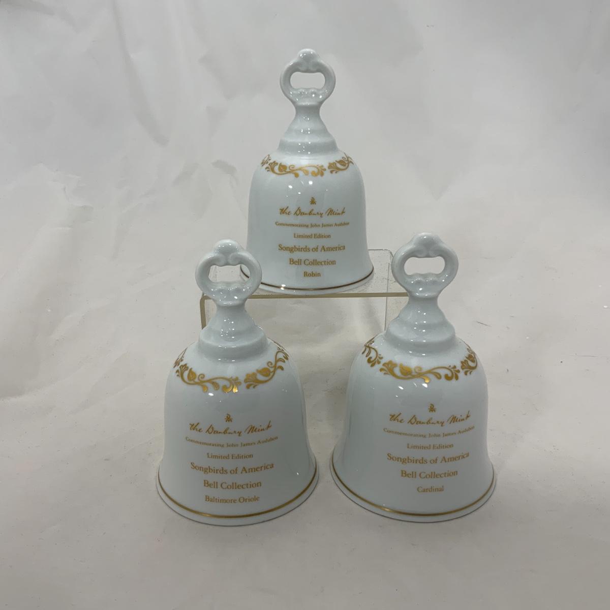 From the Estate of Peter and Alice Radovanovich: Three Danbury Mint Songbirds of America Bells. All Limited Edition Releases. Featuring the Robin, Baltimore Oriole, and Cardinal. Iconic birdies, if I do say so myself. Please see photos for details and condition. ::: Shipping is available on this lot. If you require shipping you must let us know at the close of the auction. We will coordinate with you after the item has been won. Shipping fees will include insurance up to or exceeding the value of all items being mailed. If you have any questions regarding this lot please contact the auctioneer either via this website, by direct email or by phone. PICK UP TIMES and other important information can be found in the TERMS and DESCRIPTION of the auction. Please take a look for pertinent information. Thanks!