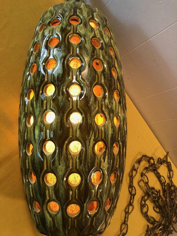 #99 Olive Green Ceramic Swag lamp