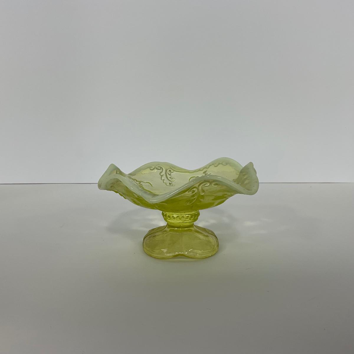 -99- URANIUM | Opalescent Vaseline Short Compote