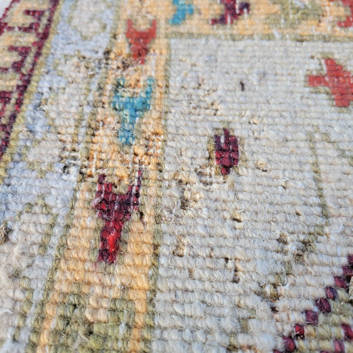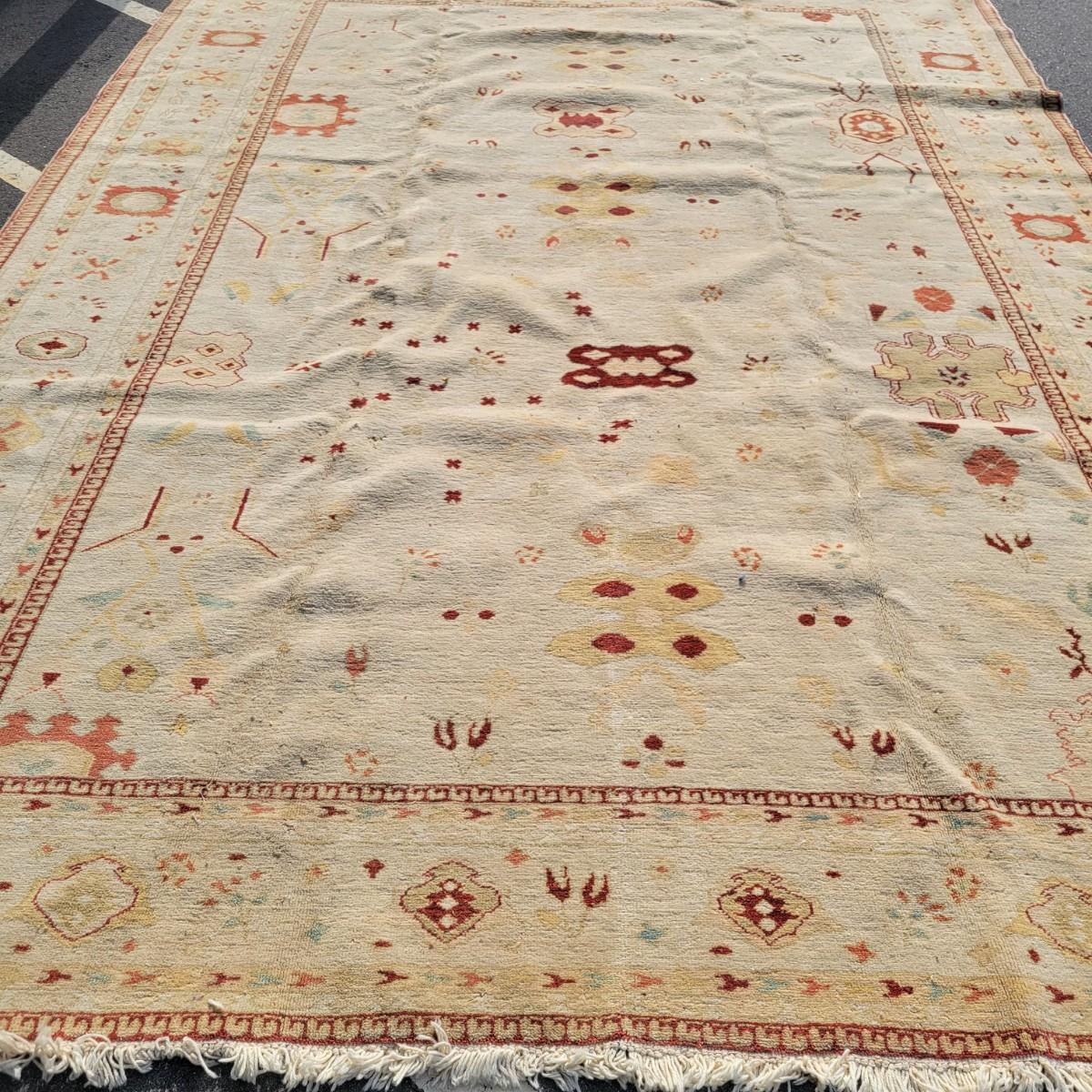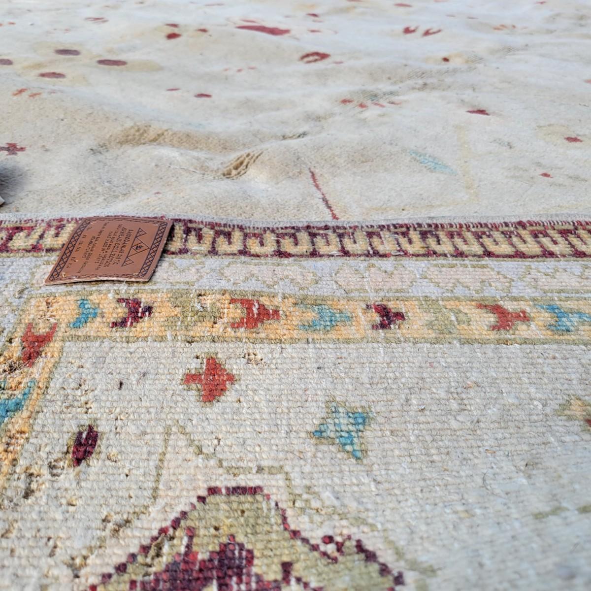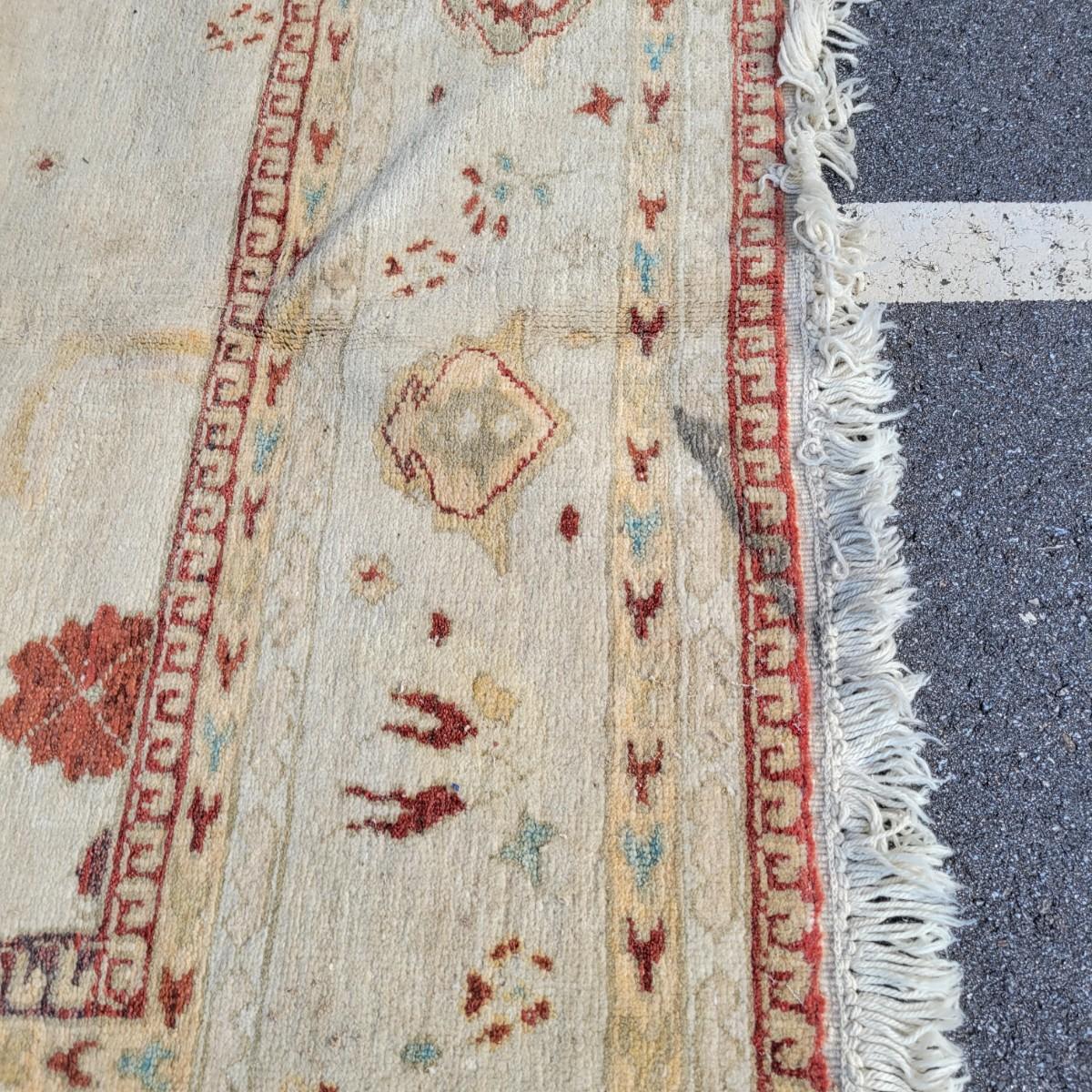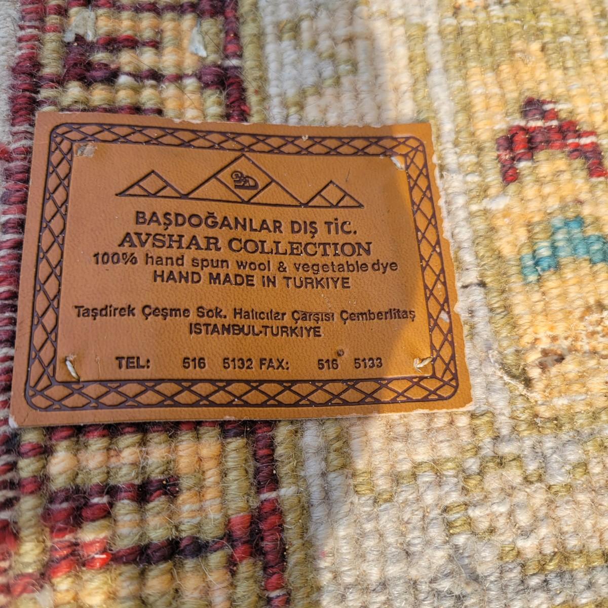 A large Turkish area rug in fair condition with visible damage to the surface and back and there is some staining. See attached pictures for more detail. Made in Turkey from wool and vegetables dyes by Basdoganlar and is part of the Avshar collection. Rug does have an odor to it. Measures approximately 9'9" x 14' Local pickup only