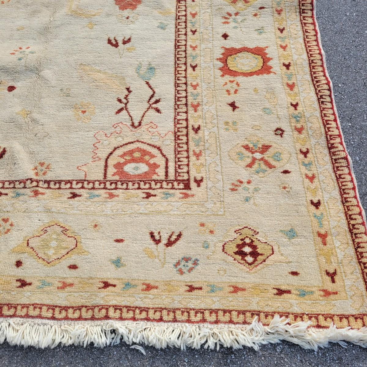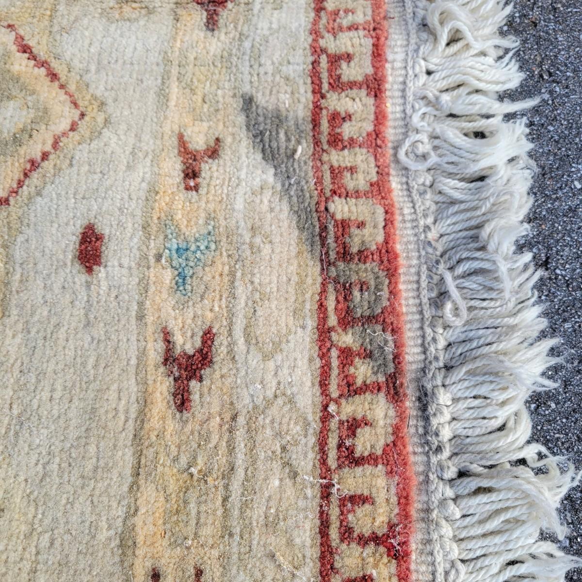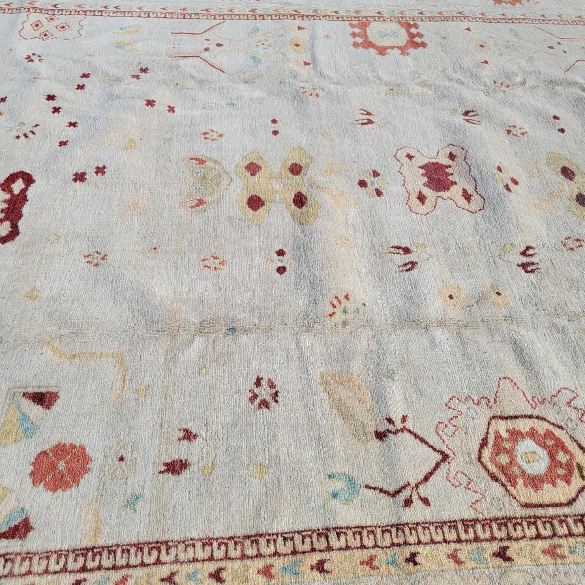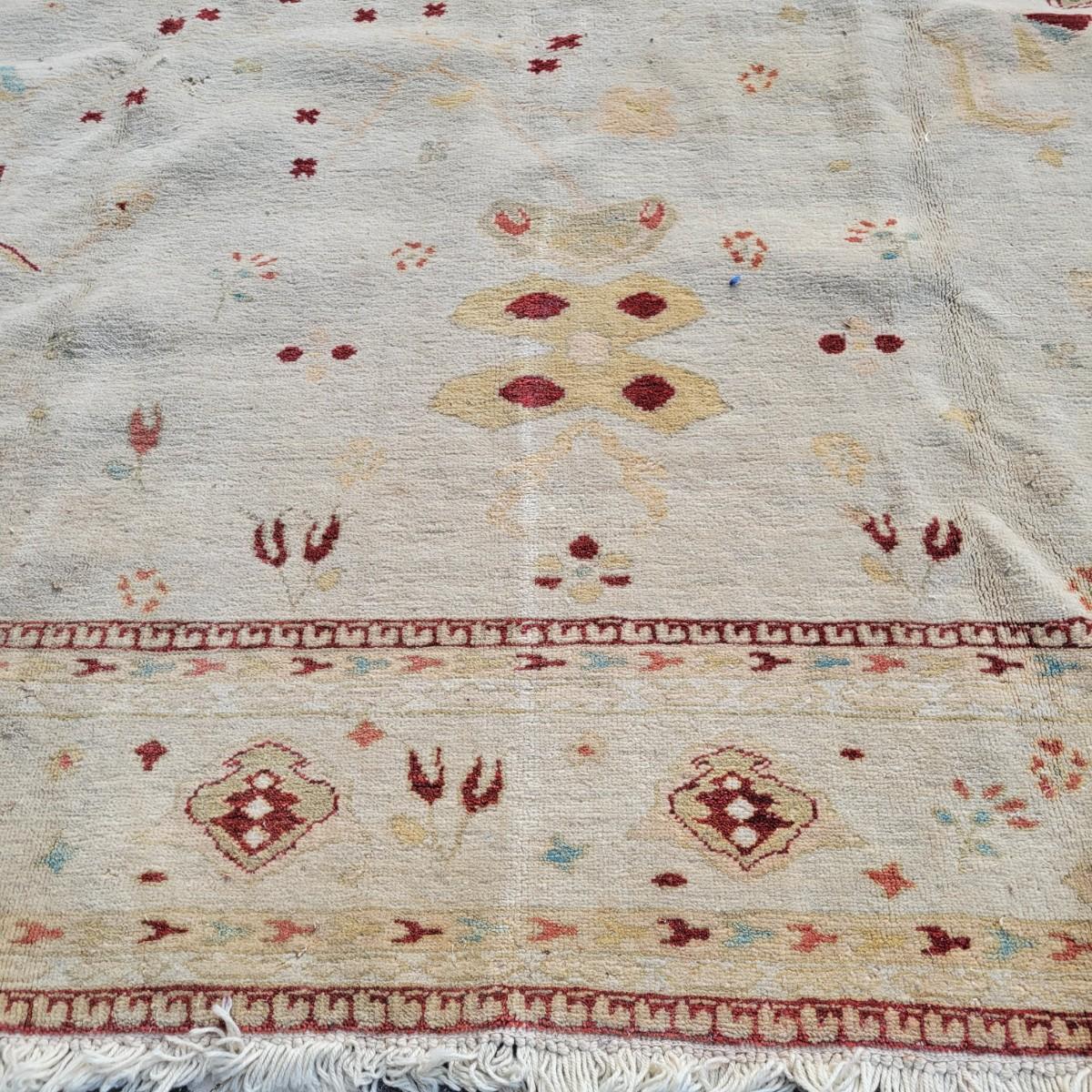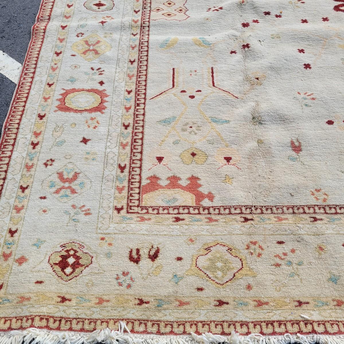 A large Turkish area rug in fair condition with visible damage to the surface and back and there is some staining. See attached pictures for more detail. Made in Turkey from wool and vegetables dyes by Basdoganlar and is part of the Avshar collection. Rug does have an odor to it. Measures approximately 9'9" x 14' Local pickup only